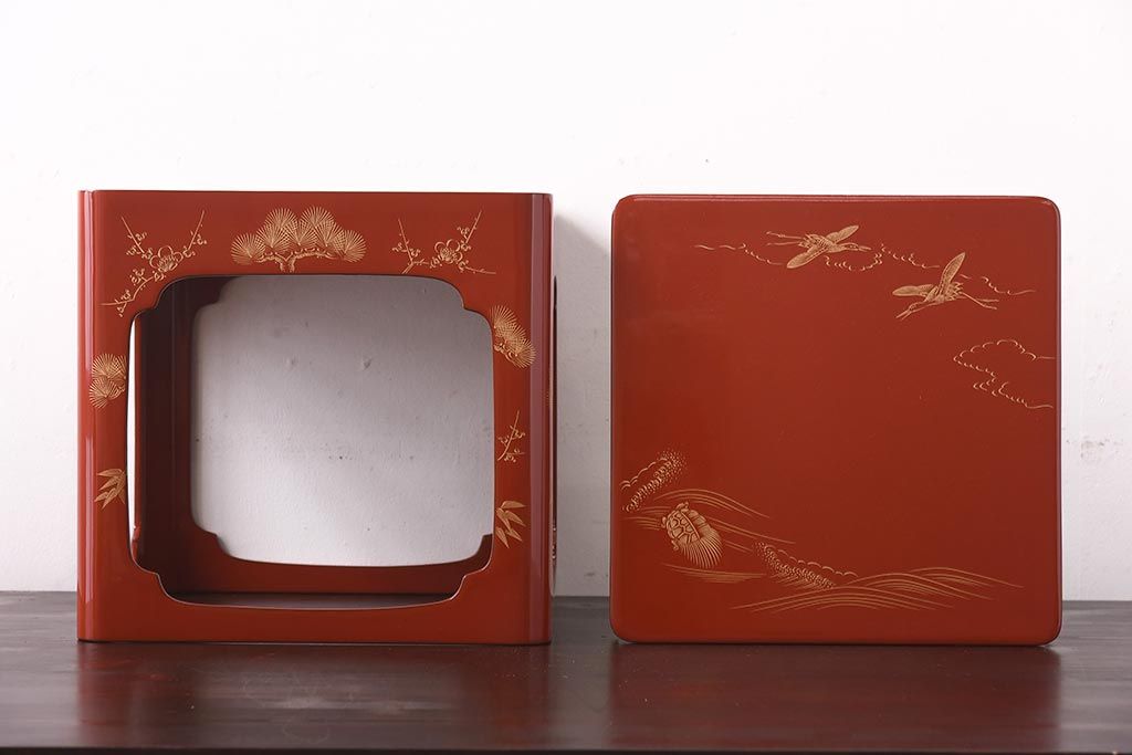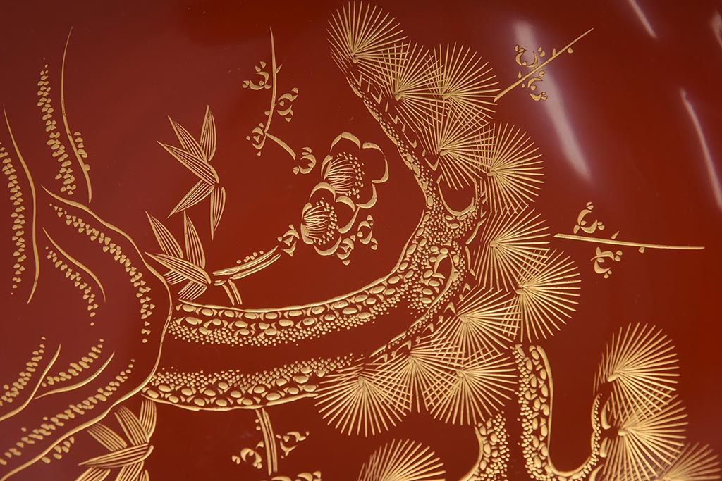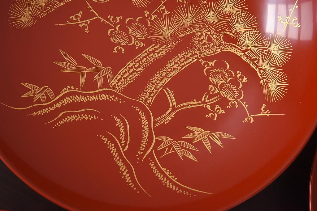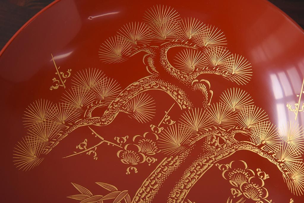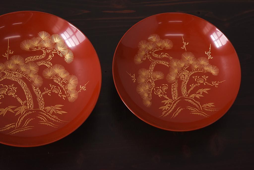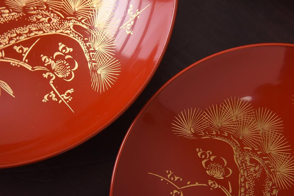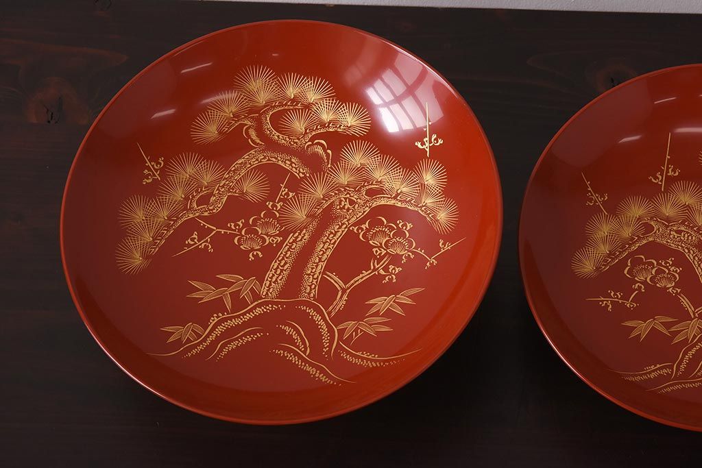 ラフジュ工房> 骨董・美術品> 骨董-漆器 > 大正昭和初期 共箱 松竹梅沈金 輪島塗九ツ組盃・台付き(漆器、酒器、杯)(R-039259)