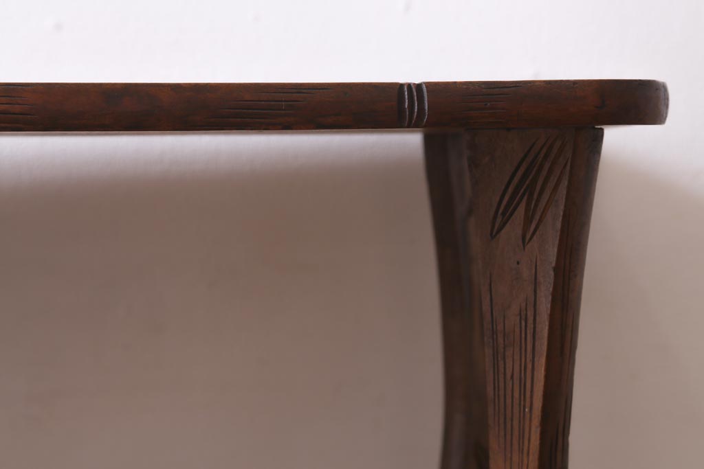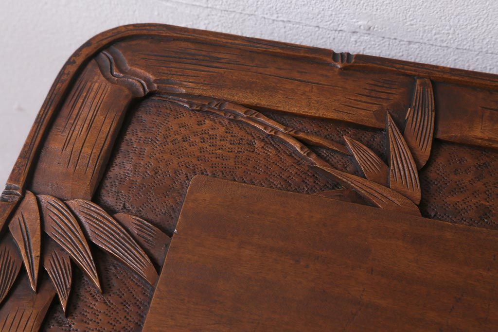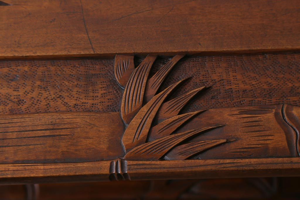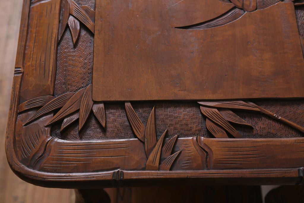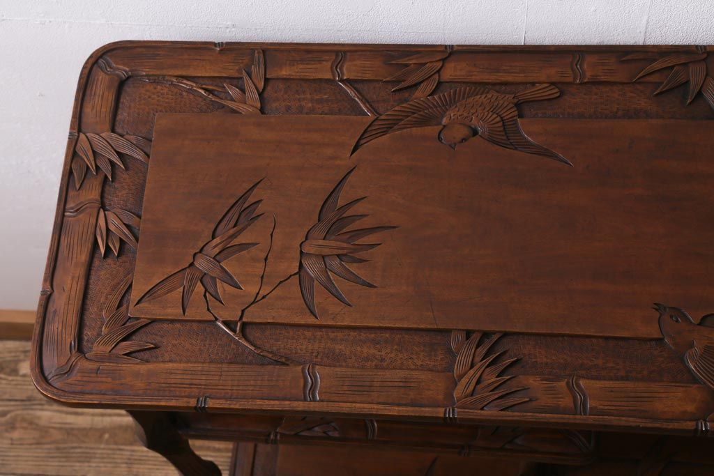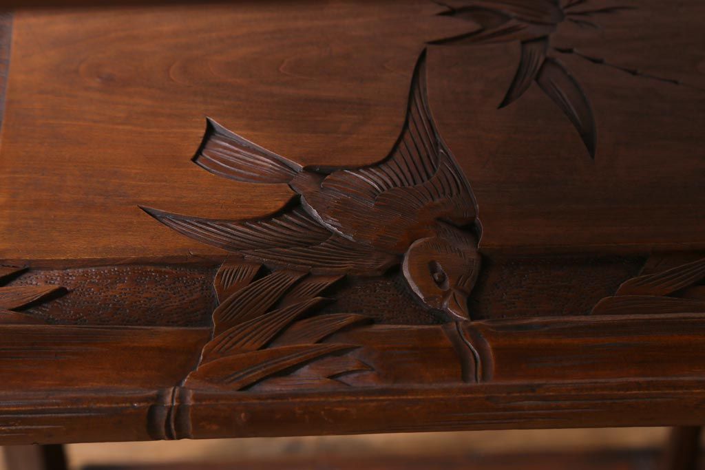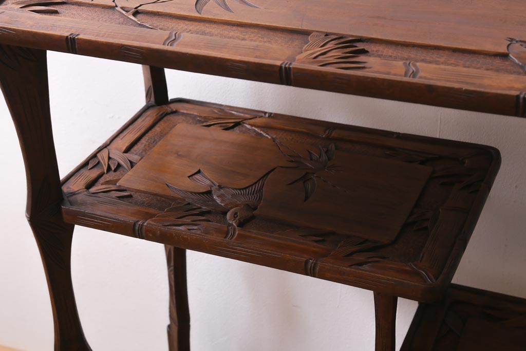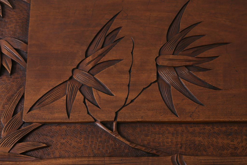 竹をモチーフした彫刻が天板や棚板だけでなく