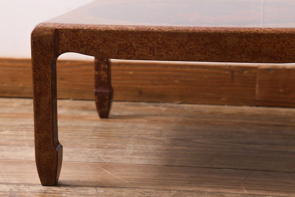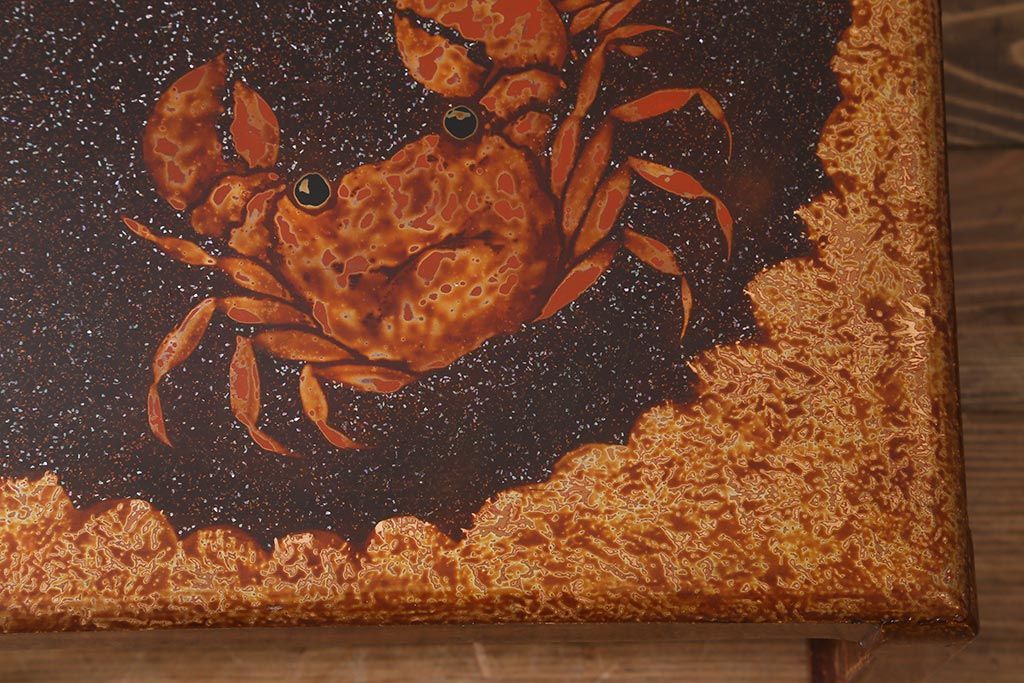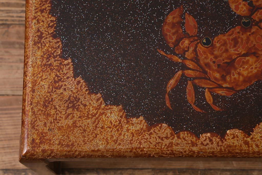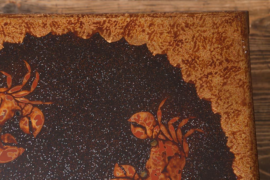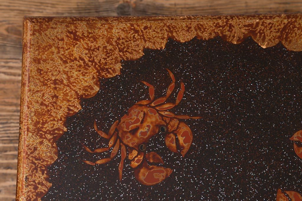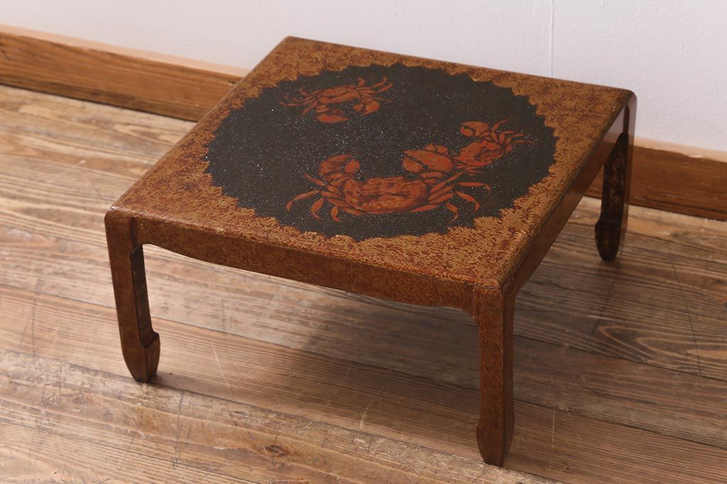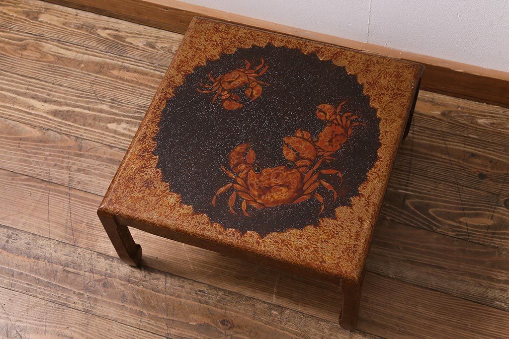 アンティーク家具 津軽塗(唐塗、変わり塗り) 螺鈿散し 蟹の図が目を引く座卓(ローテーブル)(R-039328)