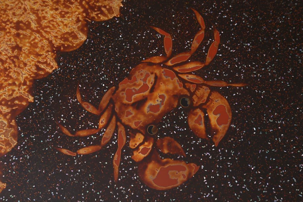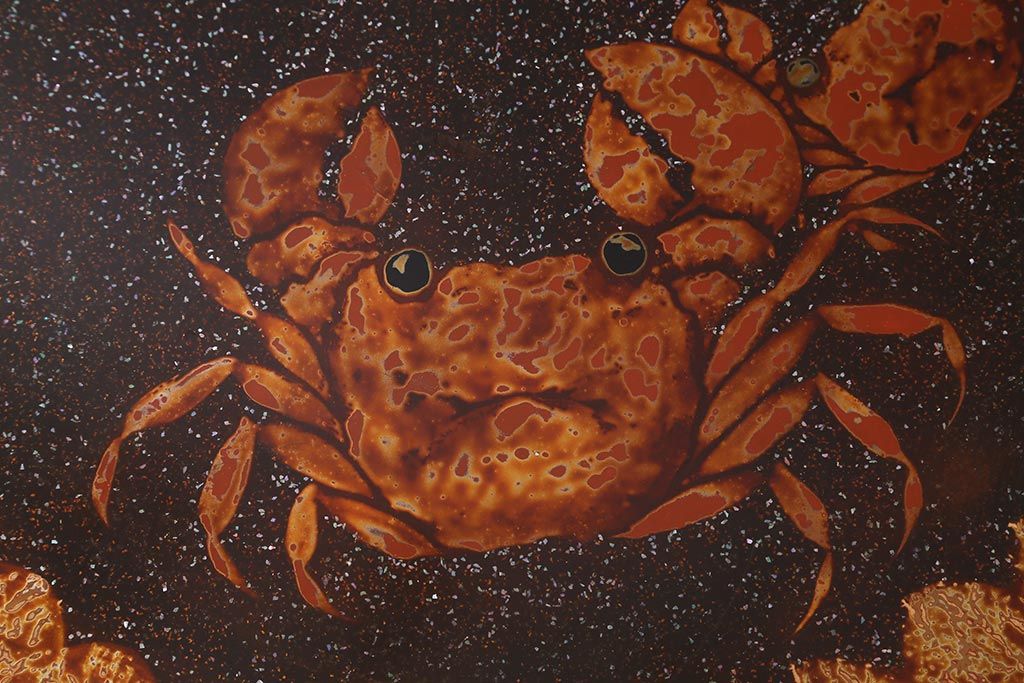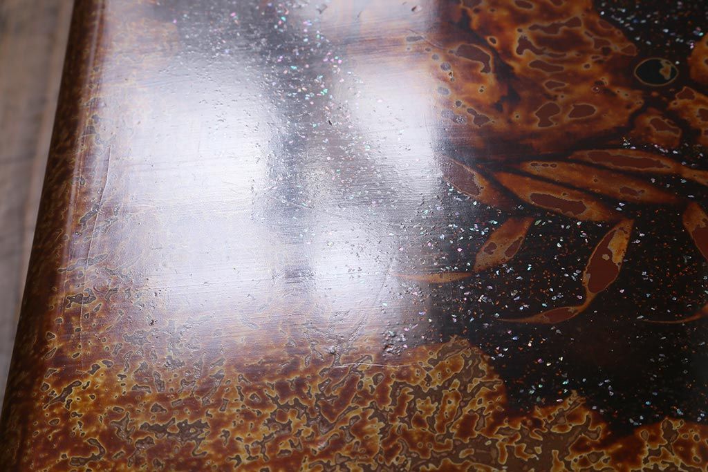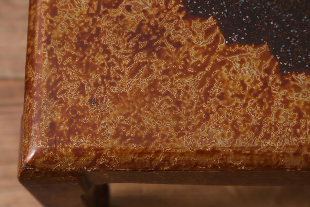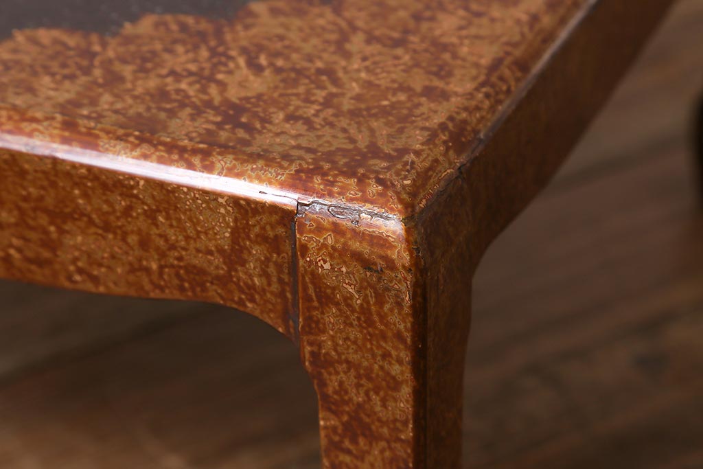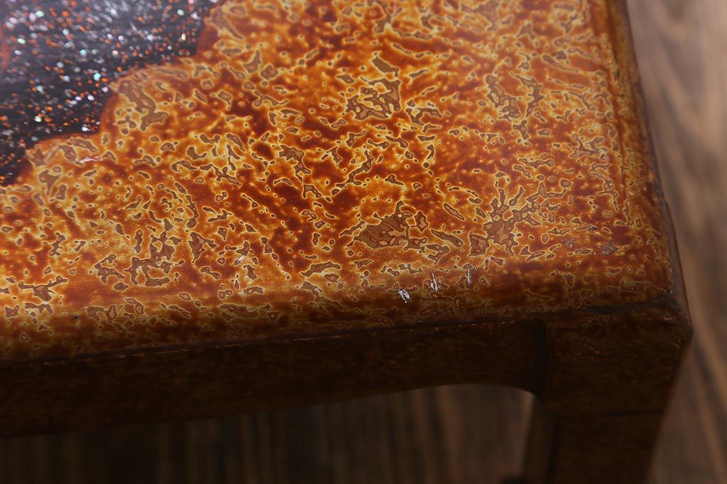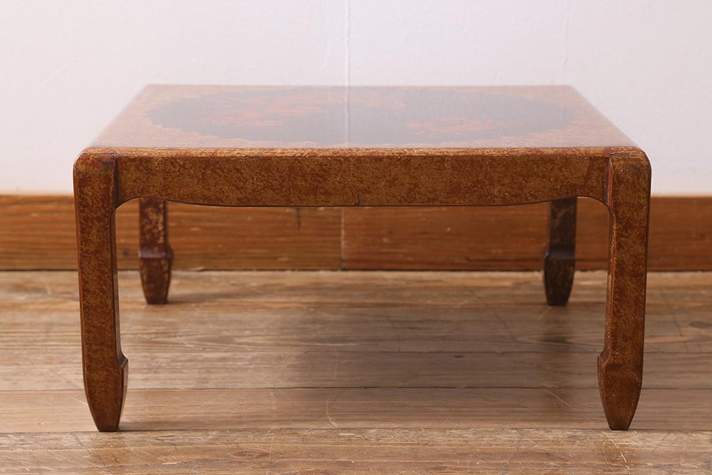 アンティーク家具 津軽塗(唐塗、変わり塗り) 螺鈿散し 蟹の図が目を引く座卓(ローテーブル)(R-039328)