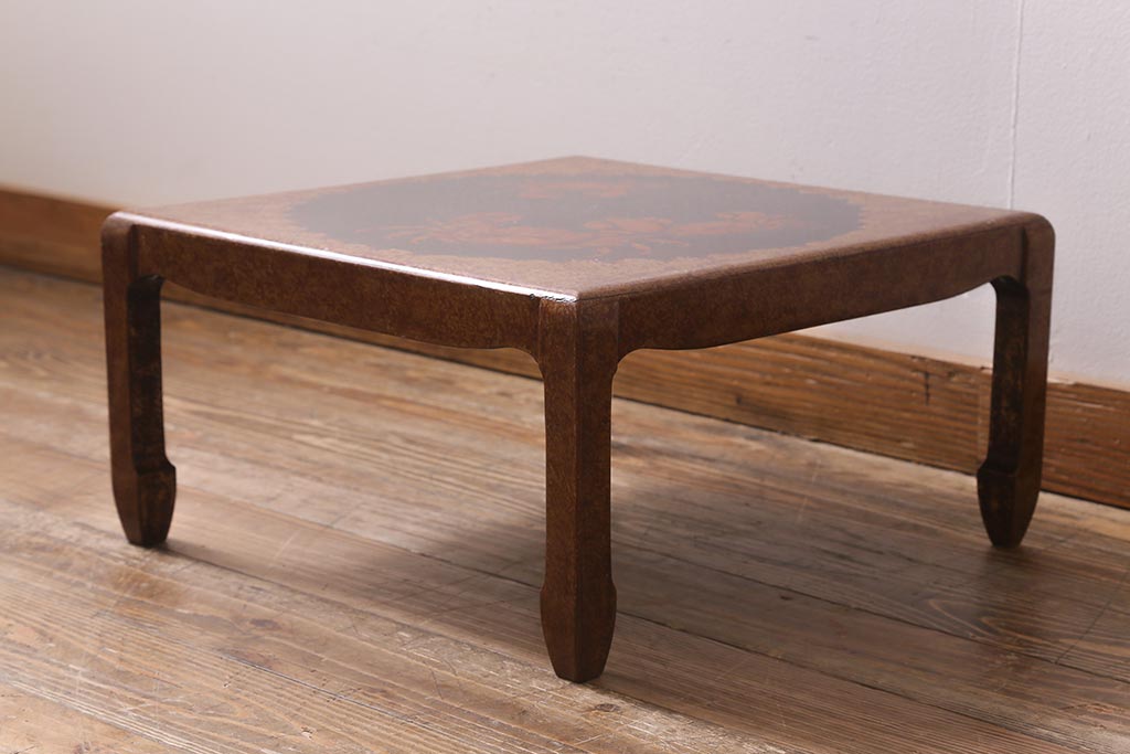 アンティーク家具 津軽塗(唐塗、変わり塗り) 螺鈿散し 蟹の図が目を引く座卓(ローテーブル)(R-039328)です。