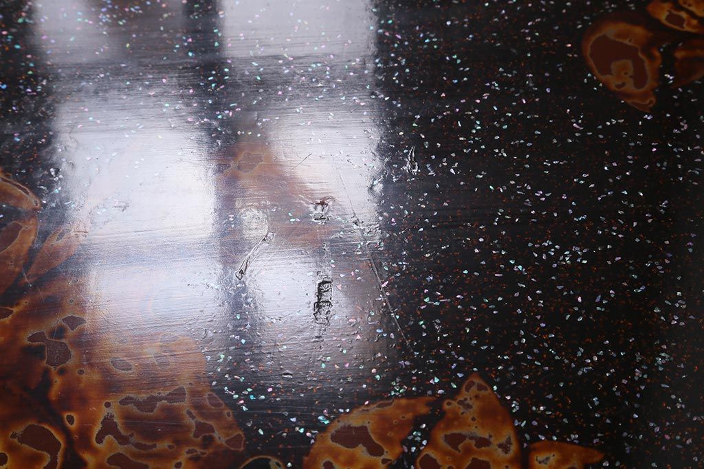 中央は螺鈿散しの煌めきが華やかさを加え、