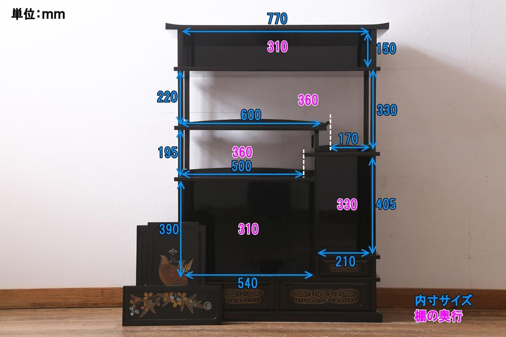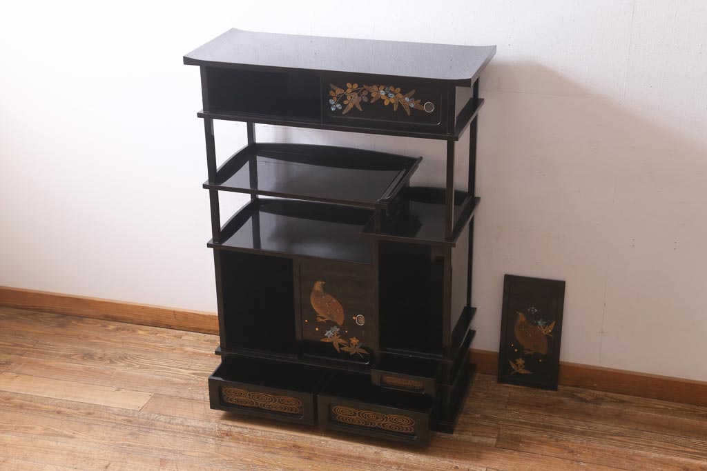 ラフジュ工房> 和箪笥 > 中古 伝統工芸 輪島塗 一后一兆 作 銘入り 金蒔絵螺鈿飾り棚(茶棚)(R-039266)