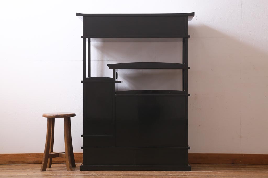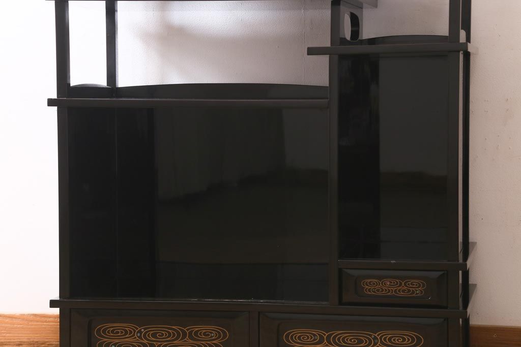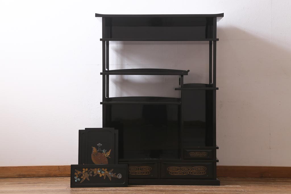 ラフジュ工房> オープンラック・シェルフ> ディスプレイラック > 中古 伝統工芸 輪島塗 一后一兆 作 銘入り 金蒔絵螺鈿飾り棚(茶棚)(R-039266)