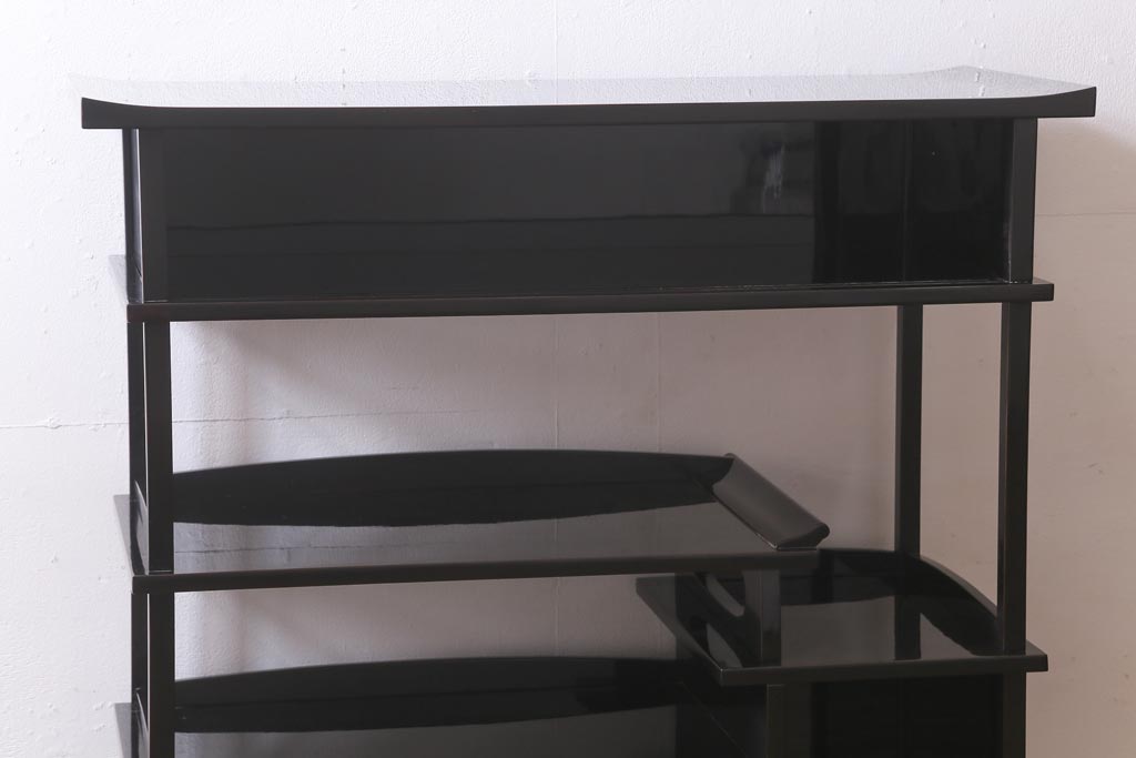 ラフジュ工房> オープンラック・シェルフ > 中古 伝統工芸 輪島塗 一后一兆 作 銘入り 金蒔絵螺鈿飾り棚(茶棚)(R-039266)