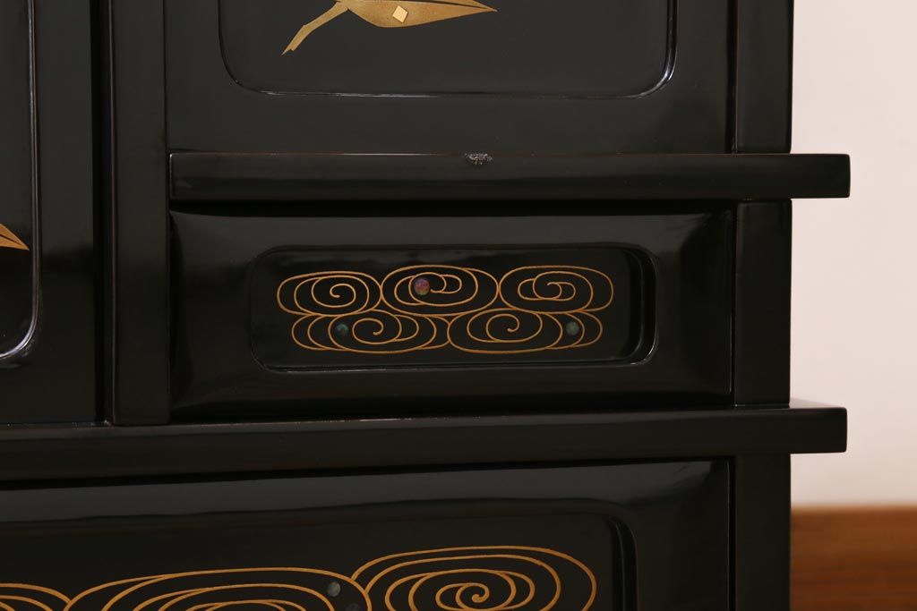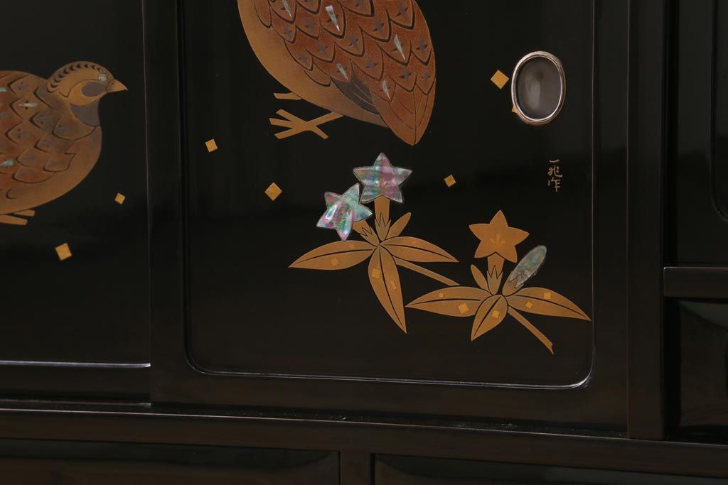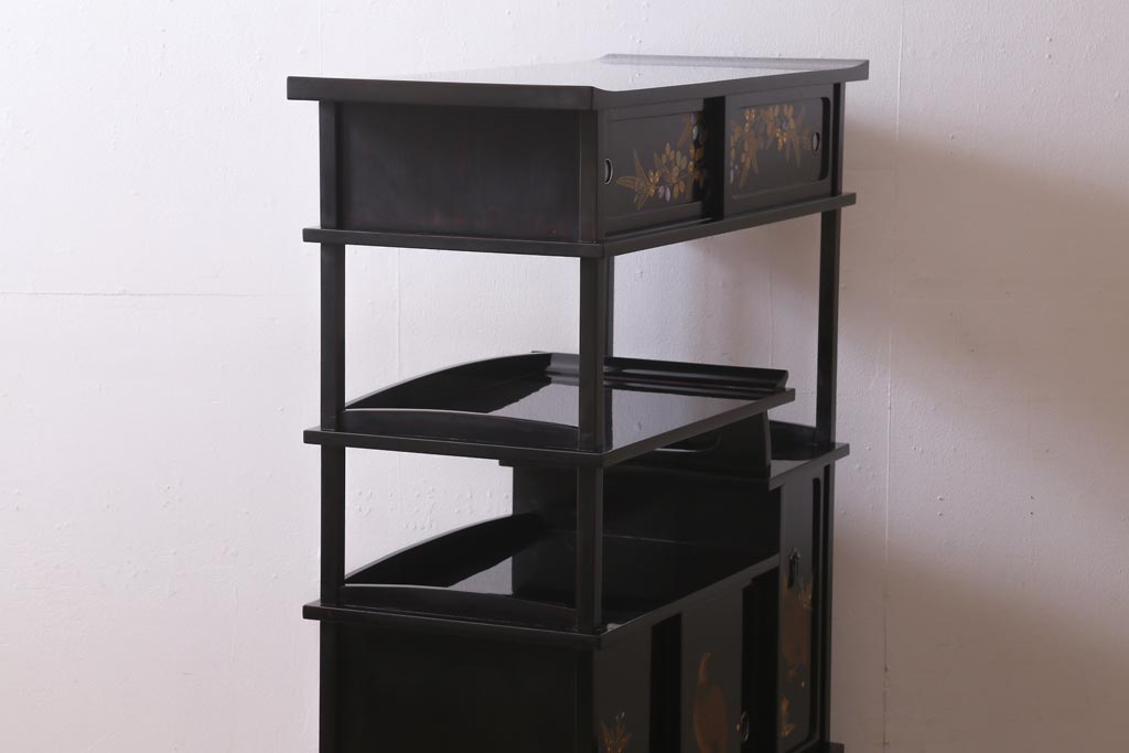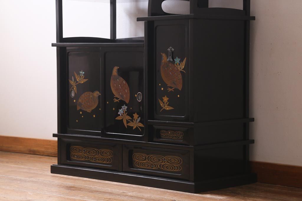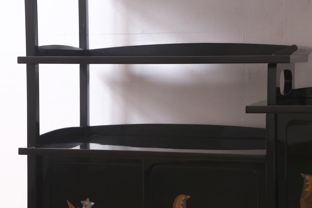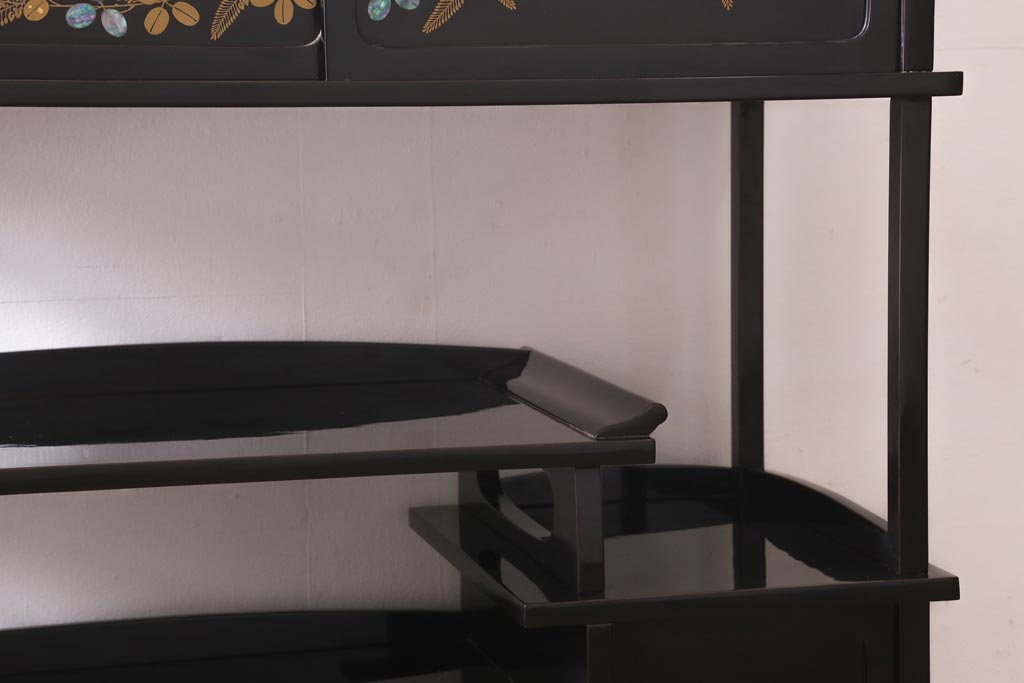 ラフジュ工房> 和箪笥> 茶箪笥・茶棚 > 中古 伝統工芸 輪島塗 一后一兆 作 銘入り 金蒔絵螺鈿飾り棚(茶棚)(R-039266)