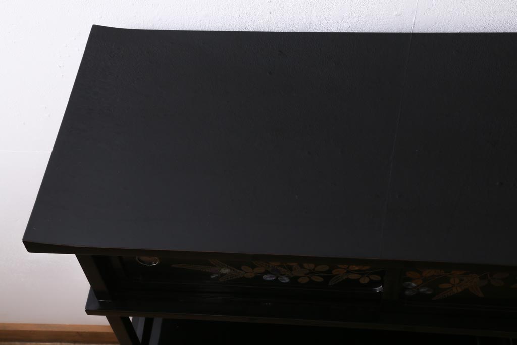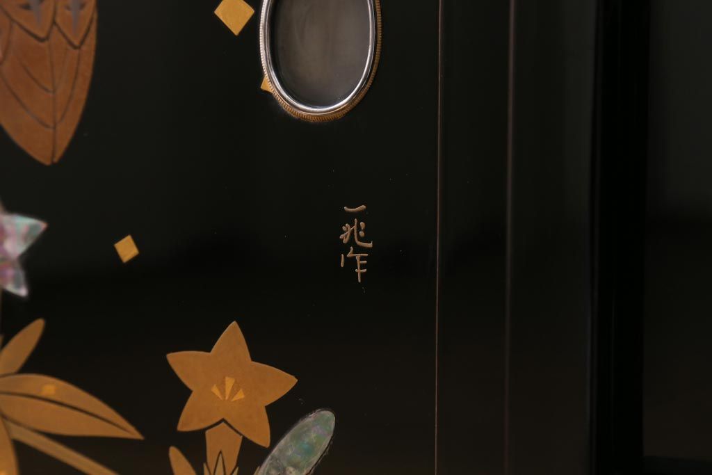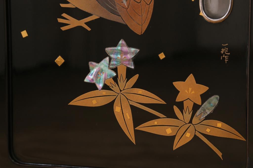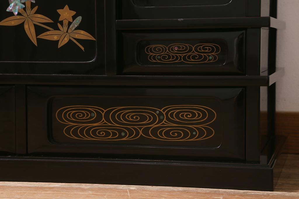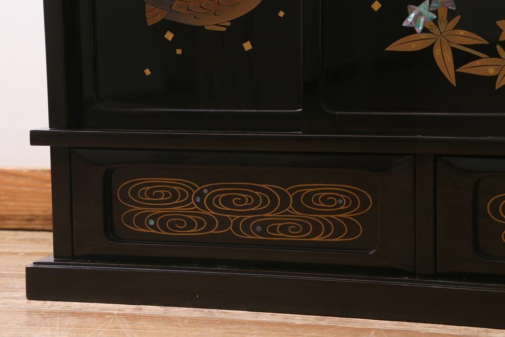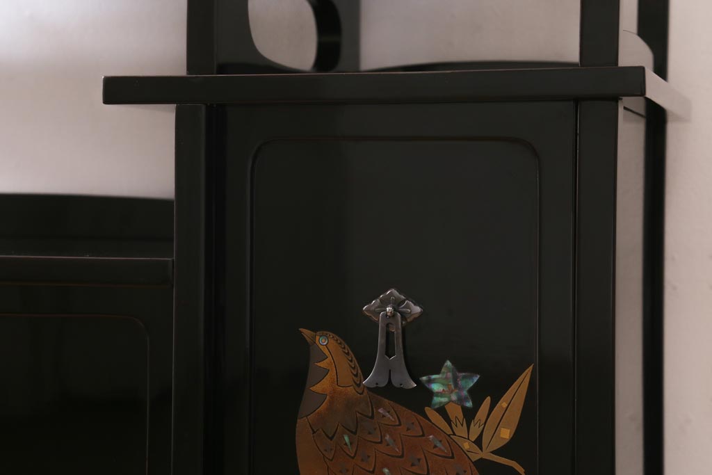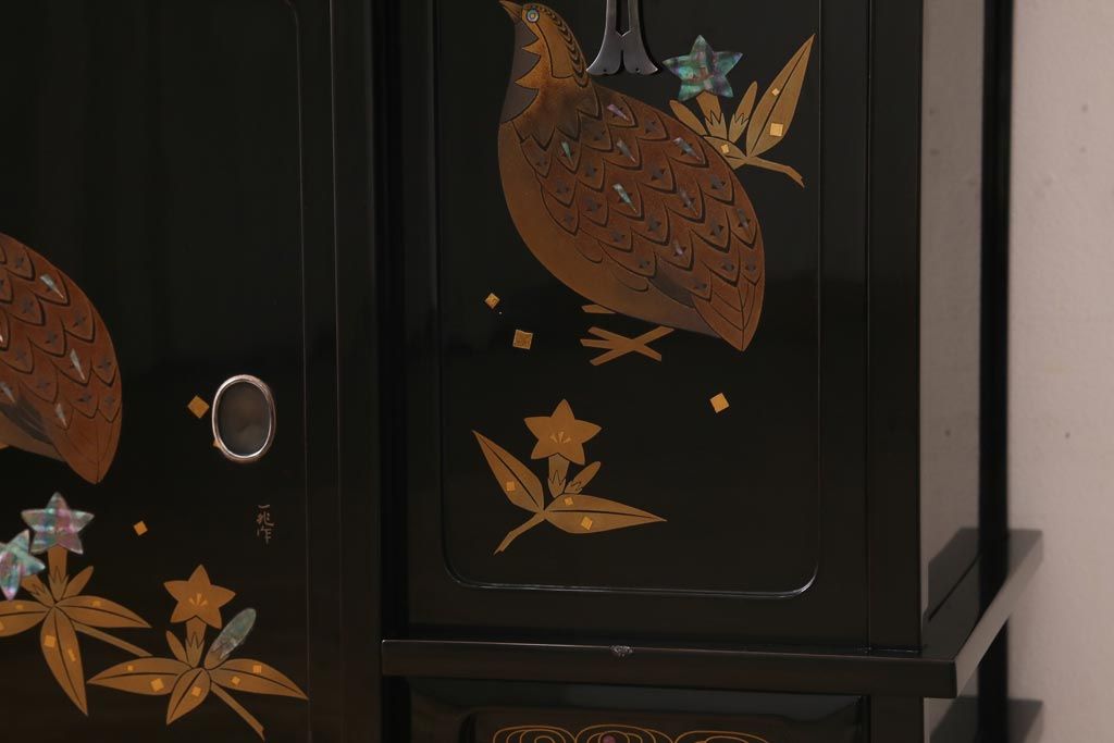 ラフジュ工房> 和箪笥> 茶箪笥・茶棚 > 中古 伝統工芸 輪島塗 一后一兆 作 銘入り 金蒔絵螺鈿飾り棚(茶棚)(R-039266)