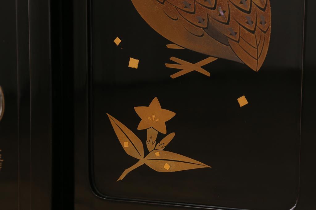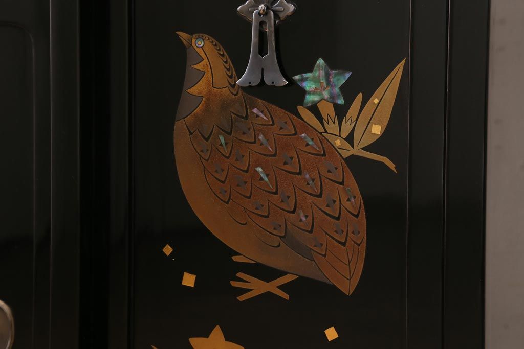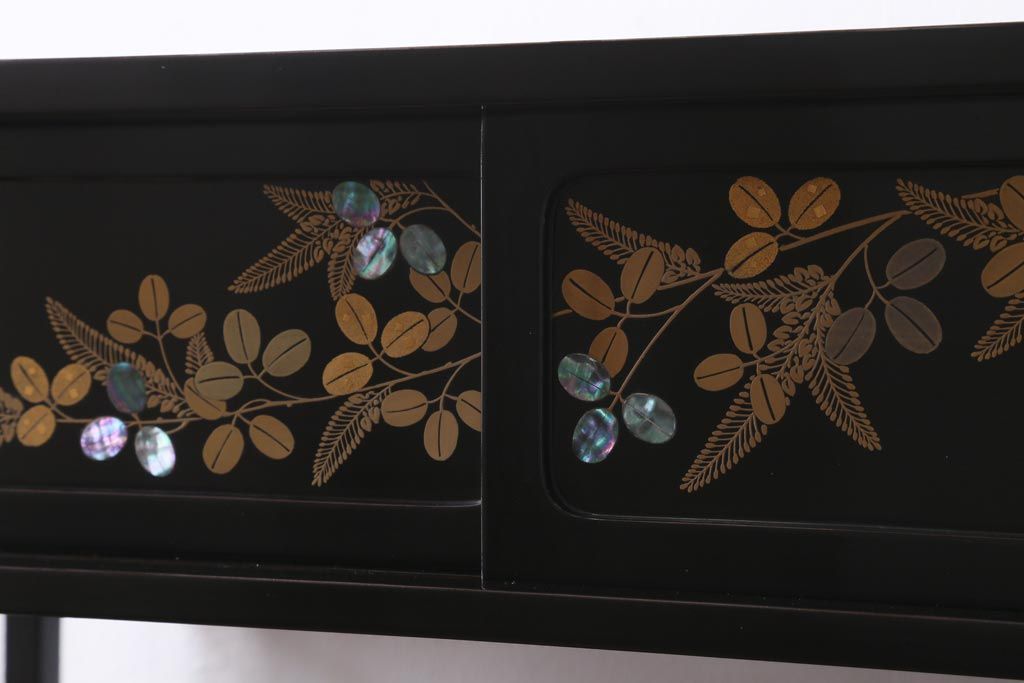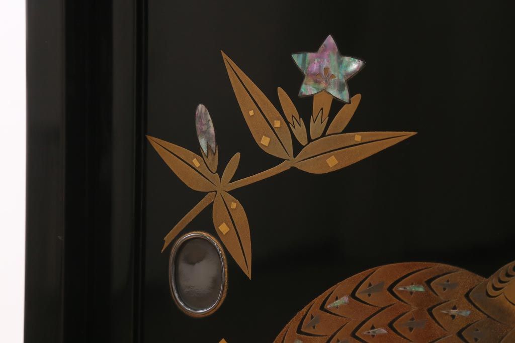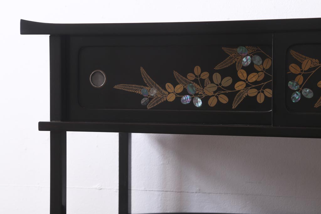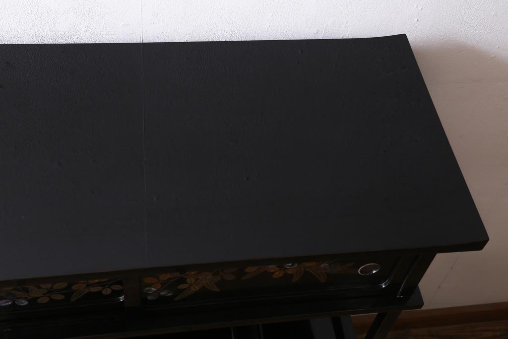 ラフジュ工房> 和箪笥> 茶箪笥・茶棚 > 中古 伝統工芸 輪島塗 一后一兆 作 銘入り 金蒔絵螺鈿飾り棚(茶棚)(R-039266)