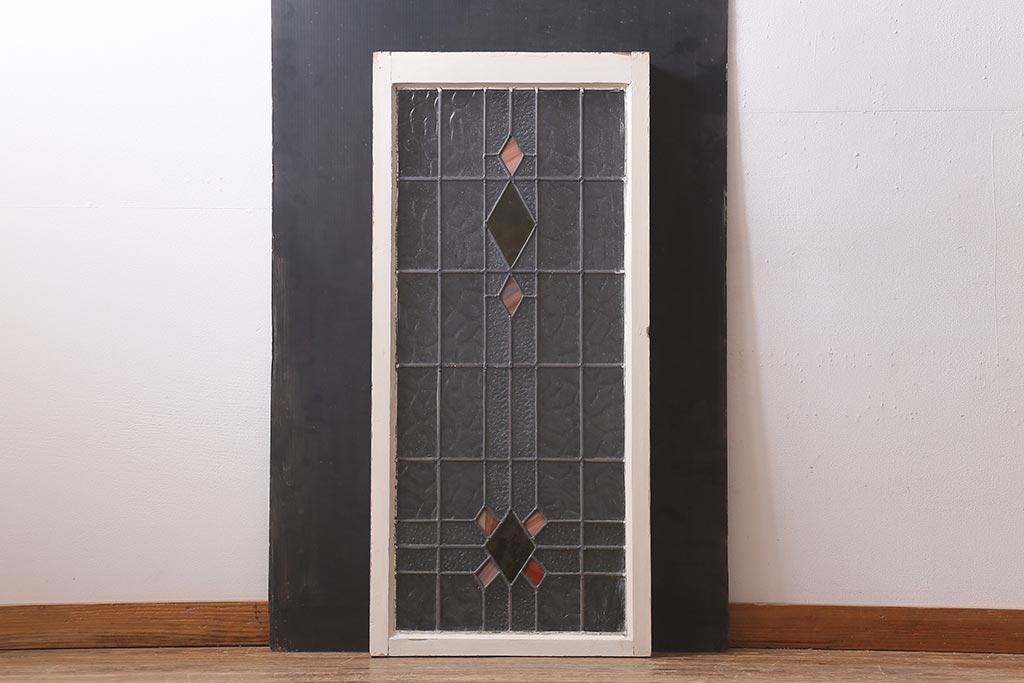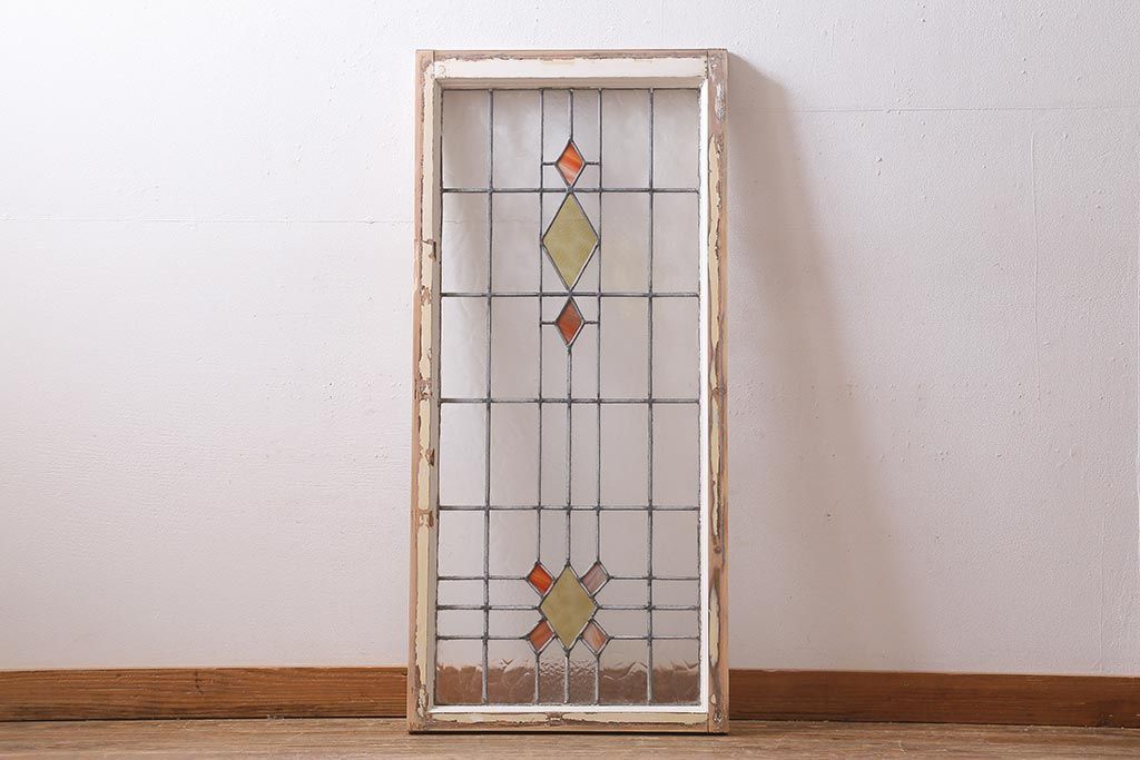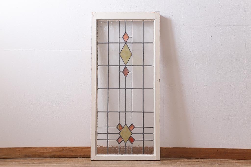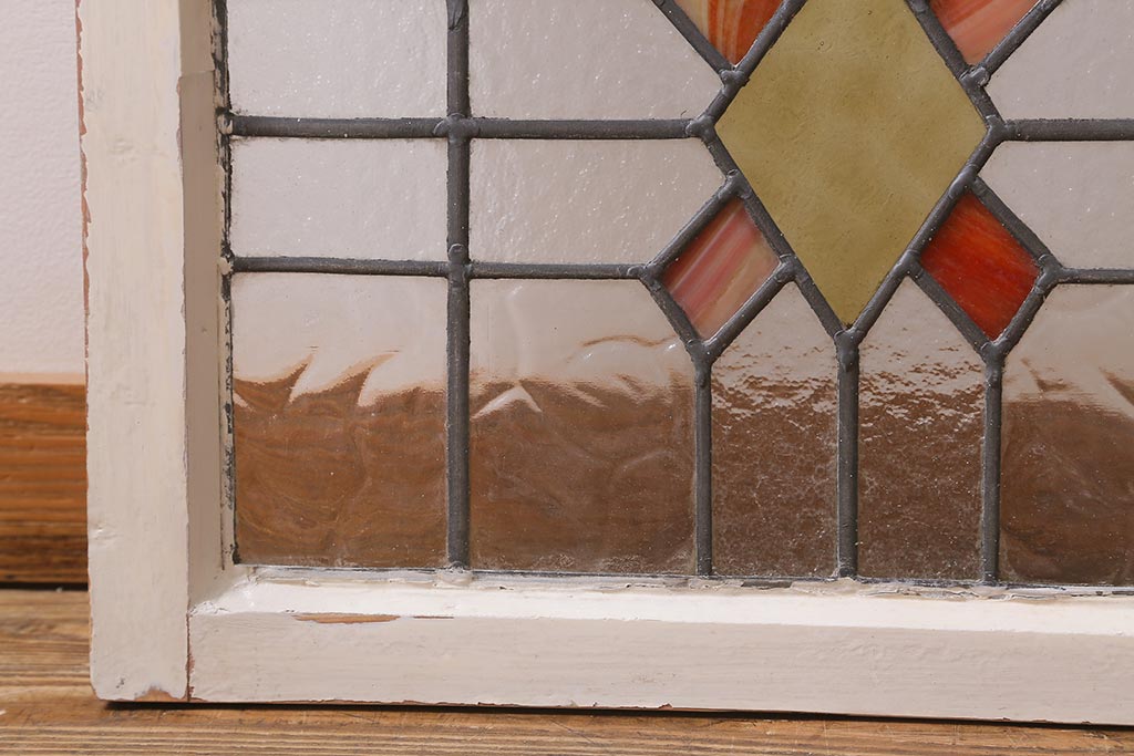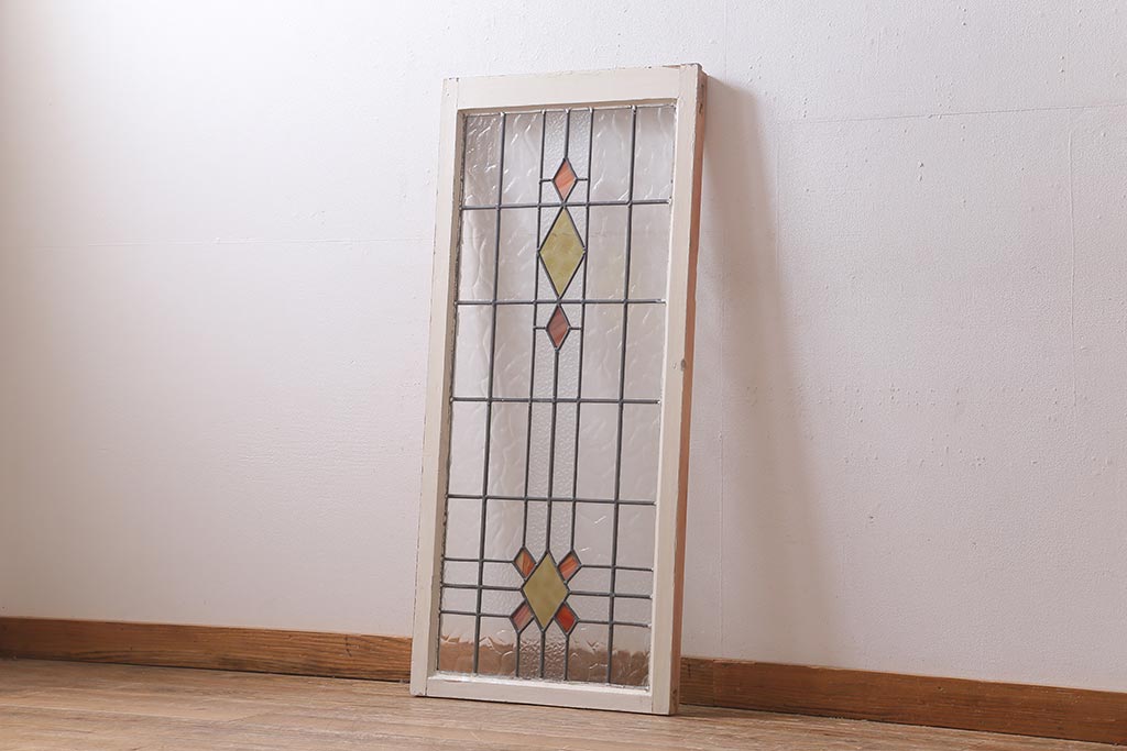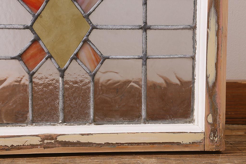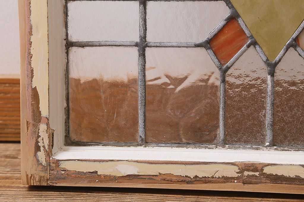 アンティーク建具 イギリスアンティーク 2色のカラーガラスが可愛らしいステンドグラスのペイントフィックス窓・大(明り取り)(R-39246)