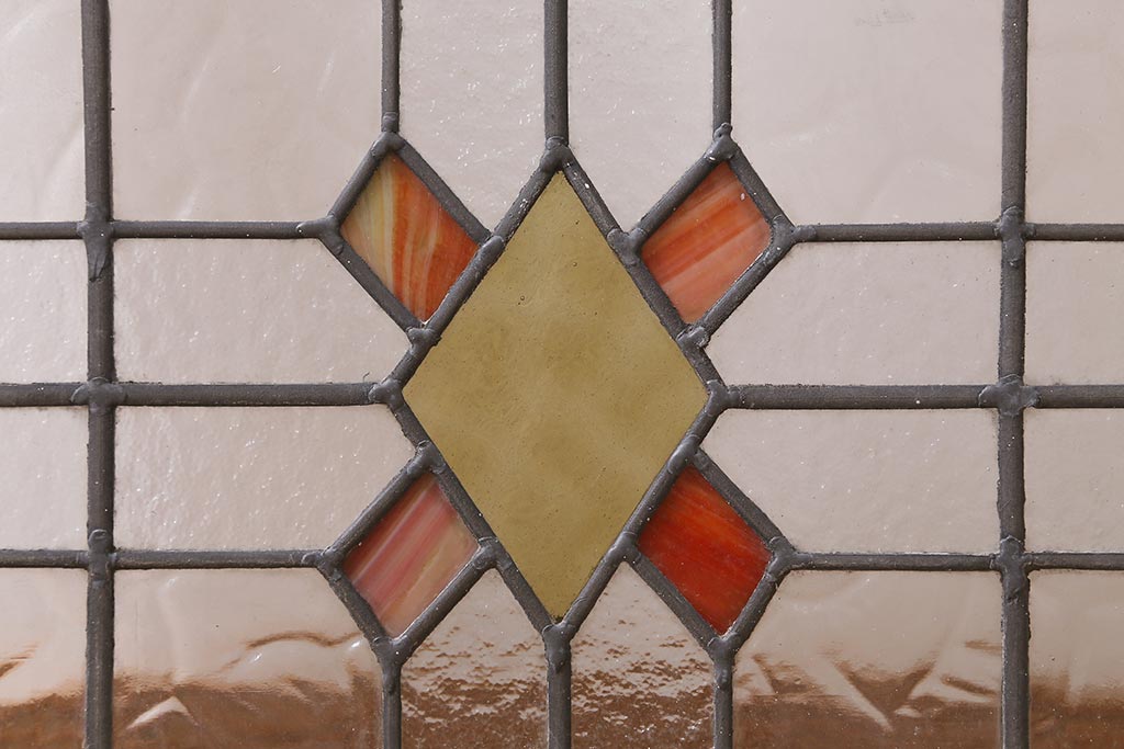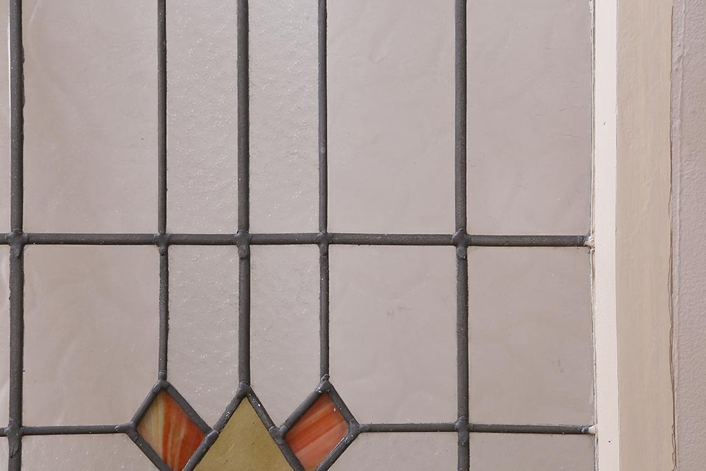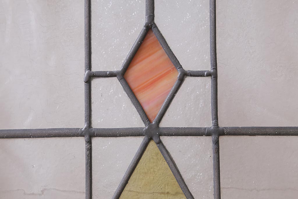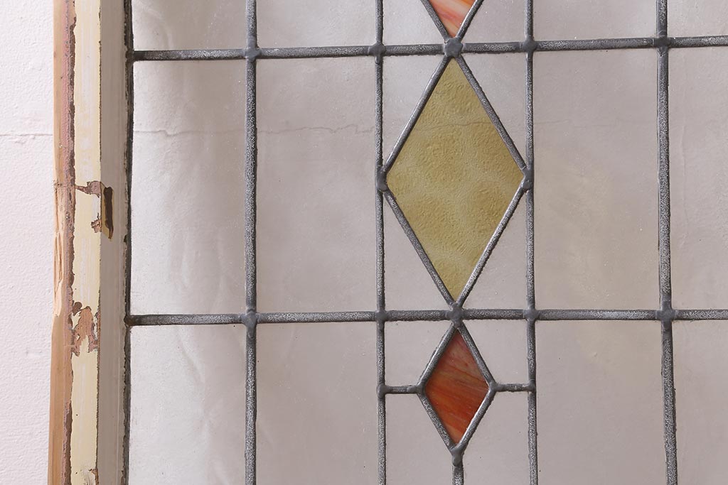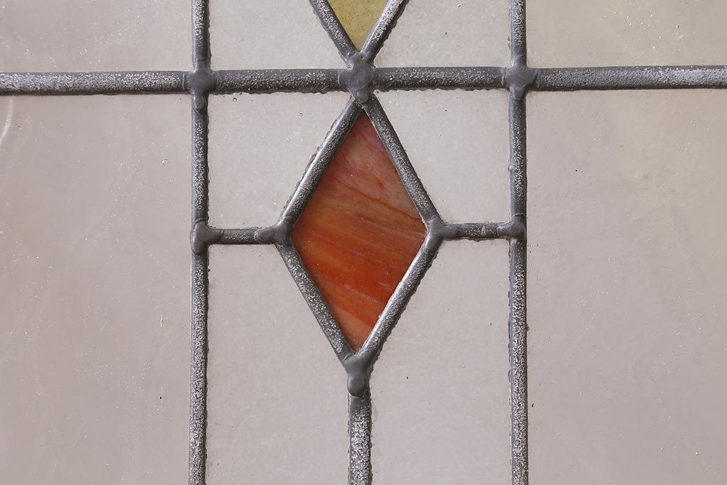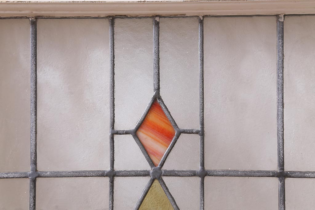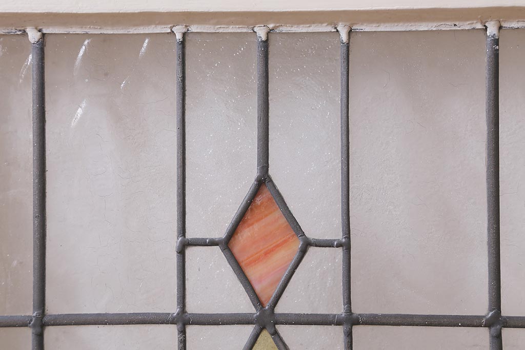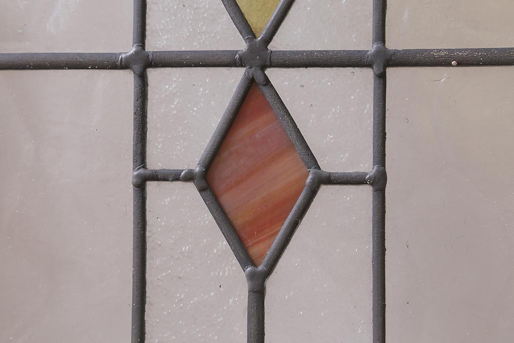 ステンドグラス > アンティーク建具 イギリスアンティーク 2色のカラーガラスが可愛らしいステンドグラスのペイントフィックス窓・大(明り取り)(R-39246)