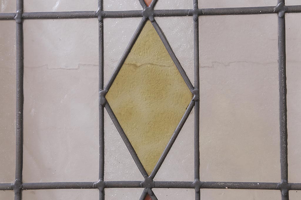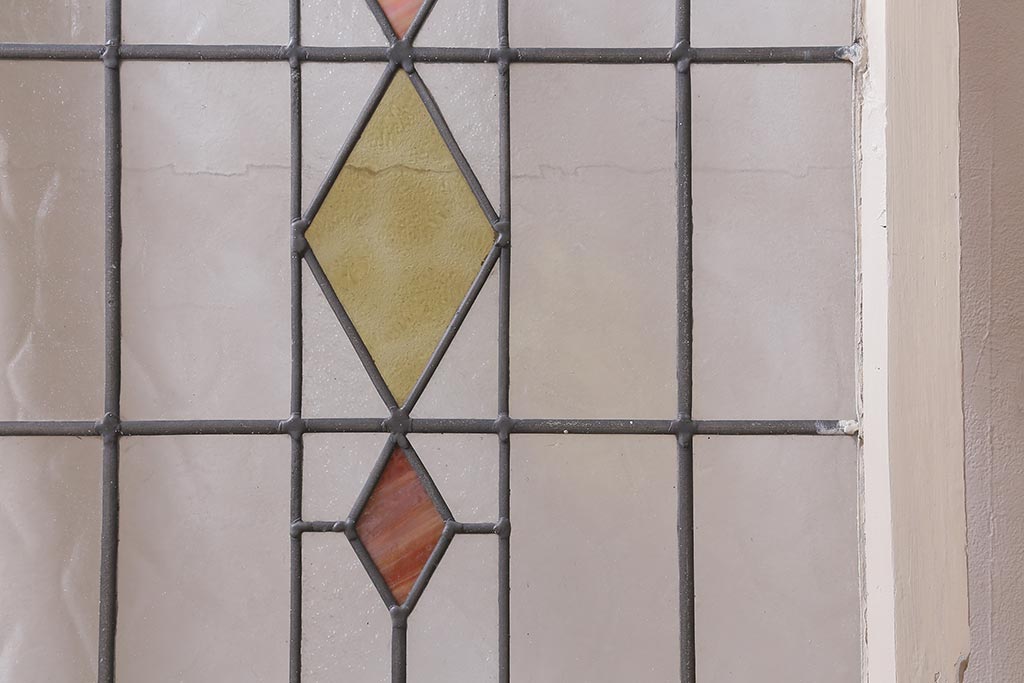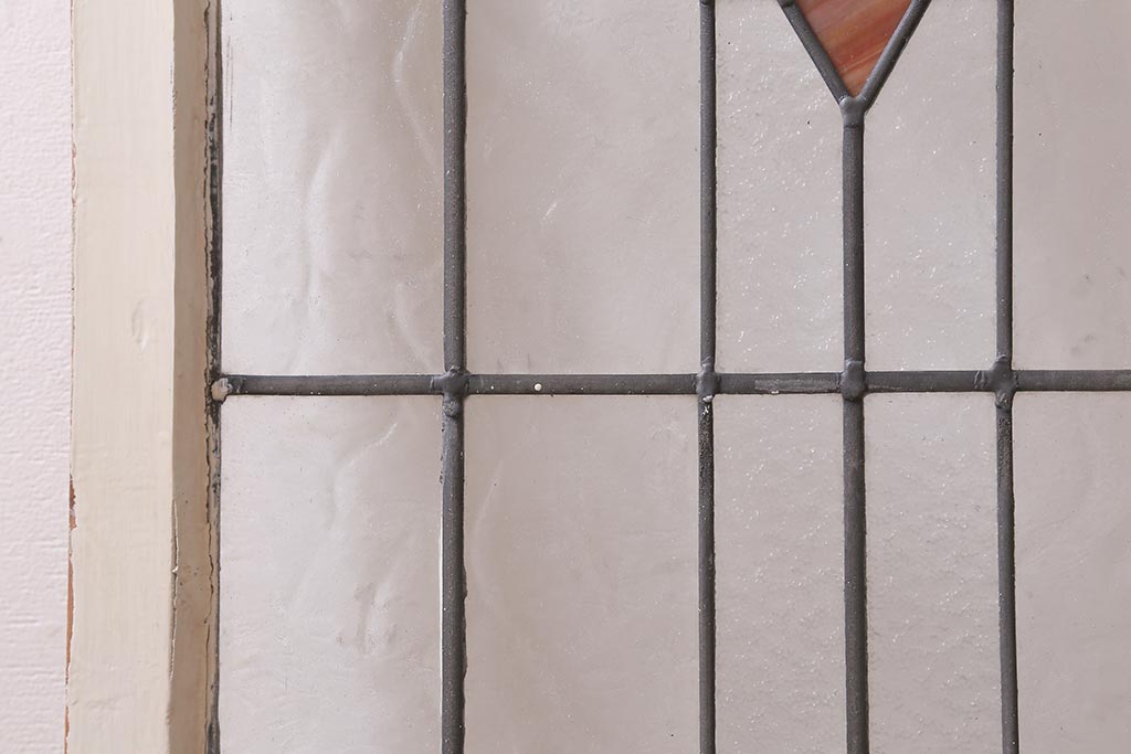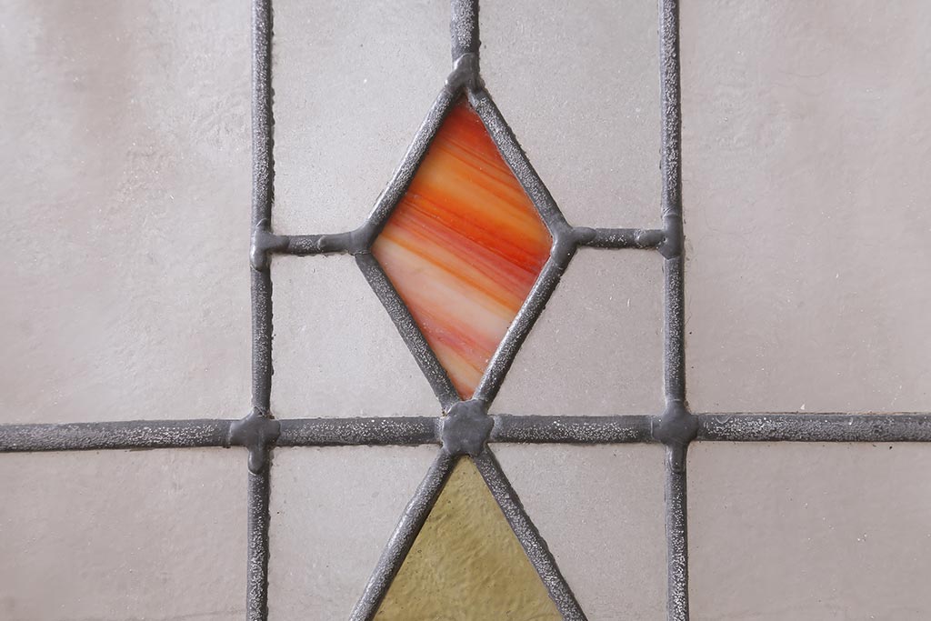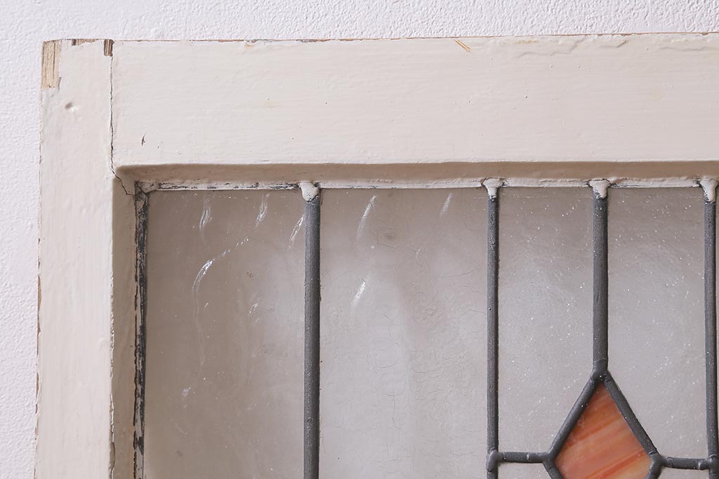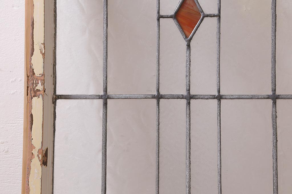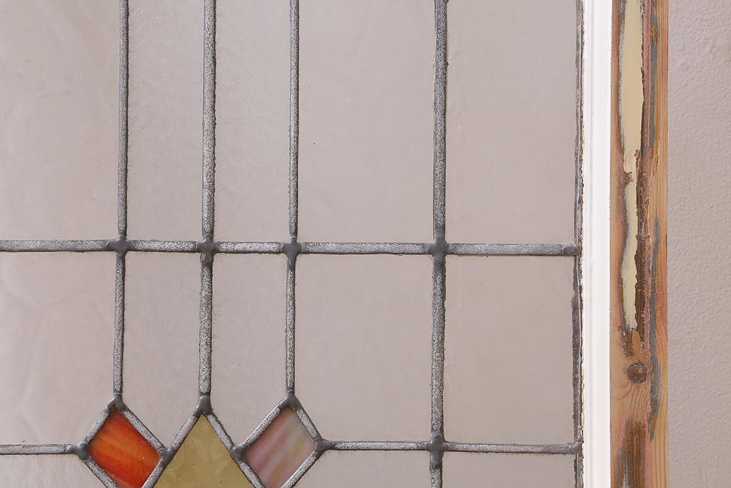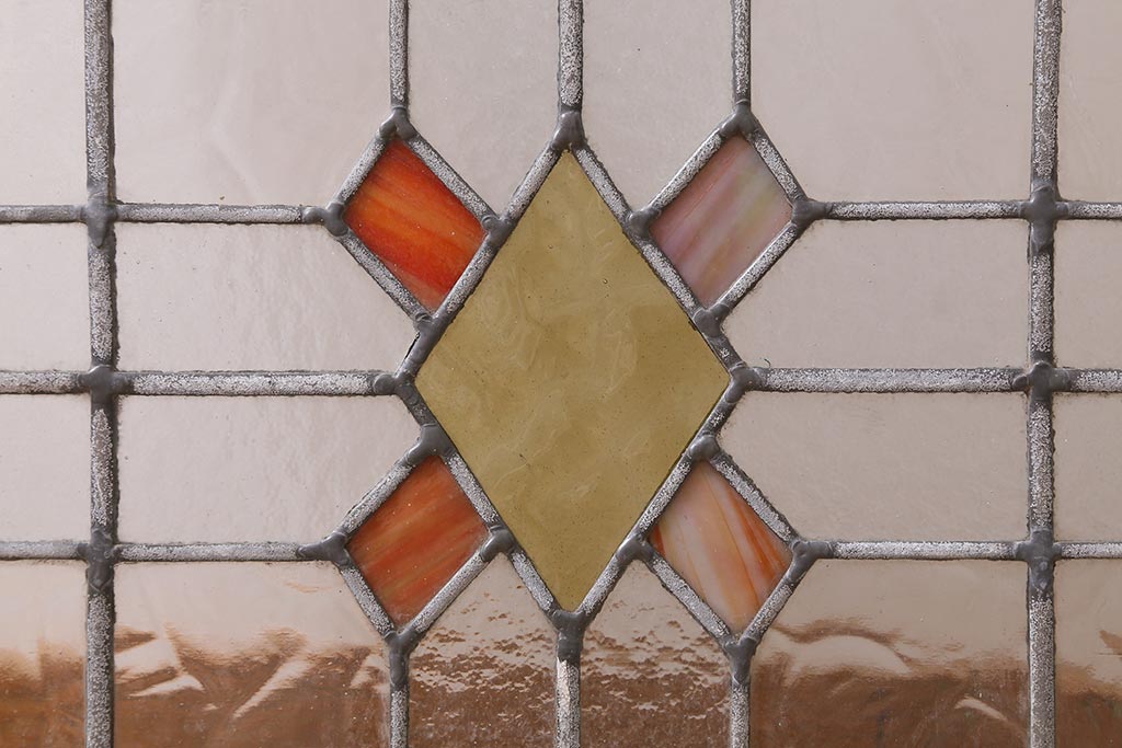 ステンドグラス > アンティーク建具 イギリスアンティーク 2色のカラーガラスが可愛らしいステンドグラスのペイントフィックス窓・大(明り取り)(R-39246)