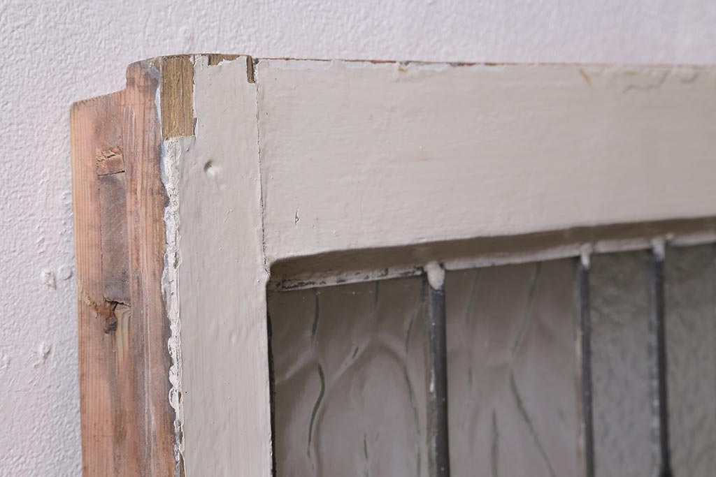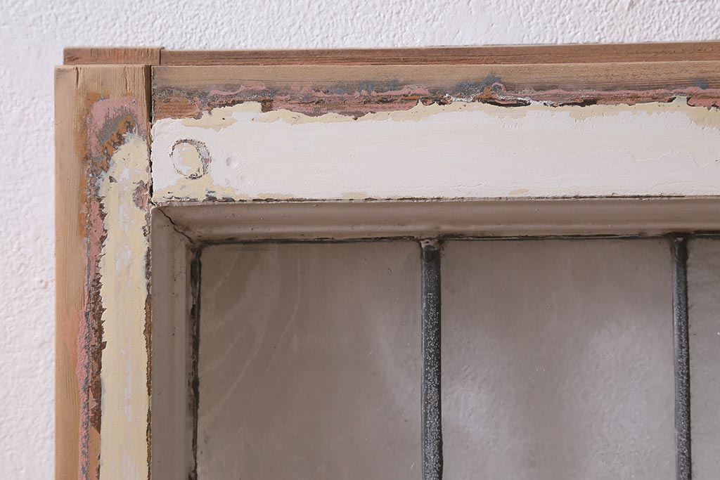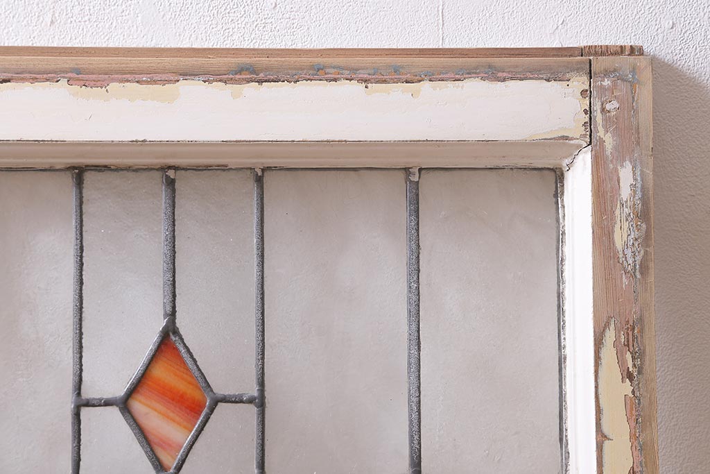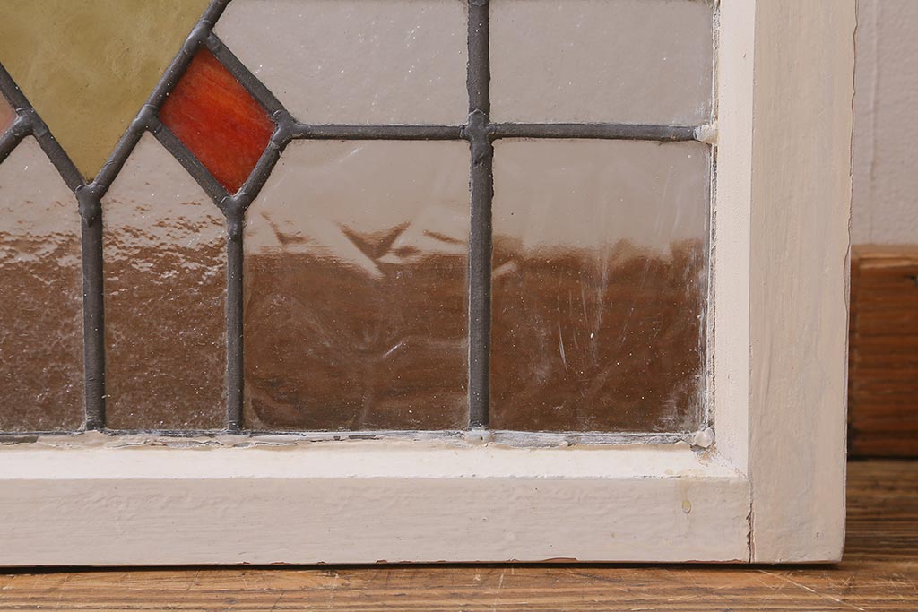 ドア・建具> 明り取り・欄間 > アンティーク建具 イギリスアンティーク 2色のカラーガラスが可愛らしいステンドグラスのペイントフィックス窓・大(明り取り)(R-39246)