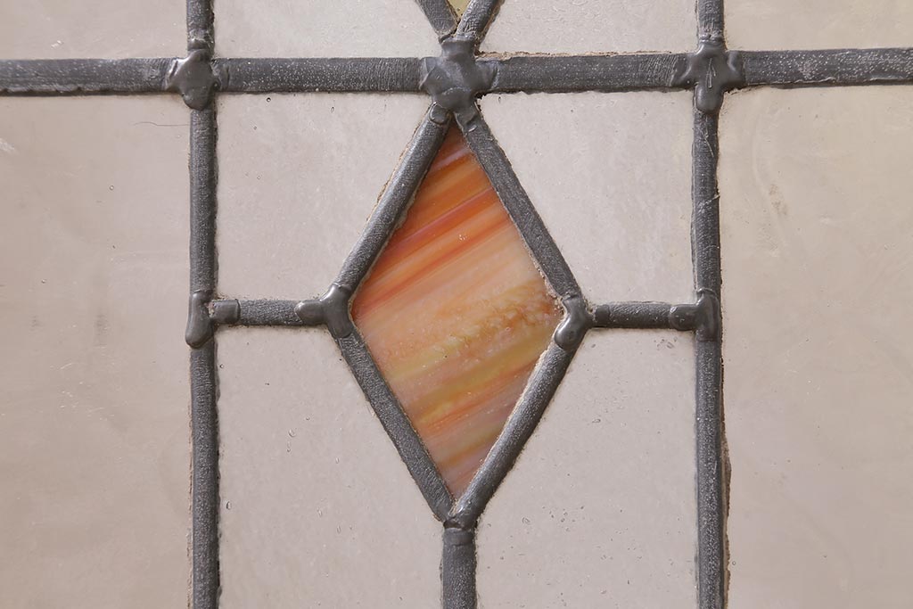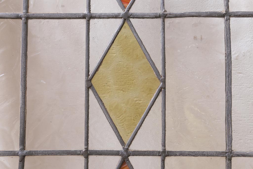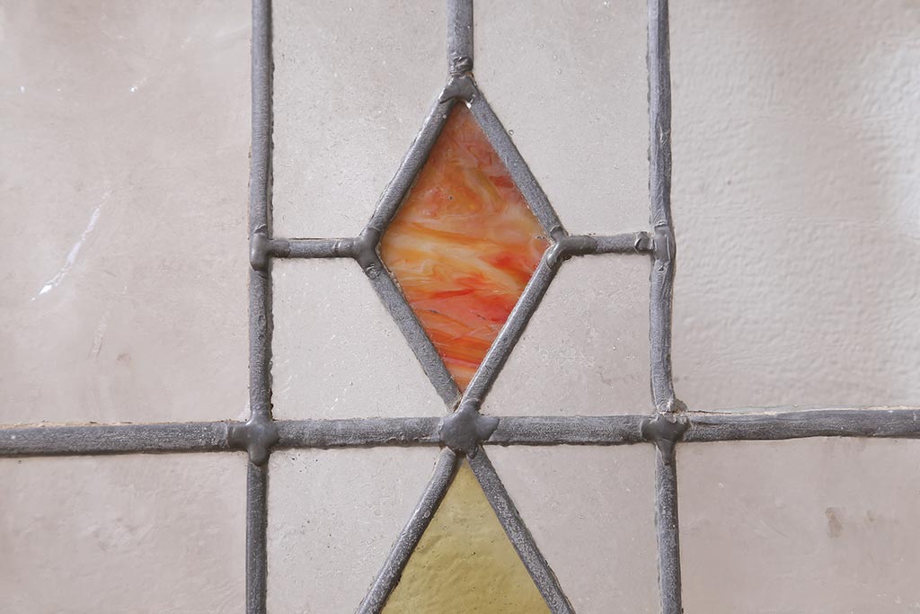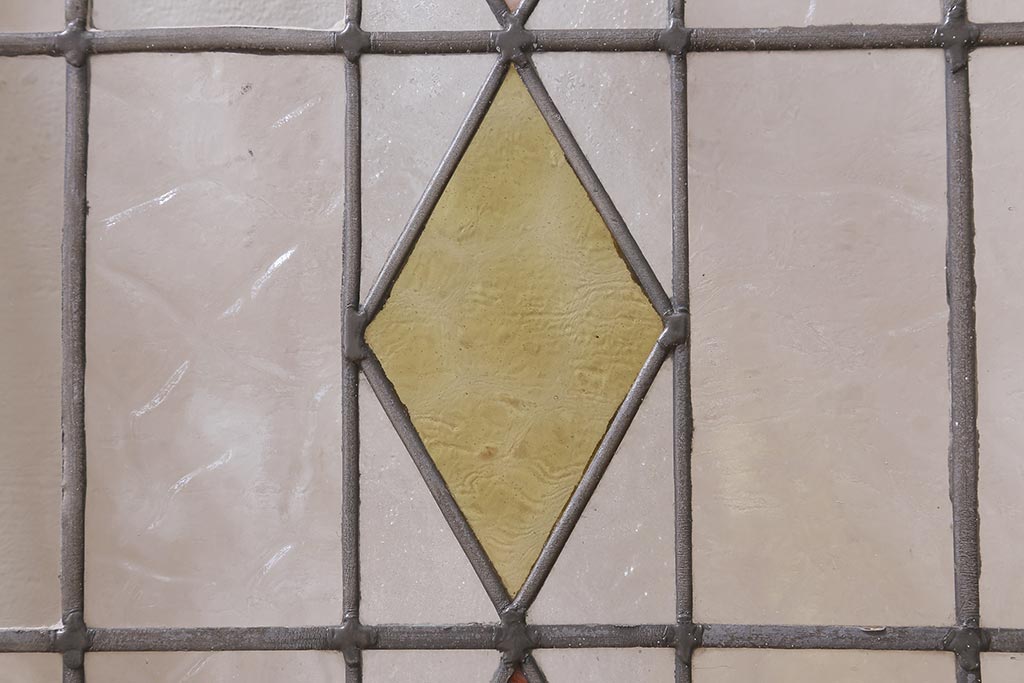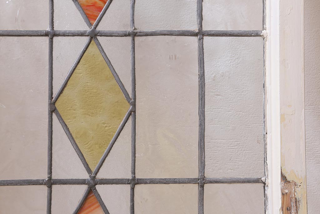 ステンドグラス > アンティーク建具 イギリスアンティーク 2色のカラーガラスが可愛らしいステンドグラスのペイントフィックス窓・小(明り取り)(R-39292)