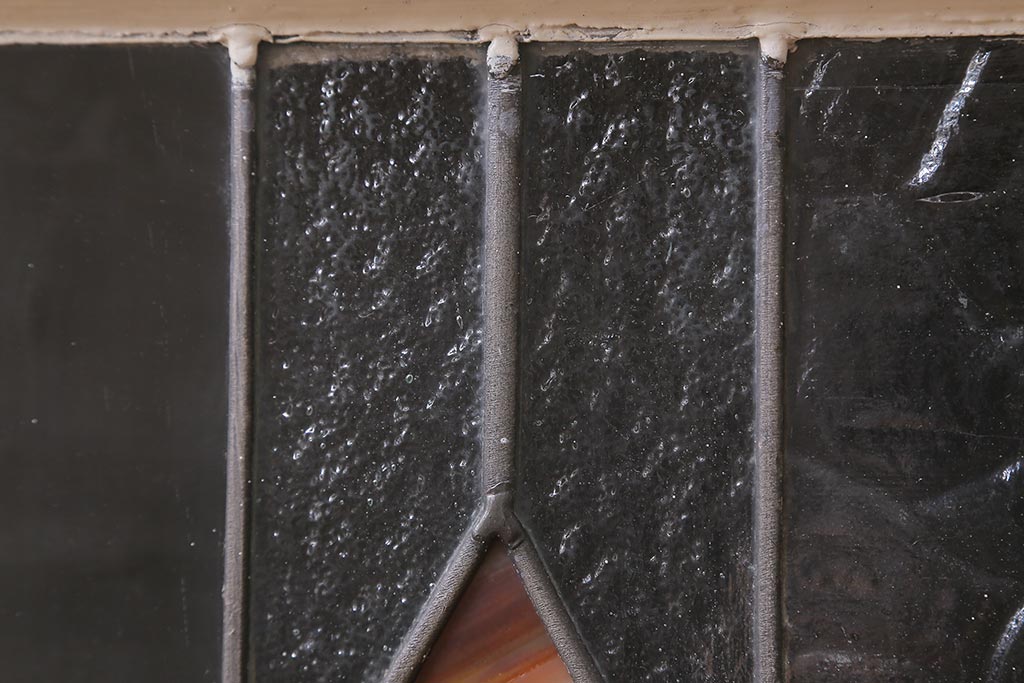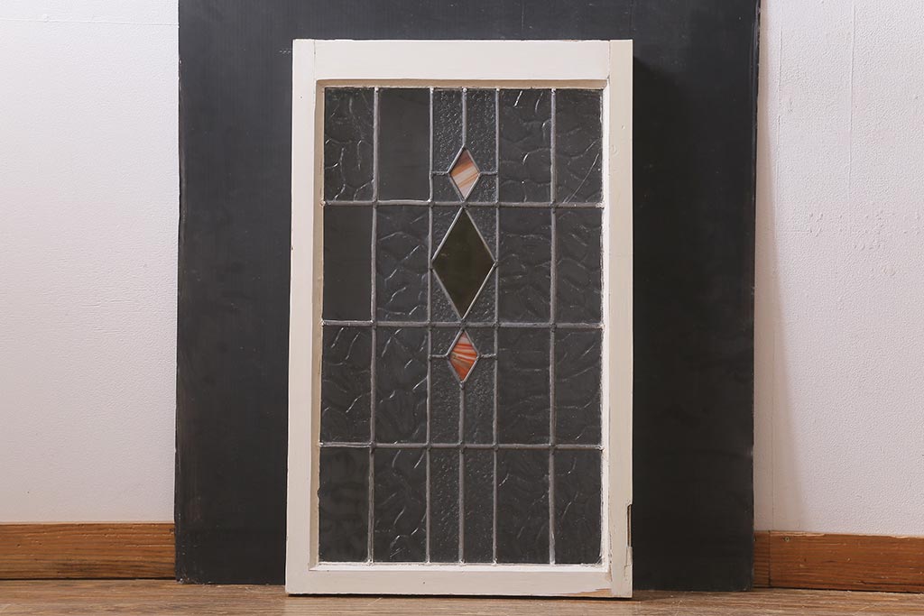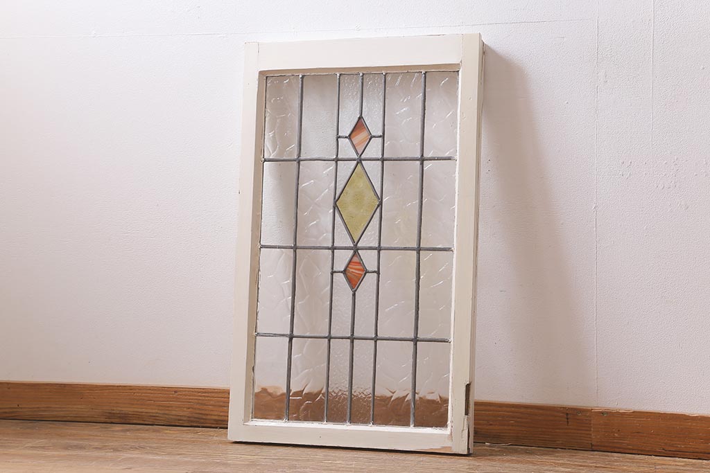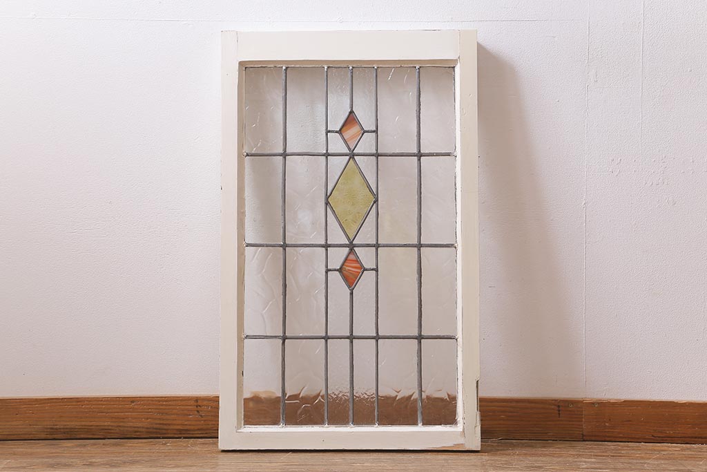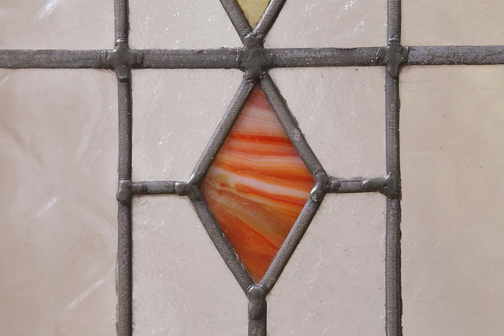 ステンドグラス > アンティーク建具 イギリスアンティーク 2色のカラーガラスが可愛らしいステンドグラスのペイントフィックス窓・小(明り取り)(R-39292)