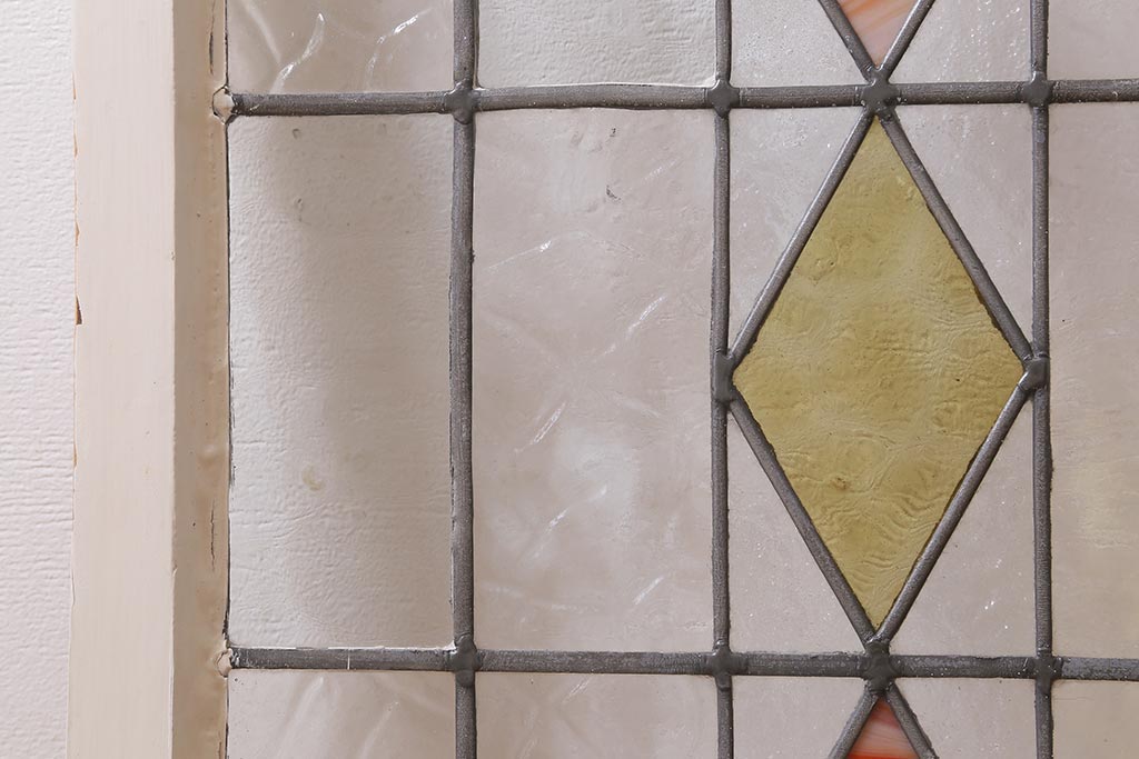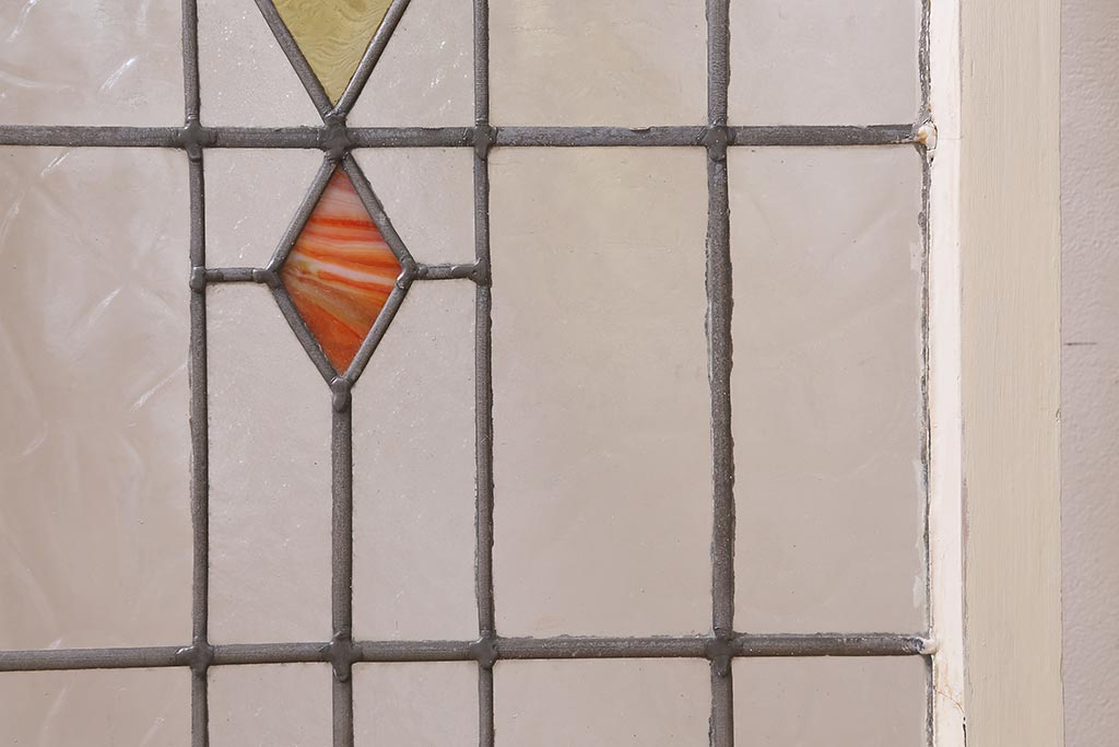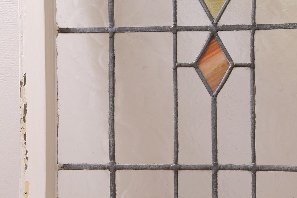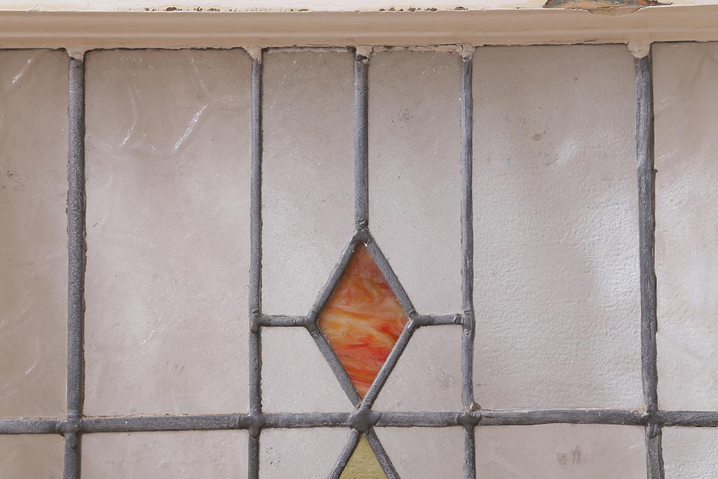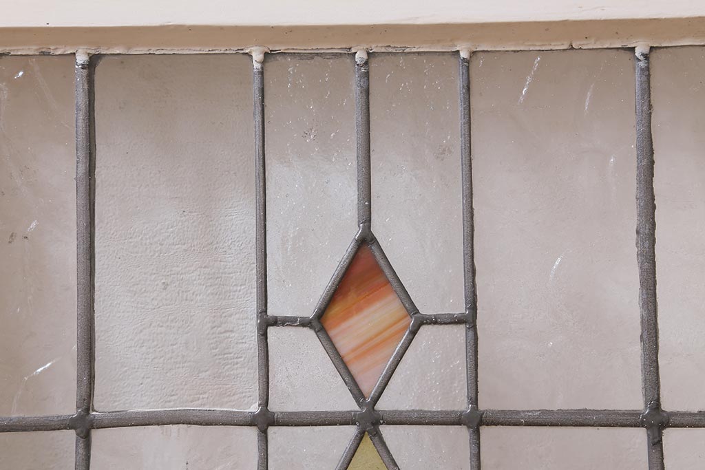 ドア・建具> 明り取り・欄間 > アンティーク建具 イギリスアンティーク 2色のカラーガラスが可愛らしいステンドグラスのペイントフィックス窓・小(明り取り)(R-39292)