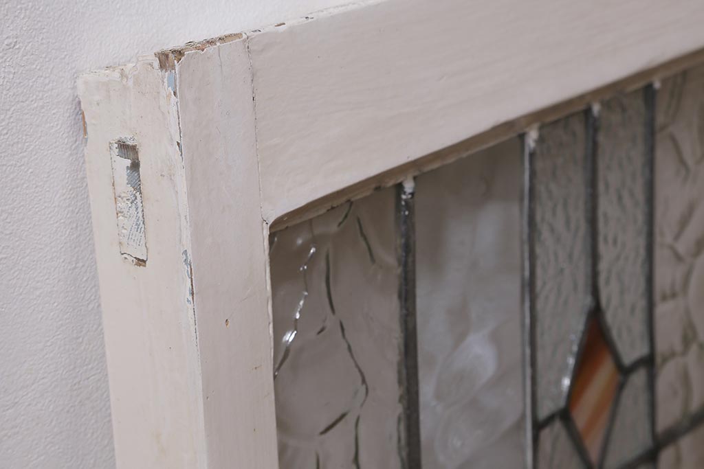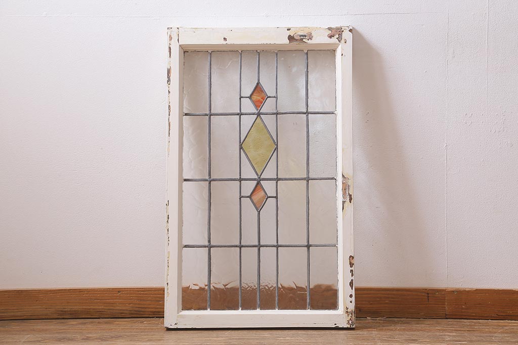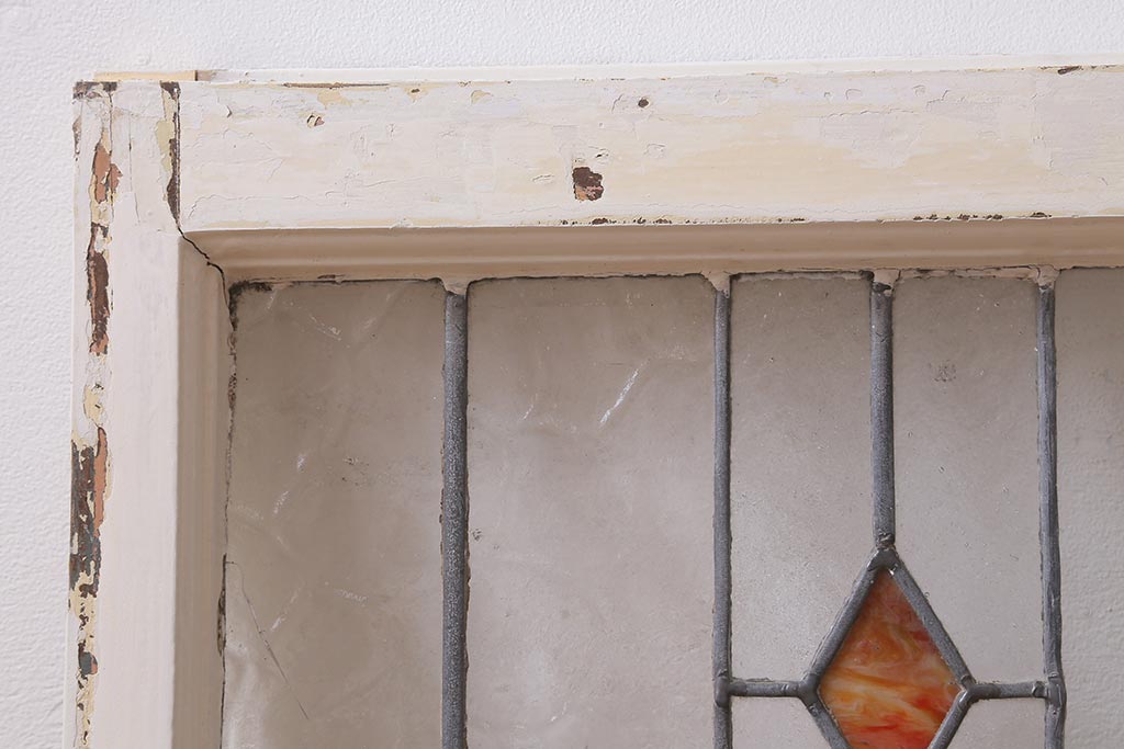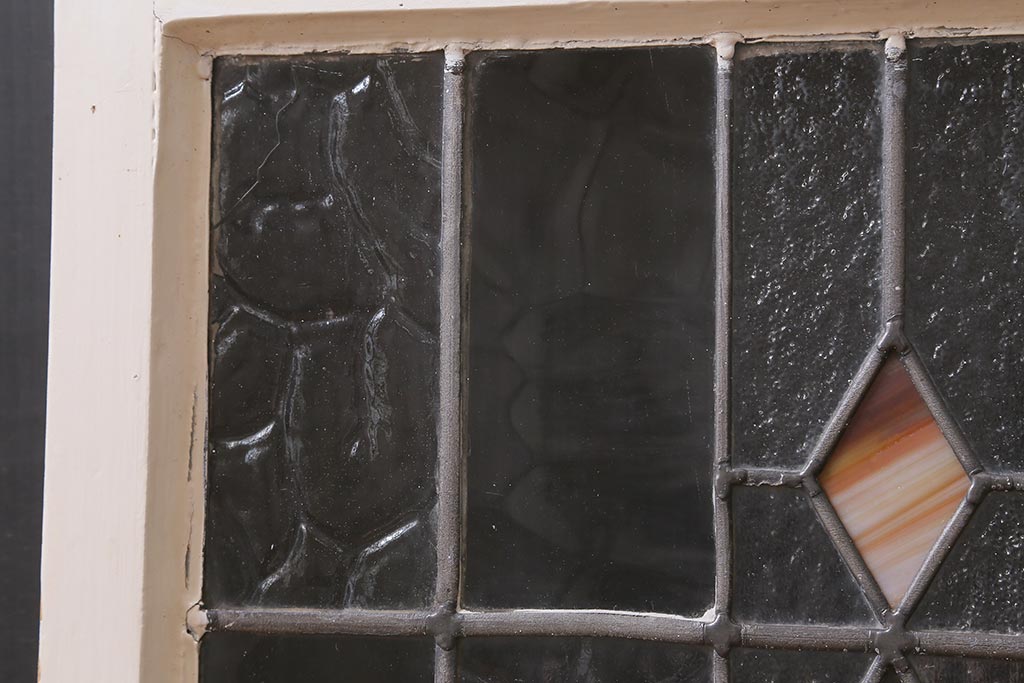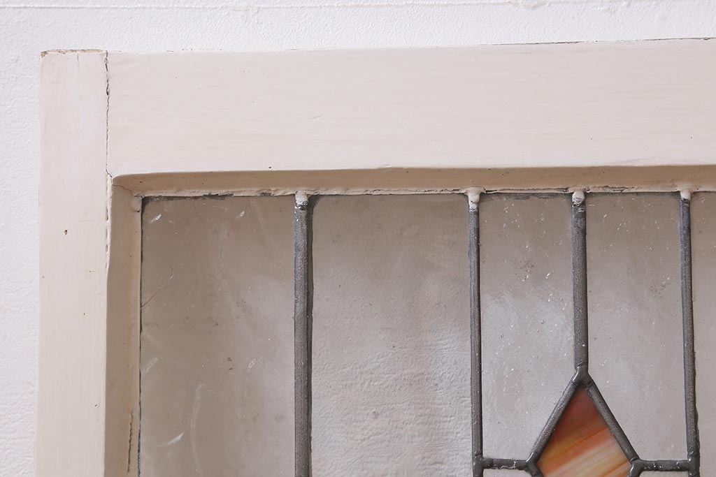 ドア・建具> 明り取り・欄間 > アンティーク建具 イギリスアンティーク 2色のカラーガラスが可愛らしいステンドグラスのペイントフィックス窓・小(明り取り)(R-39292)