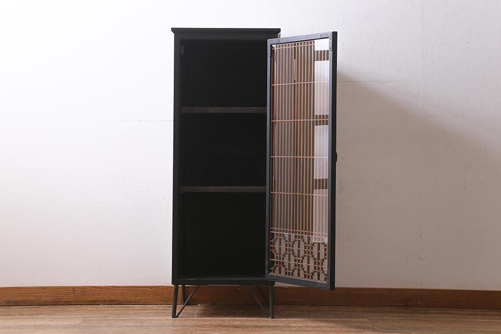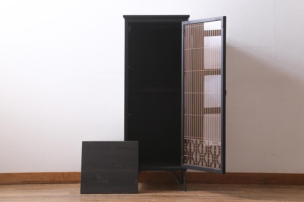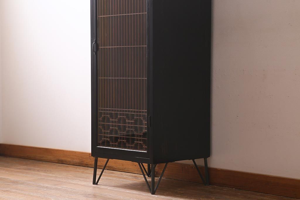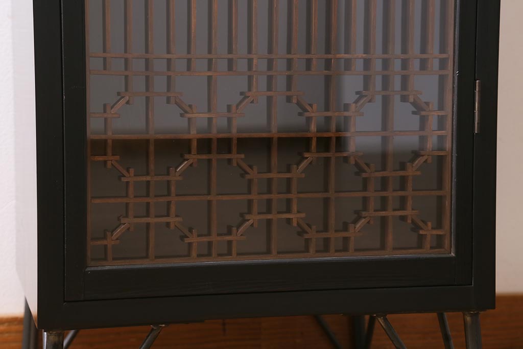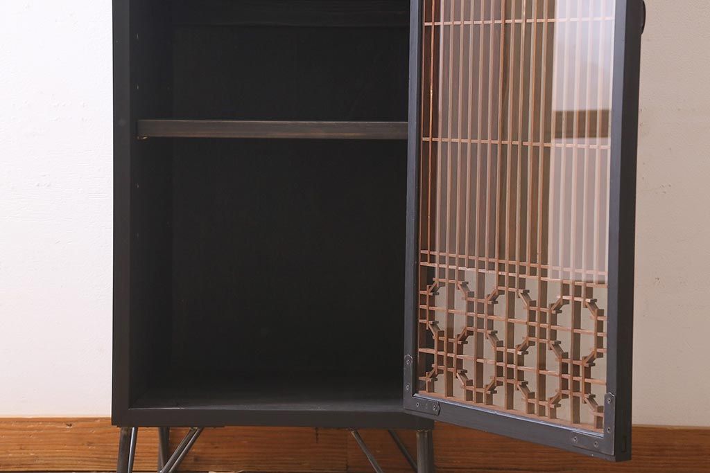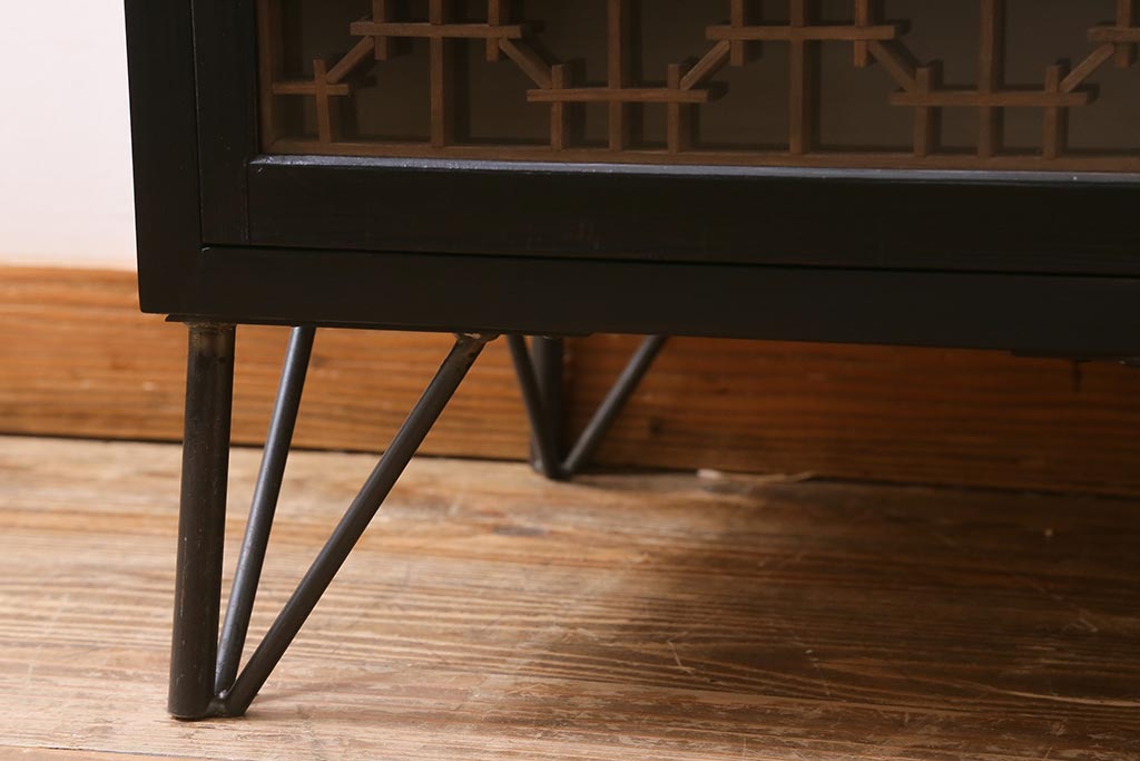 ラフジュ工房オリジナル 古建具リメイク 黒いペイントが組子細工を引き立てる鉄脚付き戸棚(書院戸、組子、収納棚)(R-039310)です。