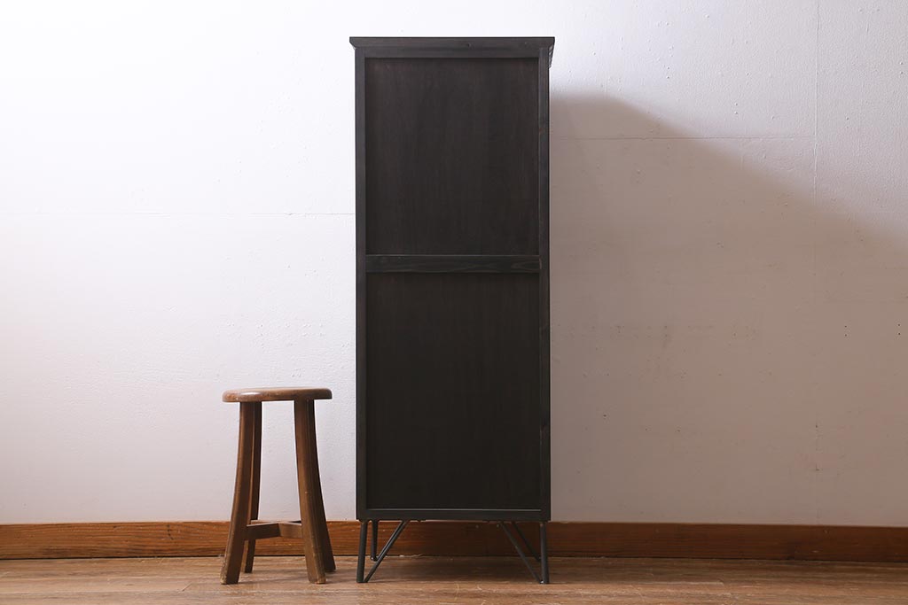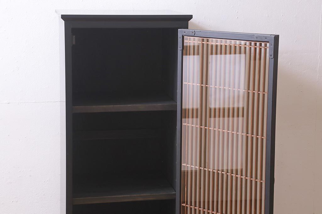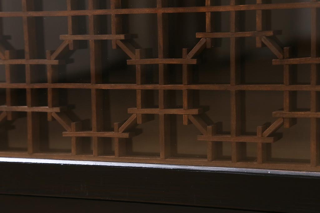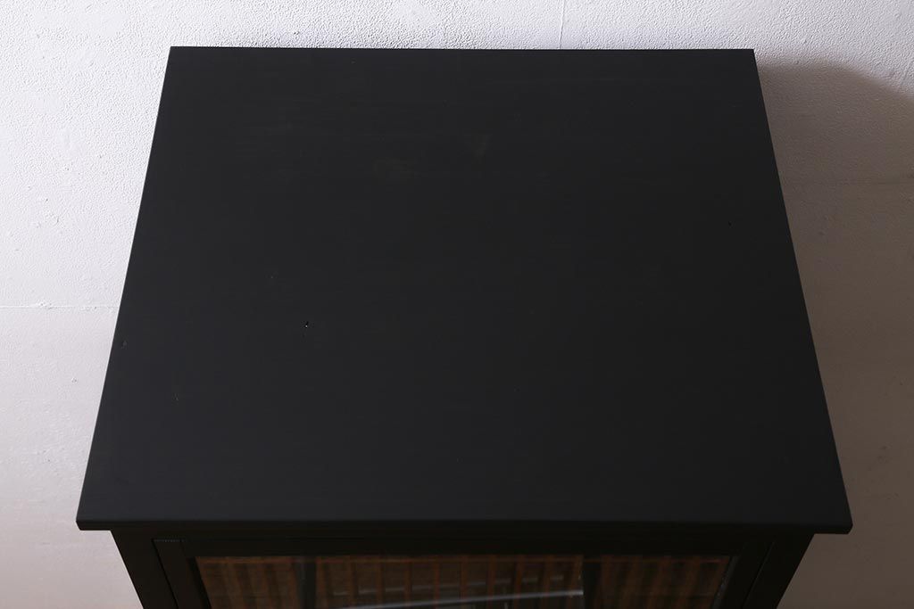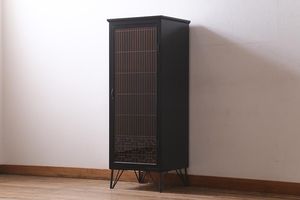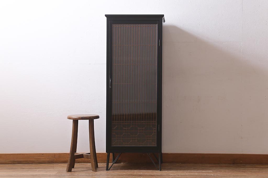 ラフジュ工房オリジナル 古建具リメイク 黒いペイントが組子細工を引き立てる鉄脚付き戸棚(書院戸、組子、収納棚)(R-039310)です。