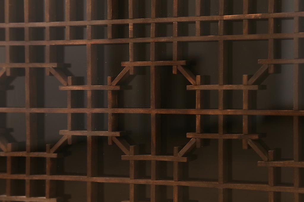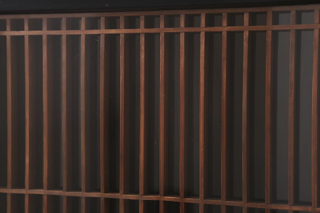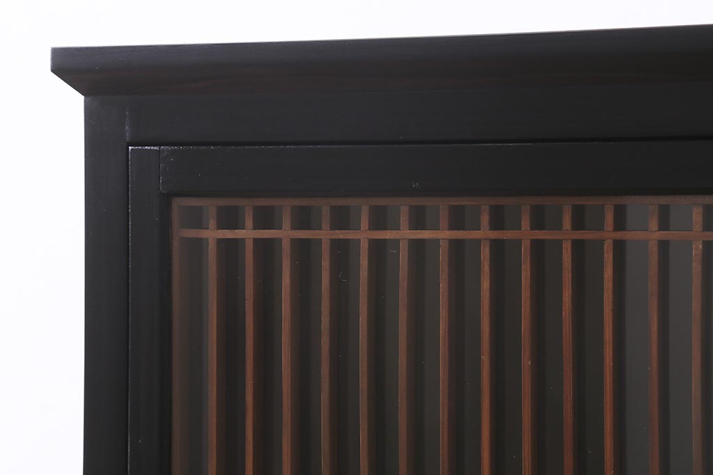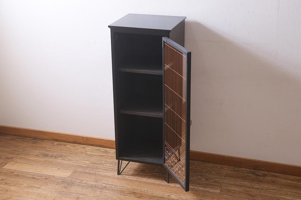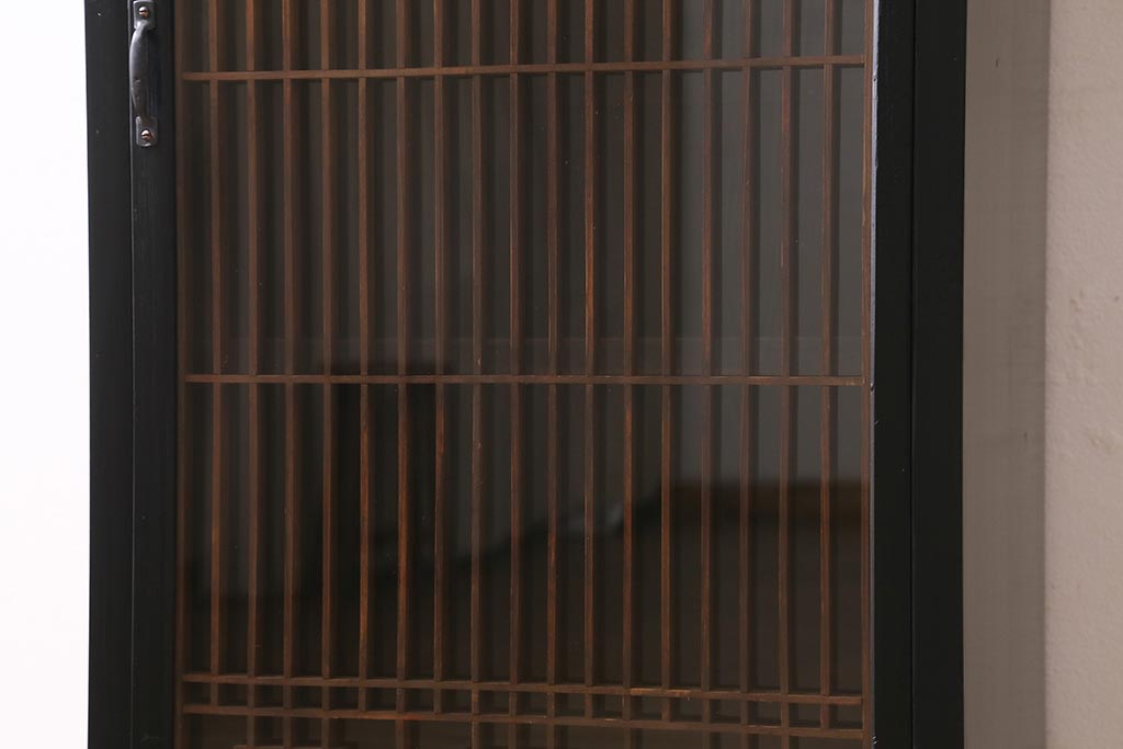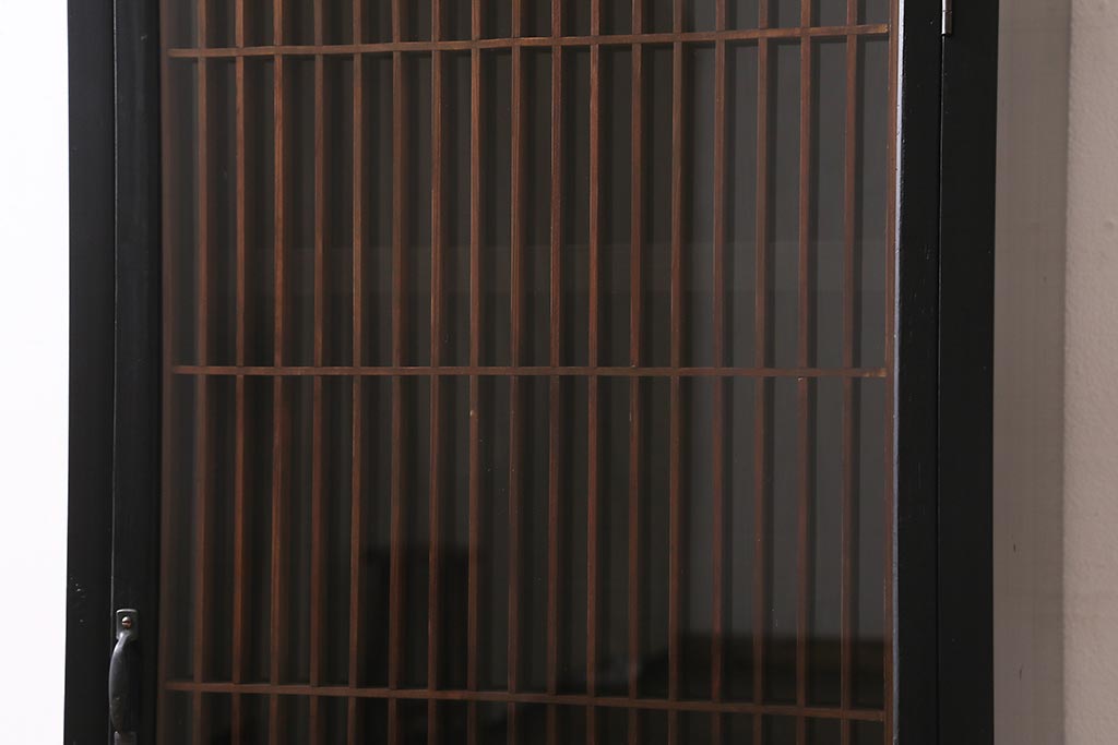 ラフジュ工房オリジナル 古建具リメイク 黒いペイントが組子細工を引き立てる鉄脚付き戸棚(書院戸、組子、収納棚)(R-039310)です。