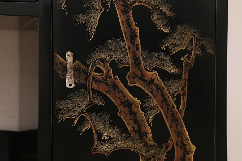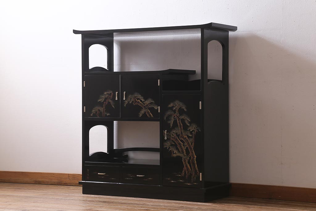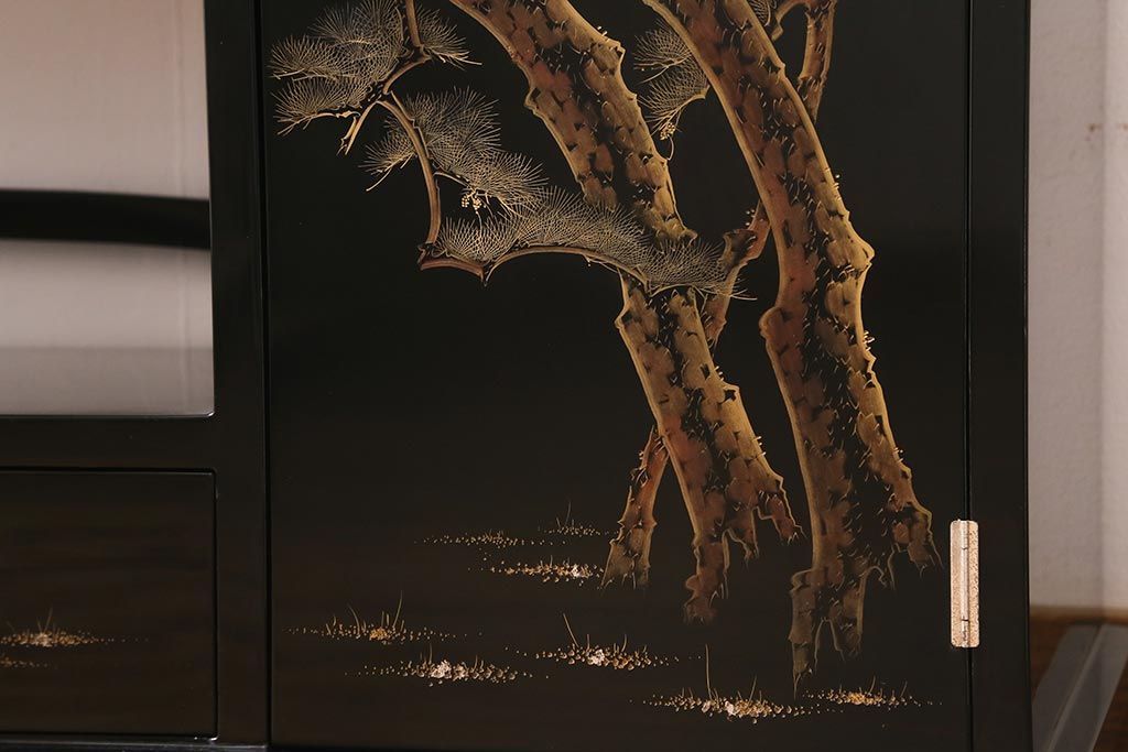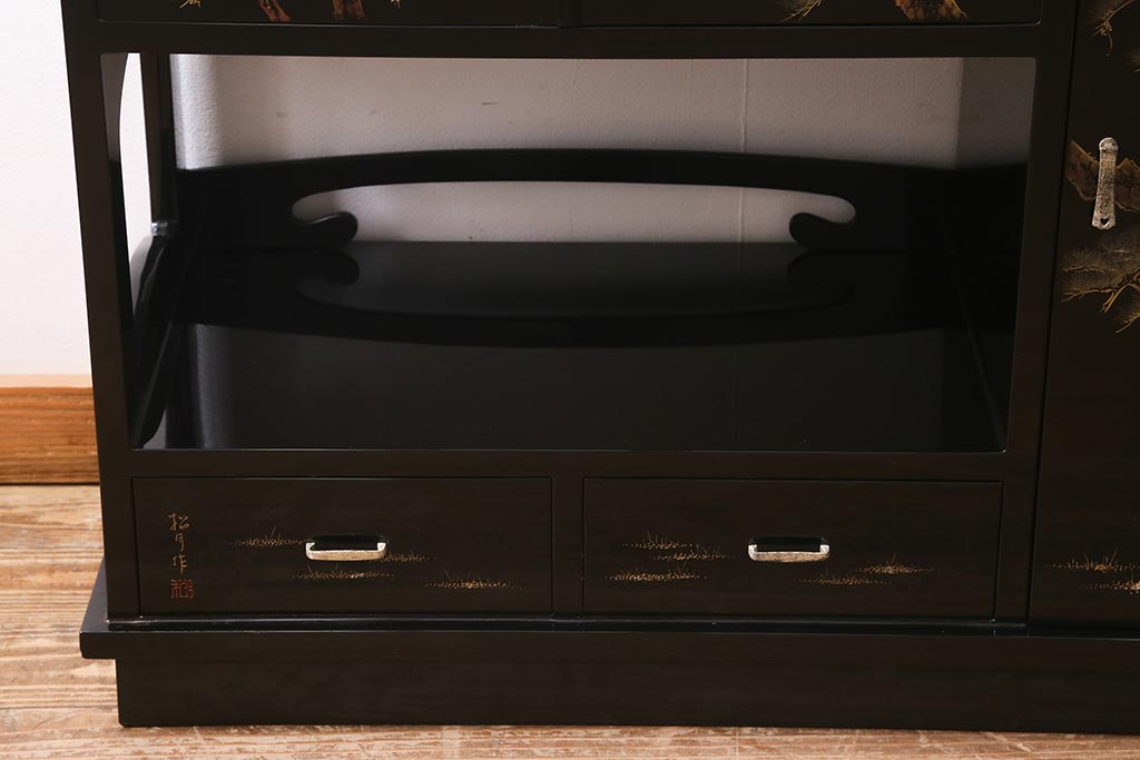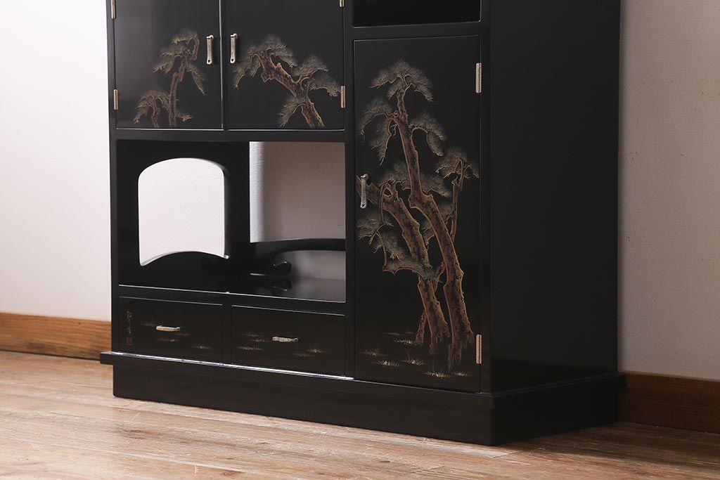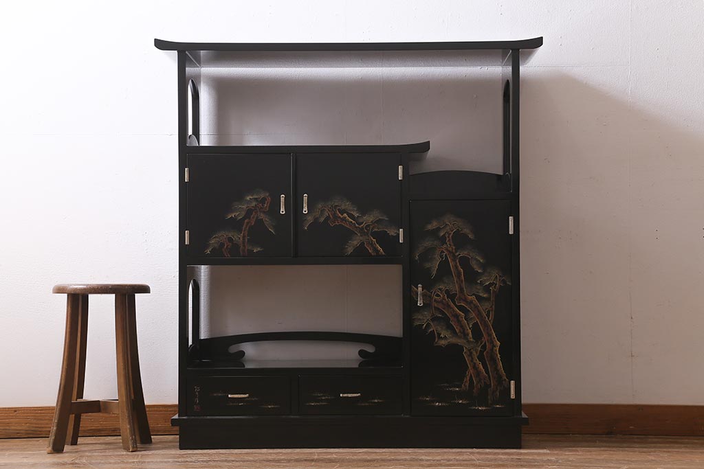 和箪笥 > 中古 伝統工芸品 松月作 漆塗り 力強い松の蒔絵が美しい飾り棚(茶箪笥、茶棚)(R-039345)