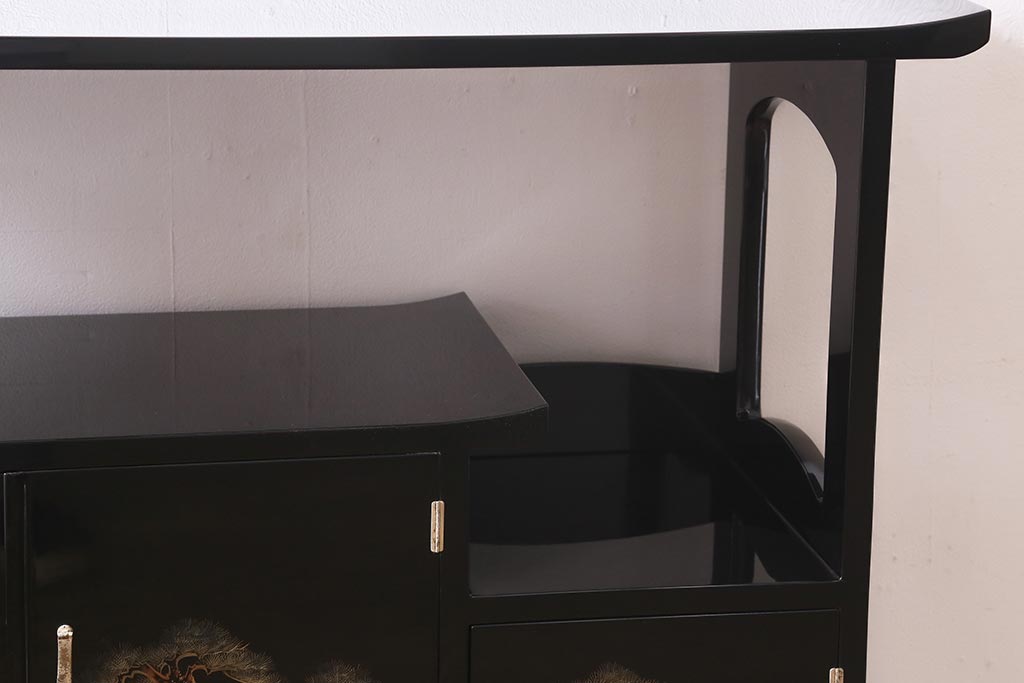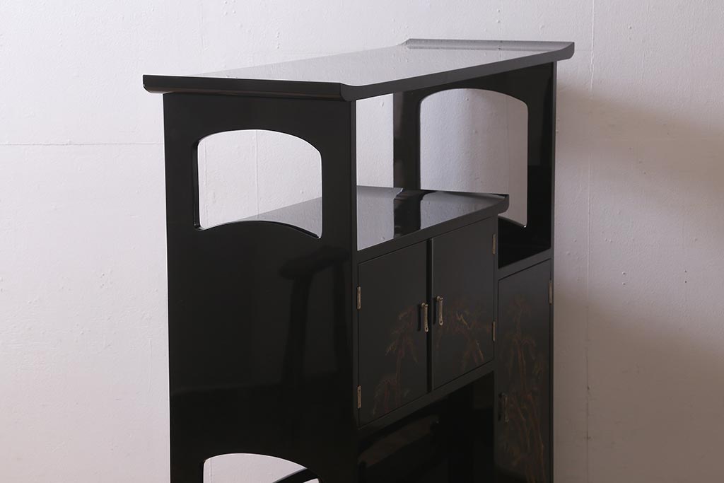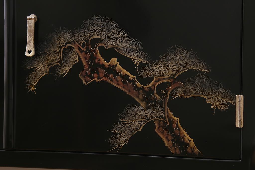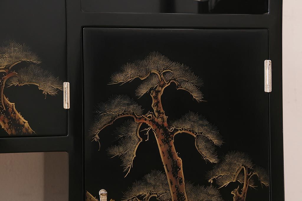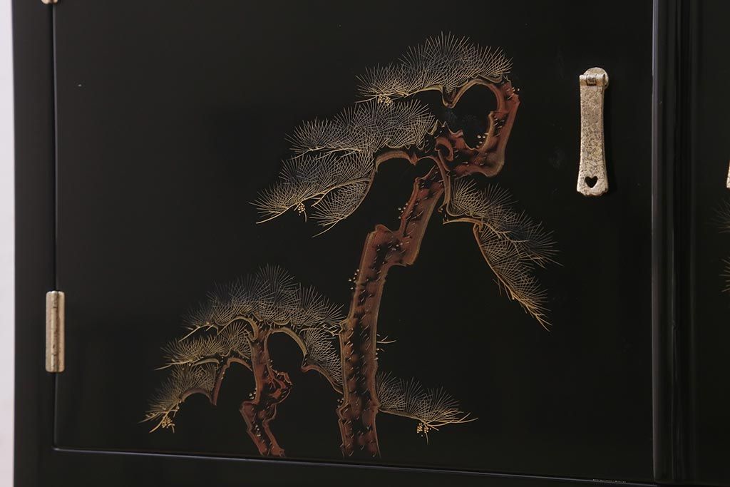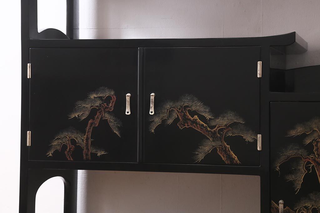 和箪笥 > 中古 伝統工芸品 松月作 漆塗り 力強い松の蒔絵が美しい飾り棚(茶箪笥、茶棚)(R-039345)