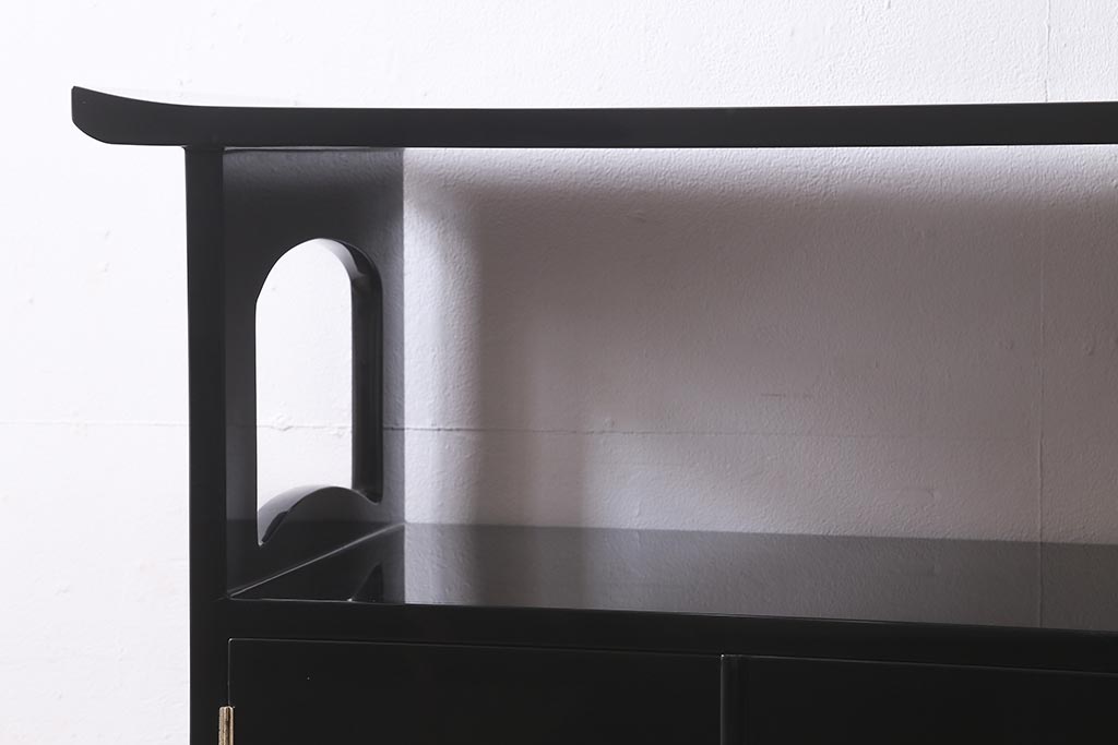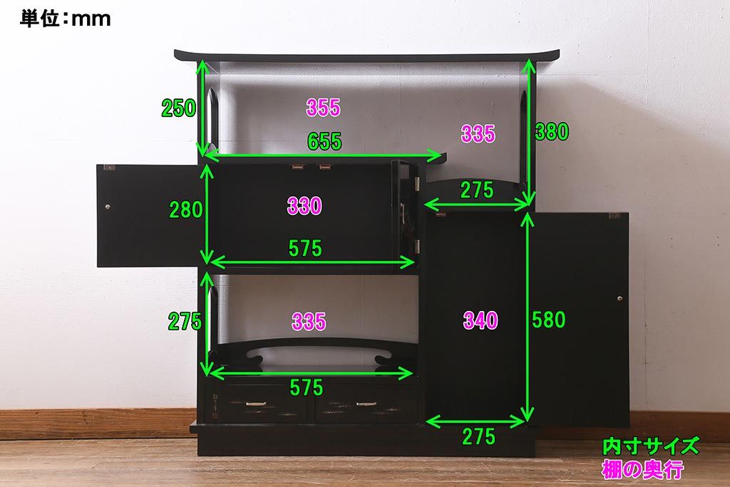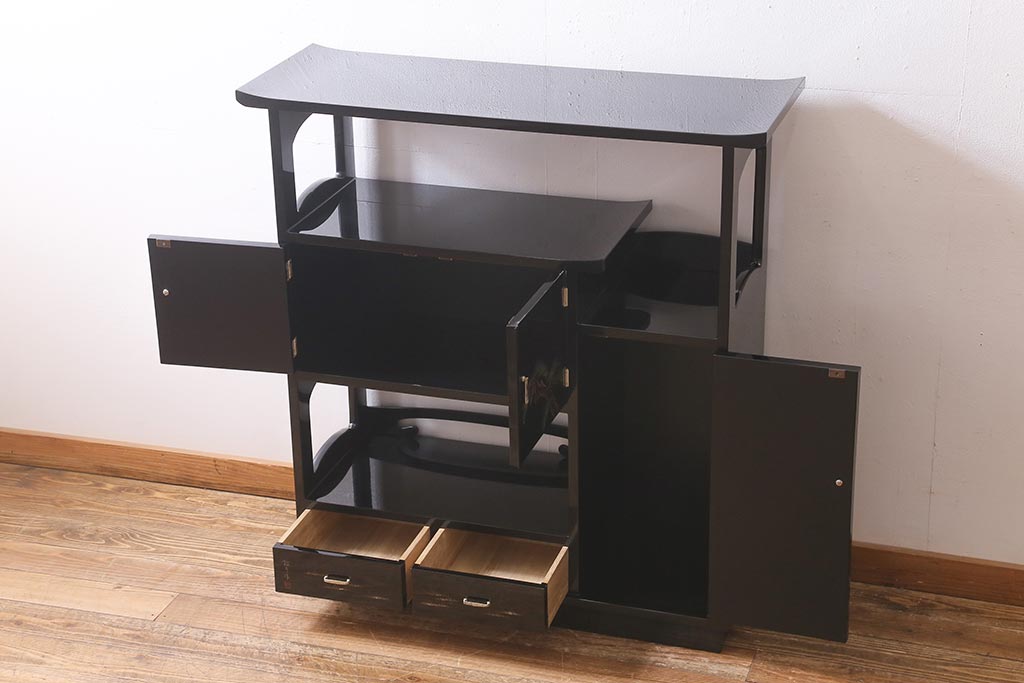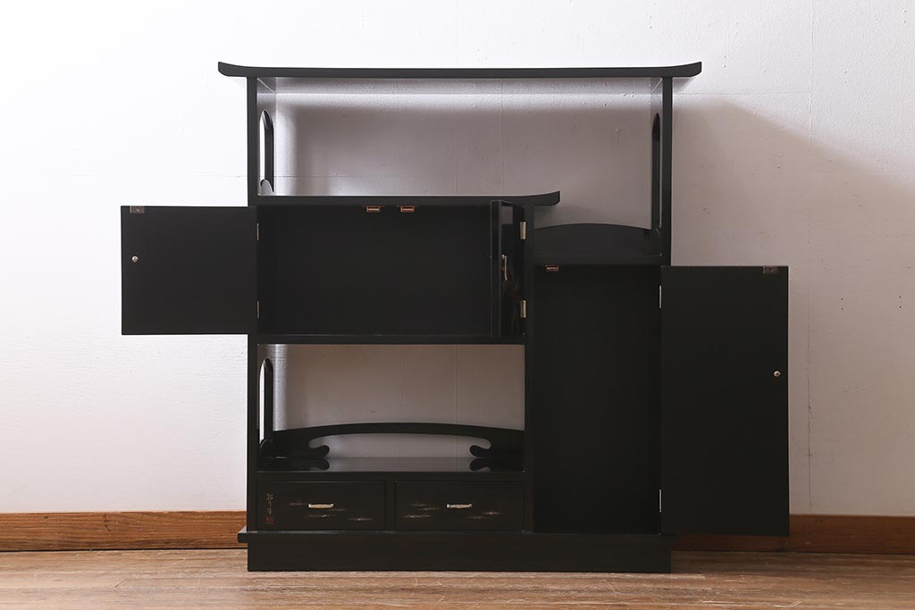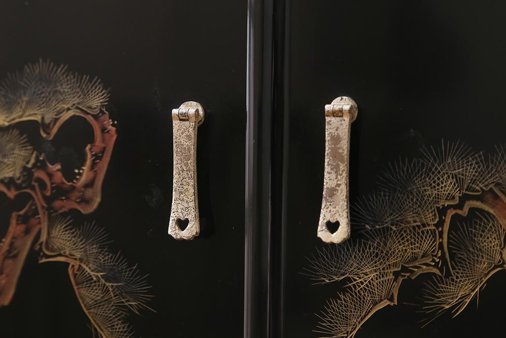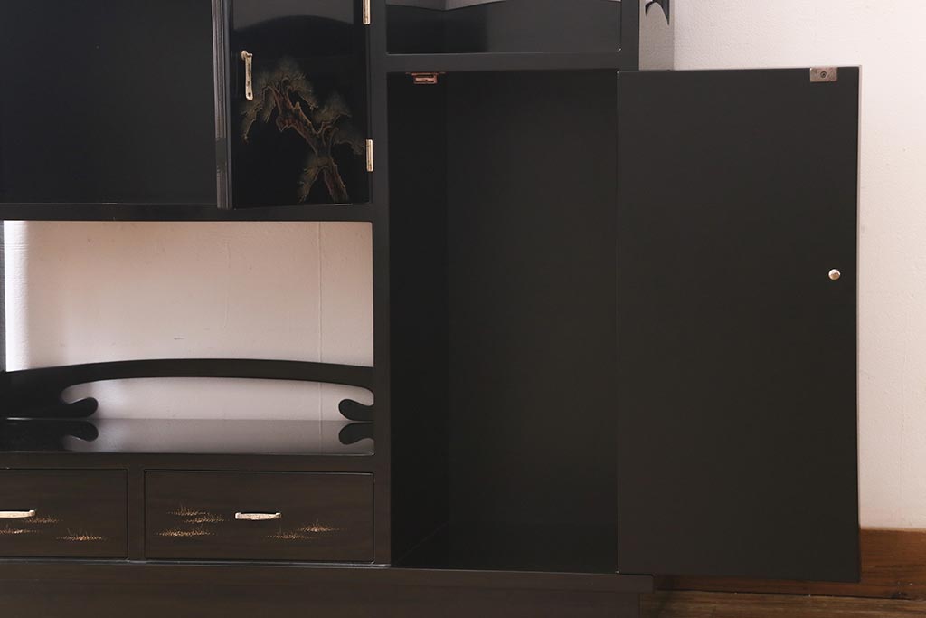 和箪笥 > 中古 伝統工芸品 松月作 漆塗り 力強い松の蒔絵が美しい飾り棚(茶箪笥、茶棚)(R-039345)