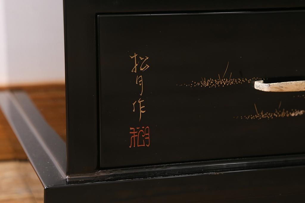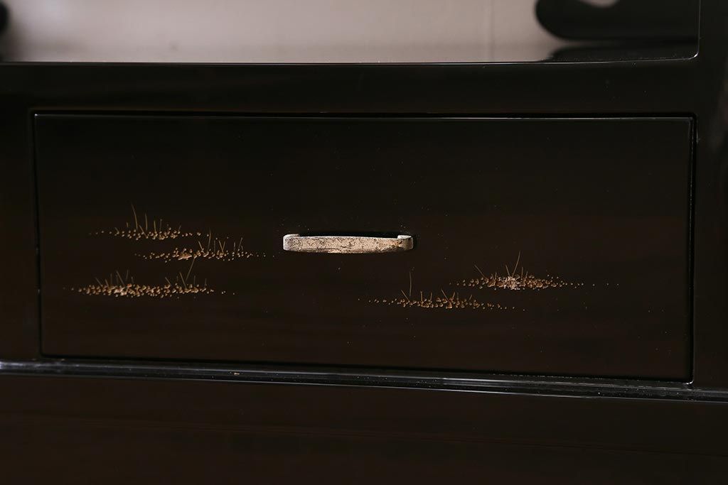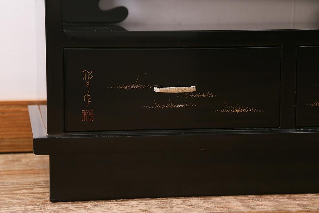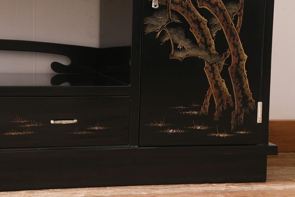 和箪笥> 茶箪笥・茶棚 > 中古 伝統工芸品 松月作 漆塗り 力強い松の蒔絵が美しい飾り棚(茶箪笥、茶棚)(R-039345)