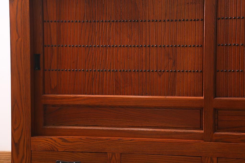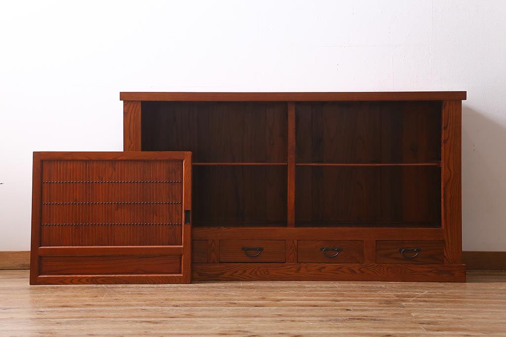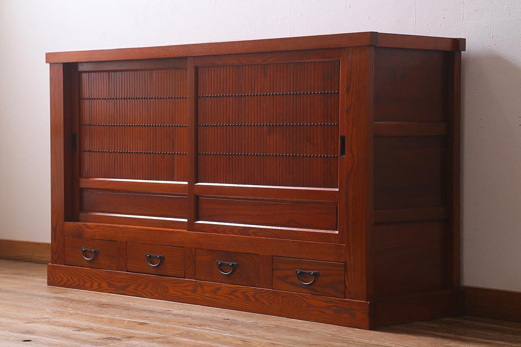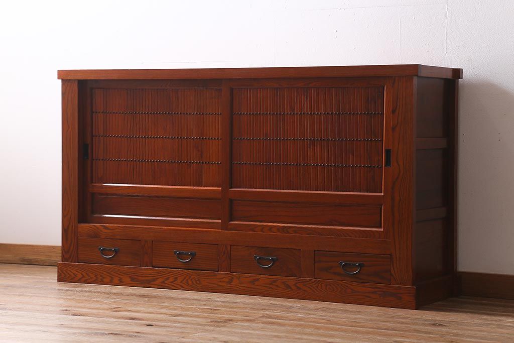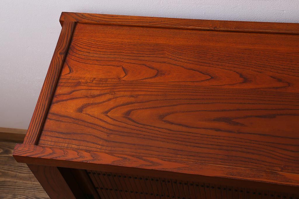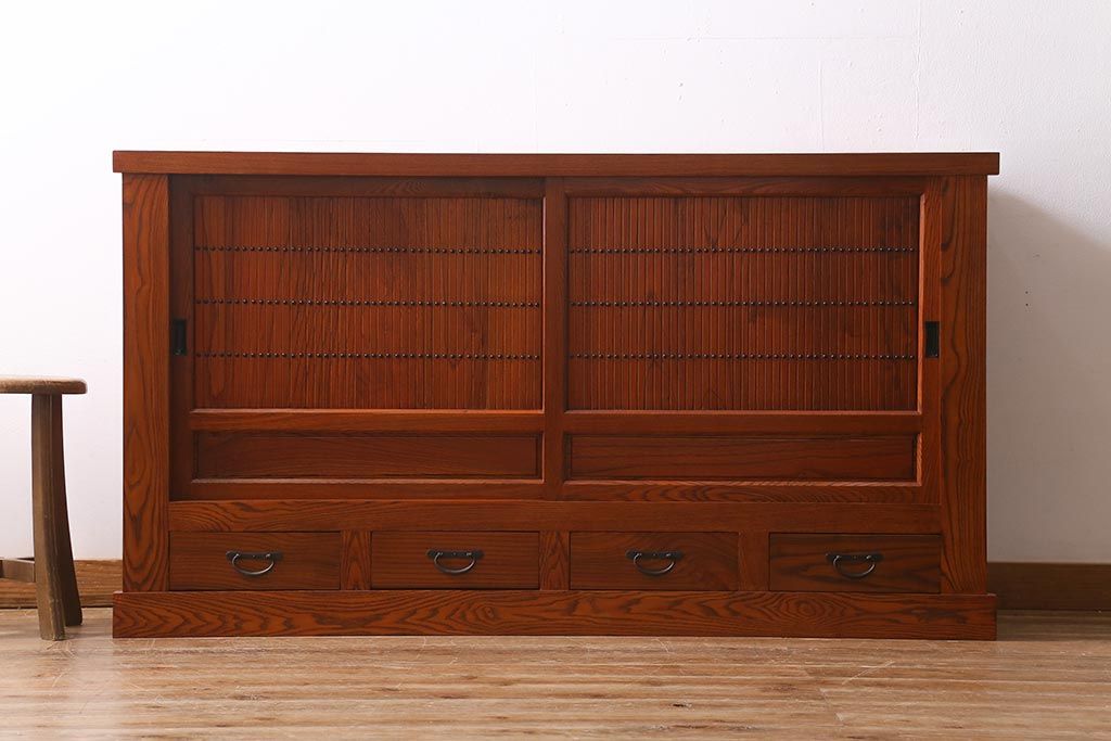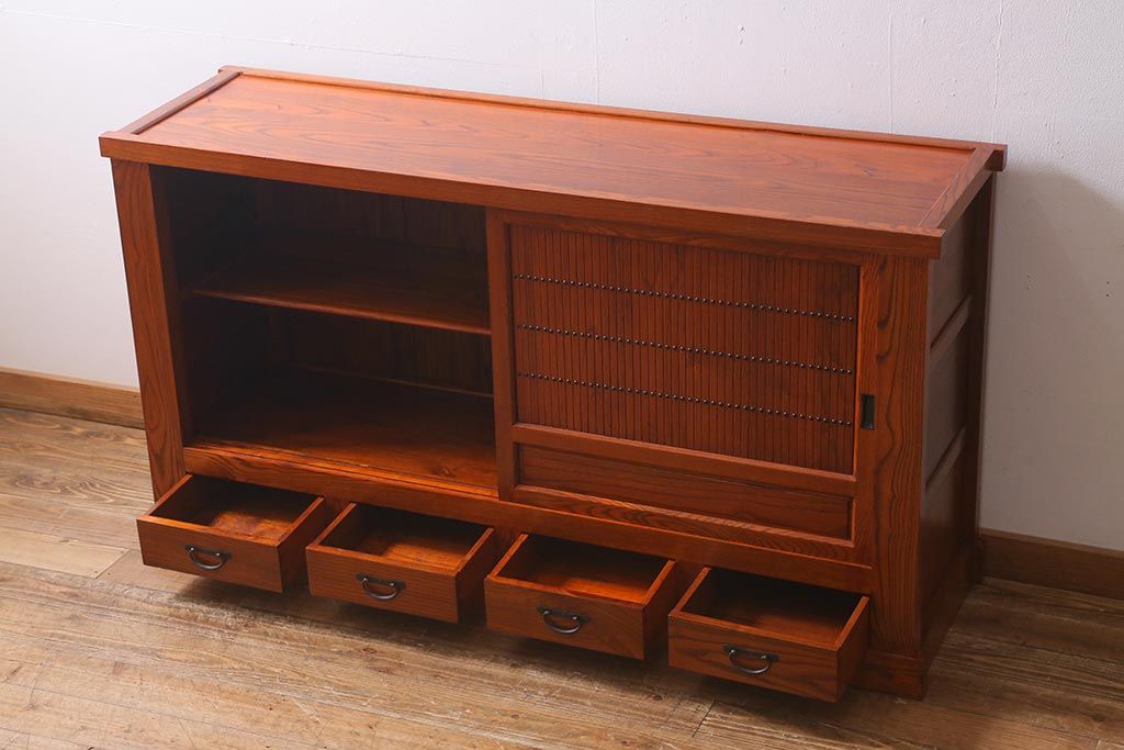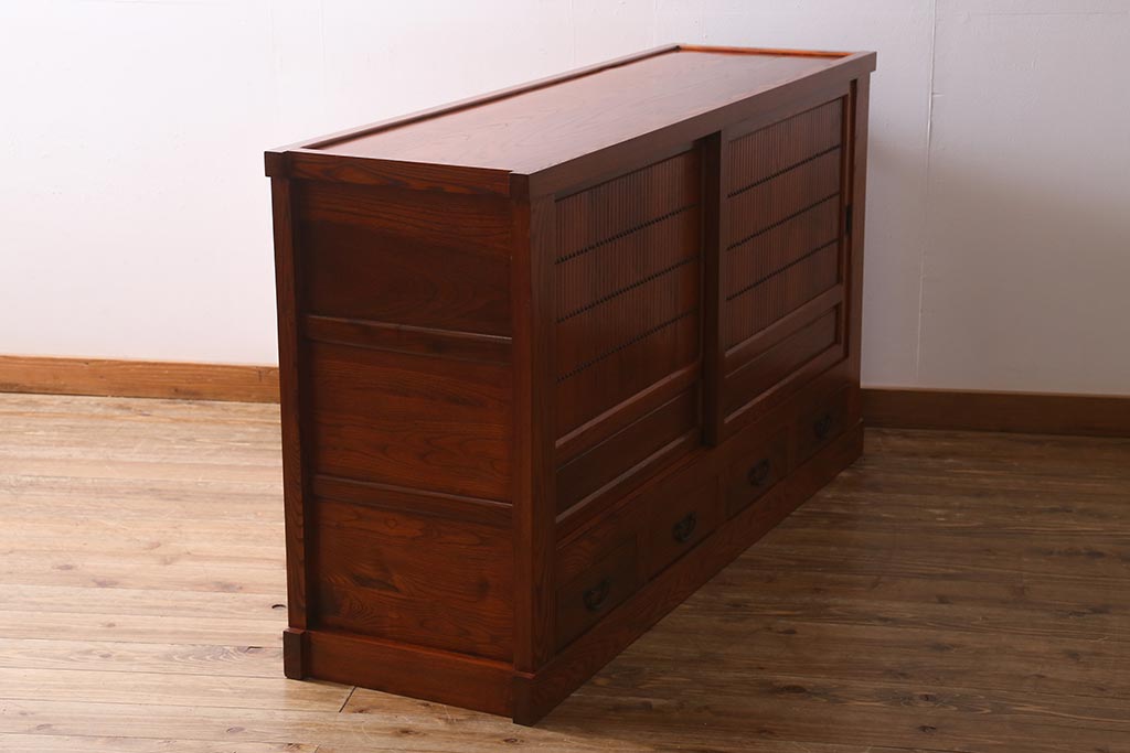 和箪笥> 水屋箪笥 > 新古品 民芸家具 ニレ無垢材 上品な和の雰囲気を醸し出す水屋箪笥(サイドボード、テレビボード、戸棚)(R-039338)