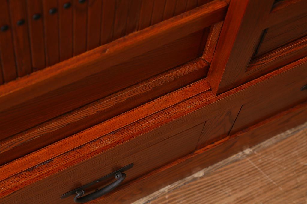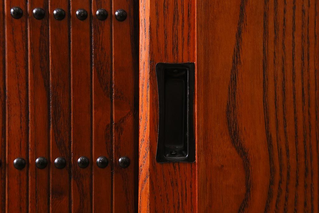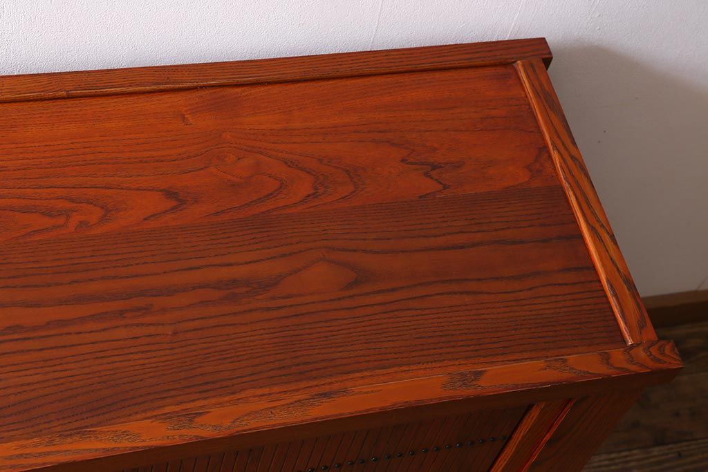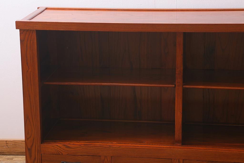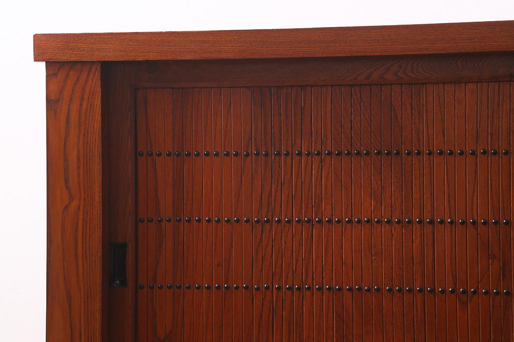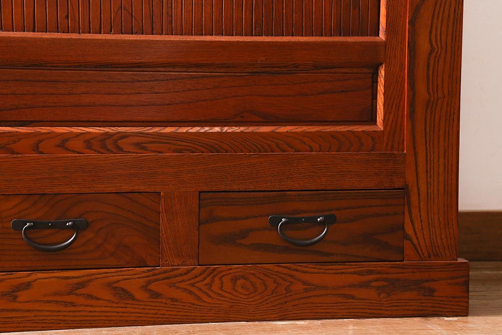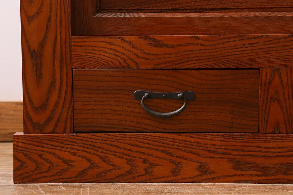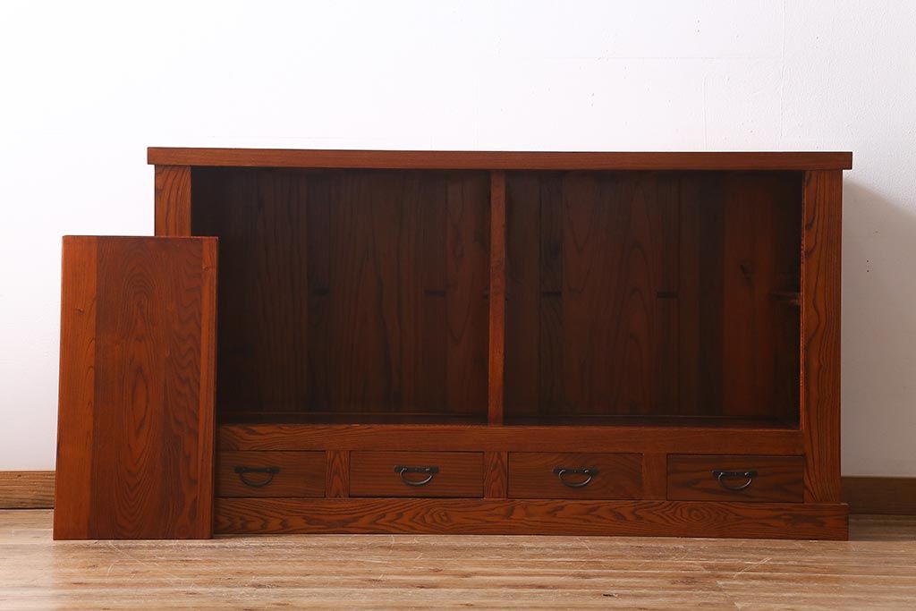 和箪笥> 水屋箪笥 > 新古品 民芸家具 ニレ無垢材 上品な和の雰囲気を醸し出す水屋箪笥(サイドボード、テレビボード、戸棚)(R-039338)