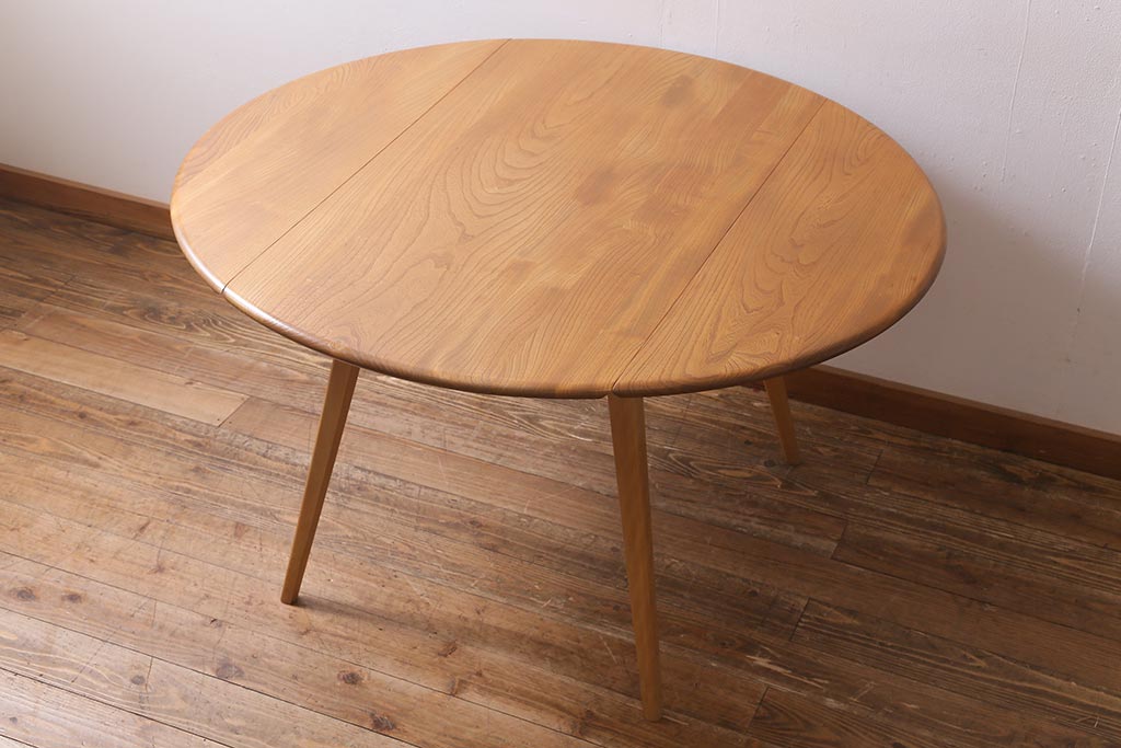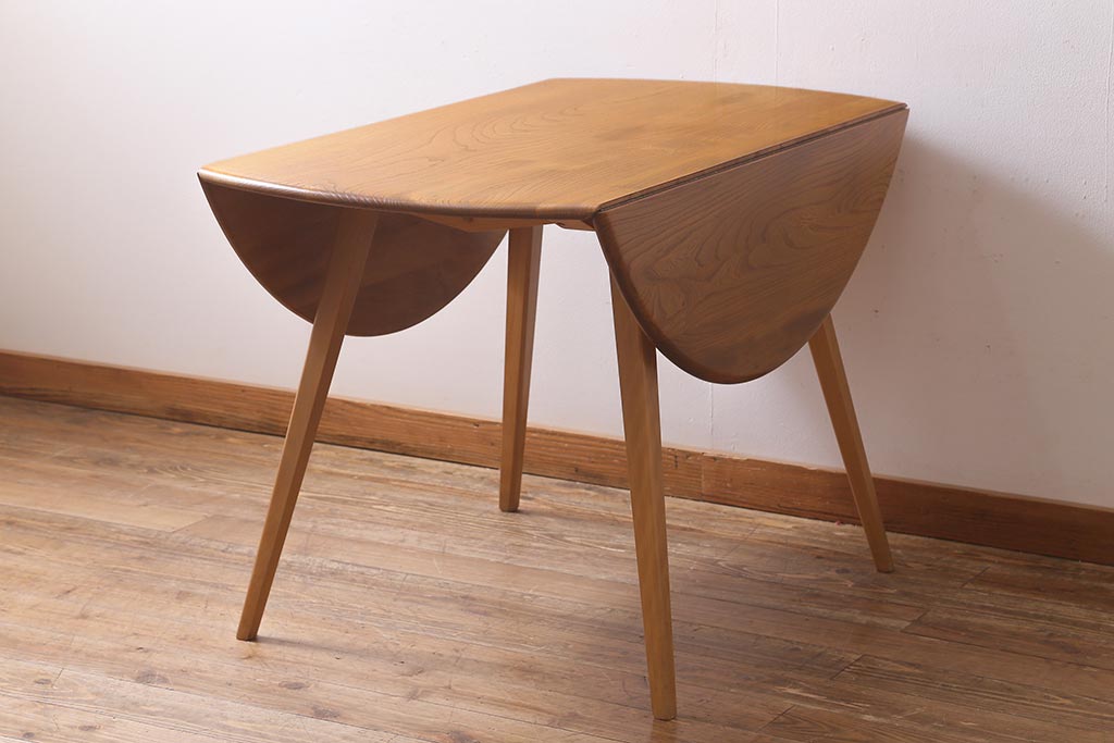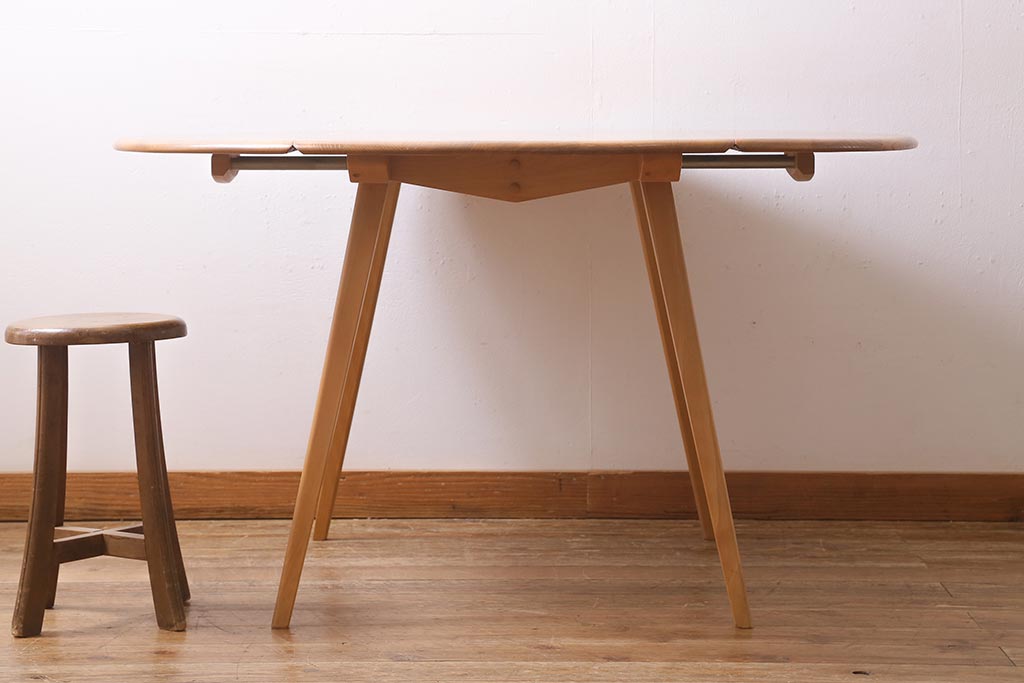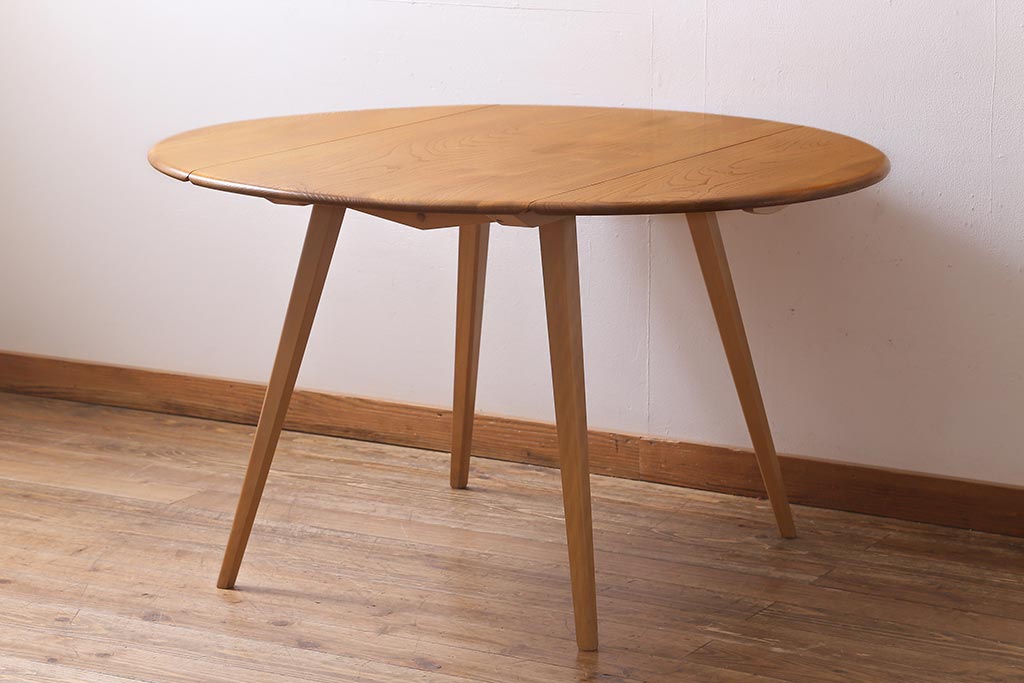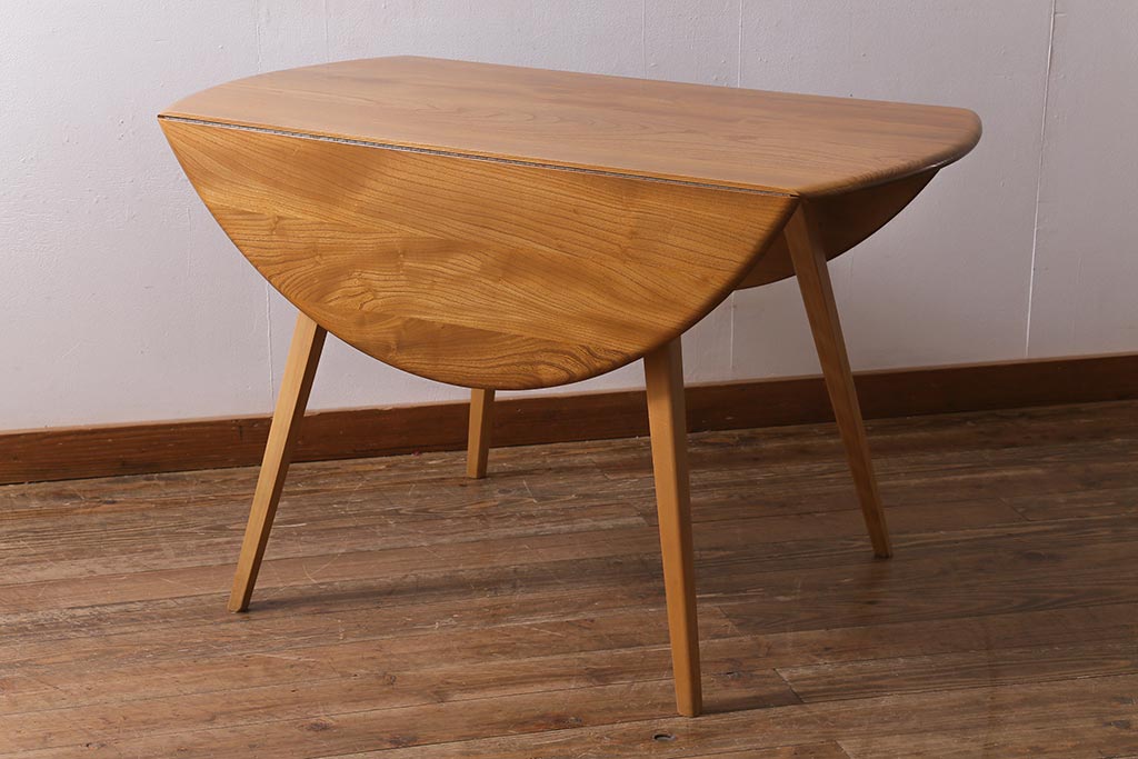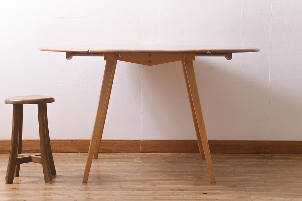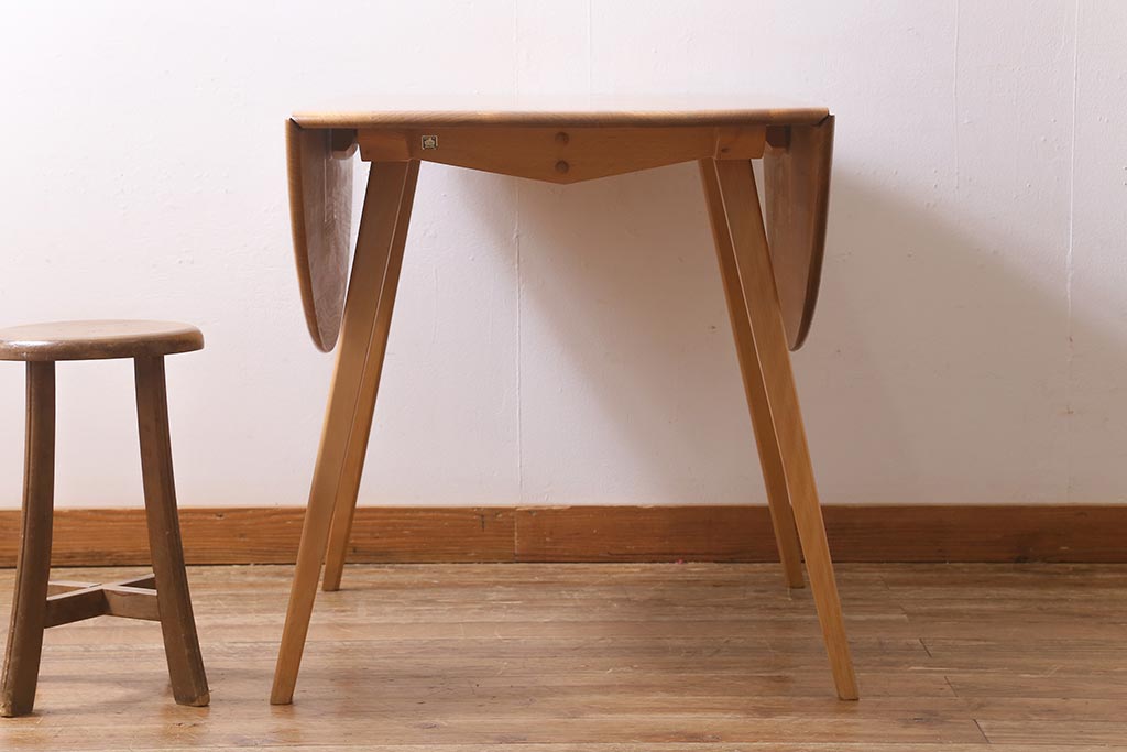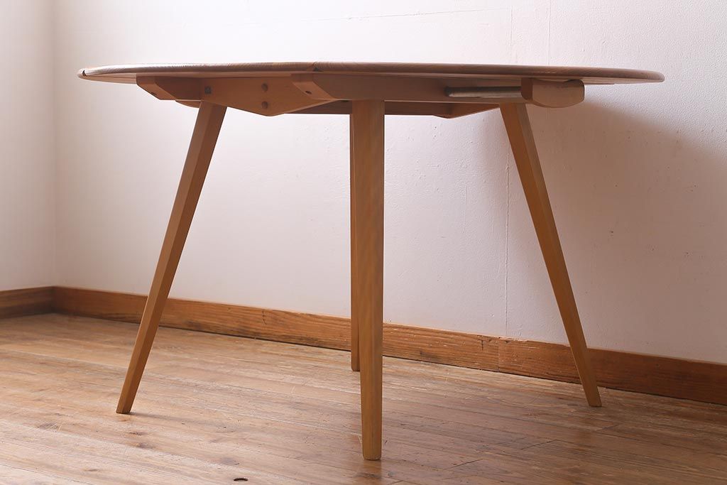 テーブル> 丸テーブル > ヴィンテージ家具 イギリスビンテージ ERCOL(アーコール) スタイリッシュなデザインが目をひくバタフライテーブル(ドロップリーフテーブル、ダイニングテーブル)(R-039349)