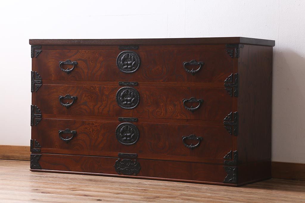 中古 伝統工芸 岩谷堂箪笥 天板リメイク・厚手栗無垢材 テレビ台としてもおすすめな和風ローチェスト(テレビボード、引き出し、ローボード)(R-039327)です。
