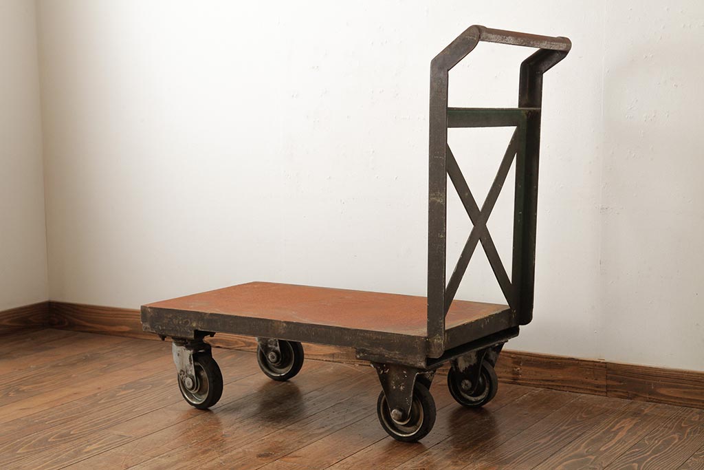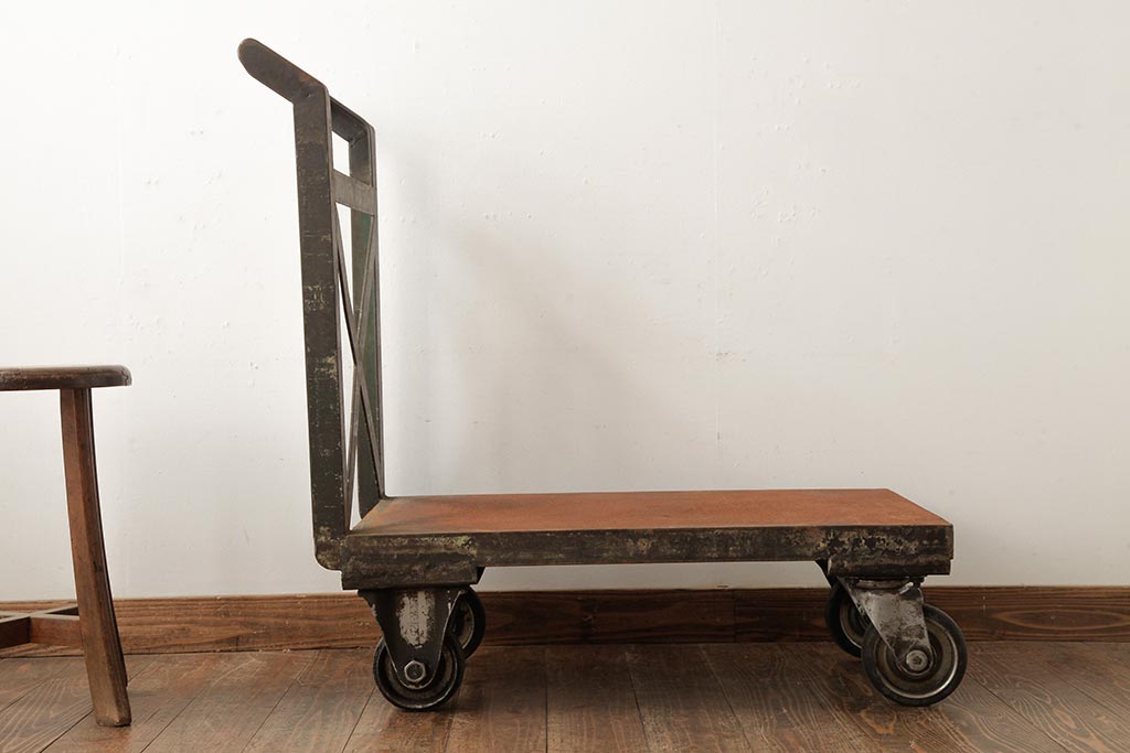 雑貨 > 和製ビンテージ 重厚感でインダストリアルな佇まいがおしゃれなアイアン製カート(台車、鉄製、ディスプレイ、ヴィンテージ)(R-039346)
