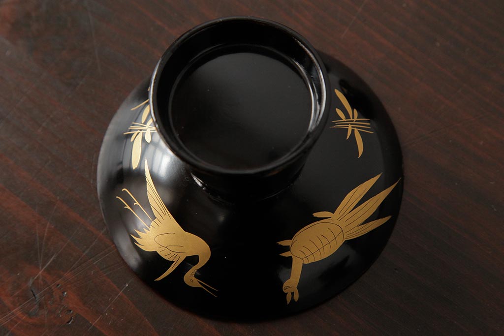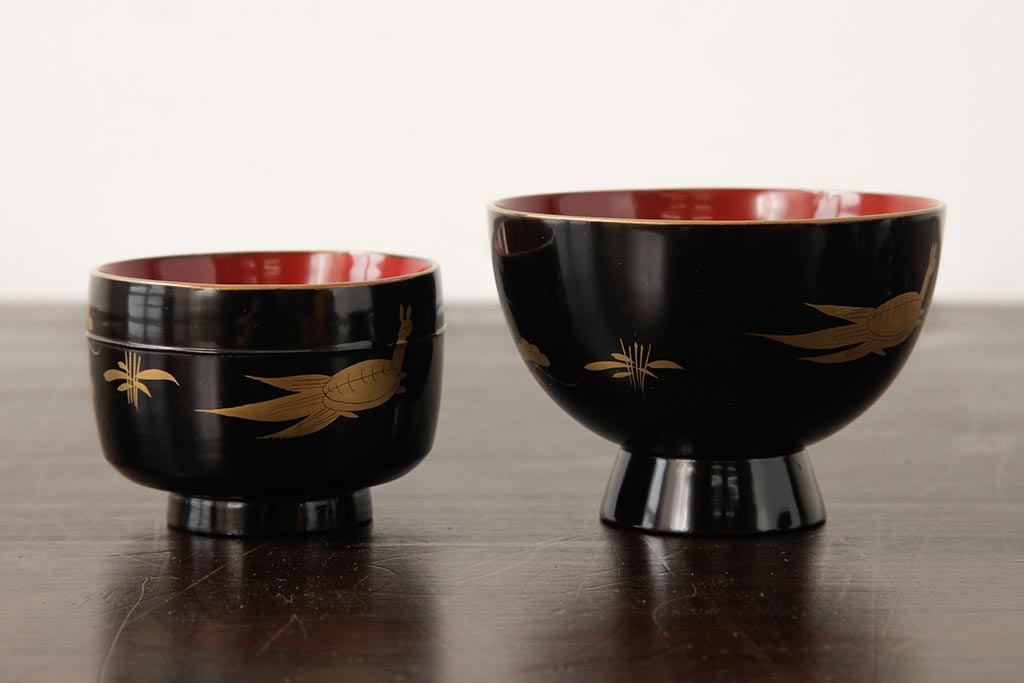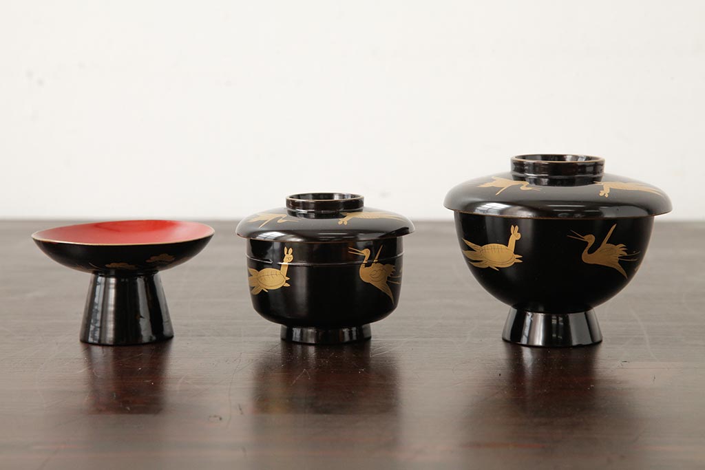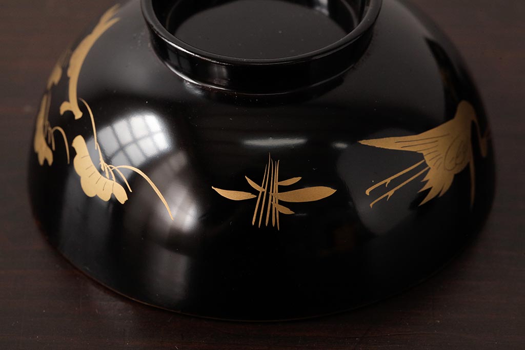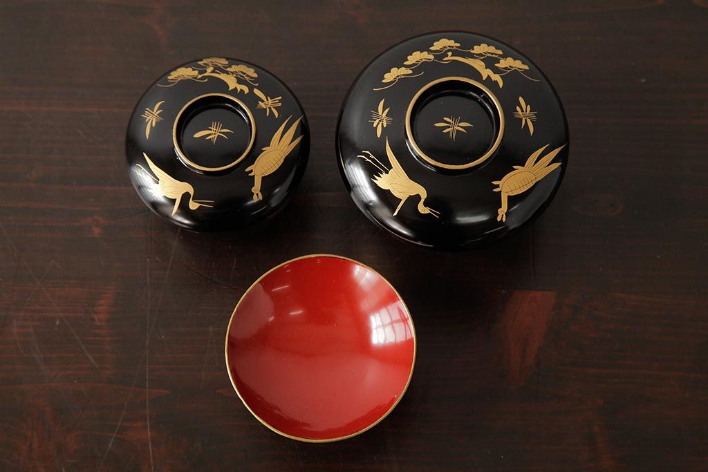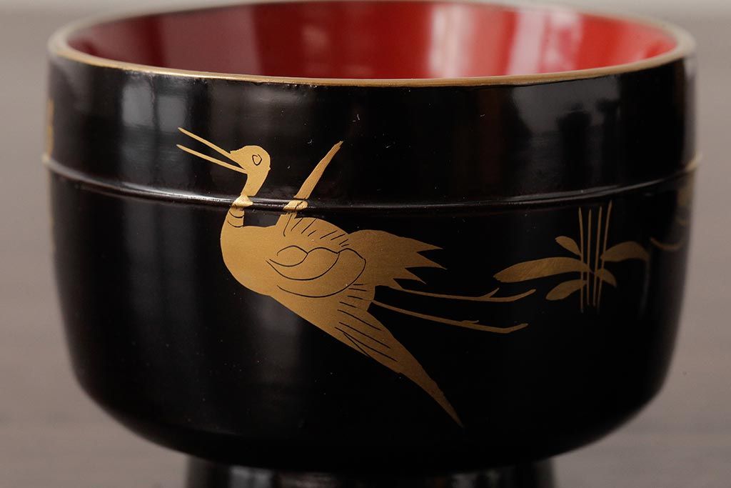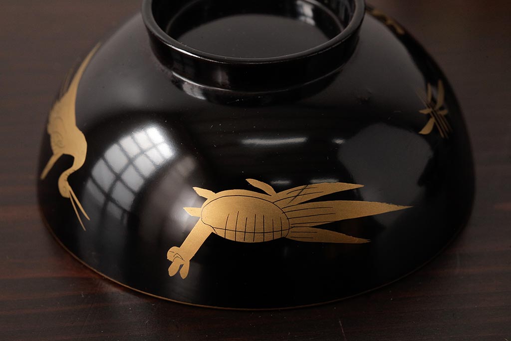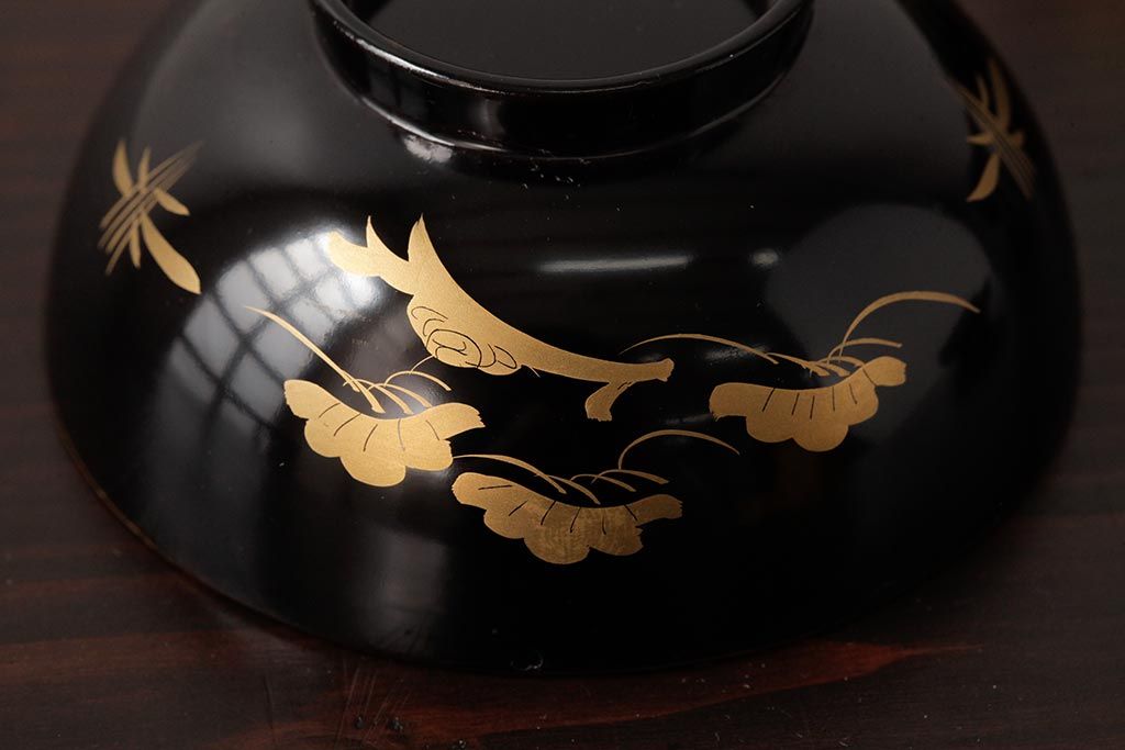 ラフジュ工房> 和食器・茶道具> お椀・茶碗 > 極上 本手家具師 田中屋常蔵 黒内朱 金蒔絵 鶴亀 松竹梅 木製 仏膳セット 漆器(R-039315)