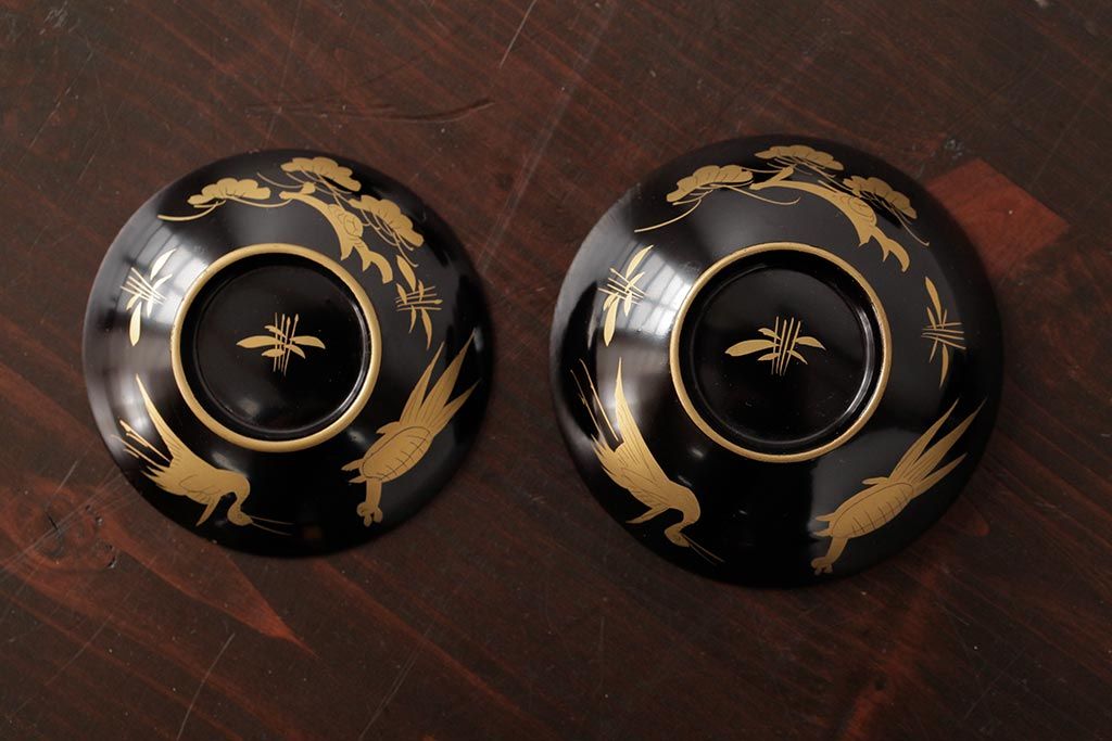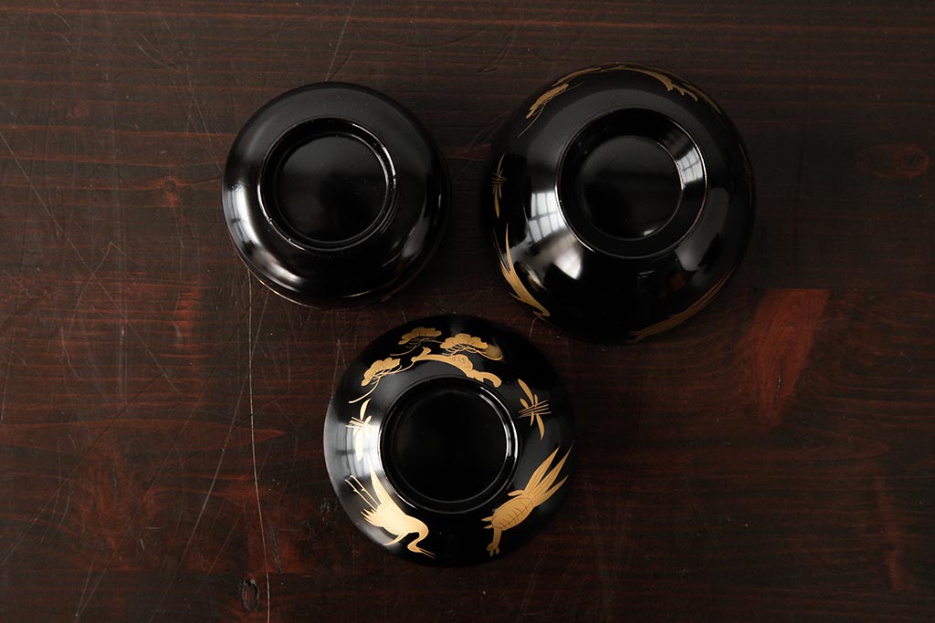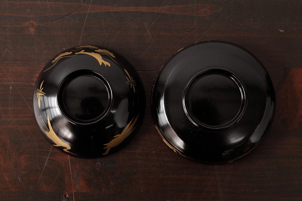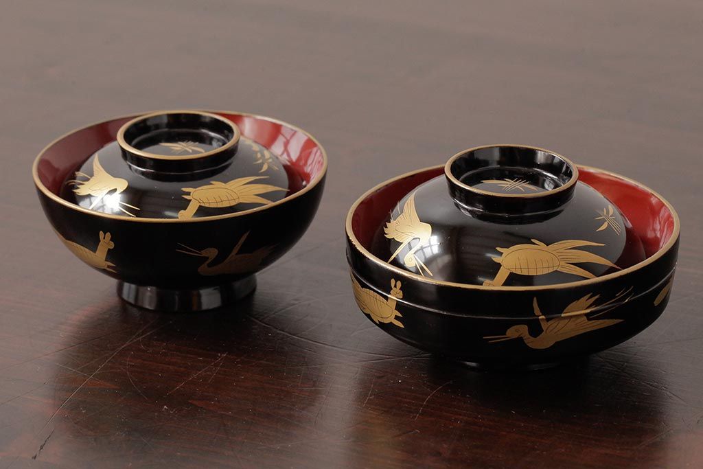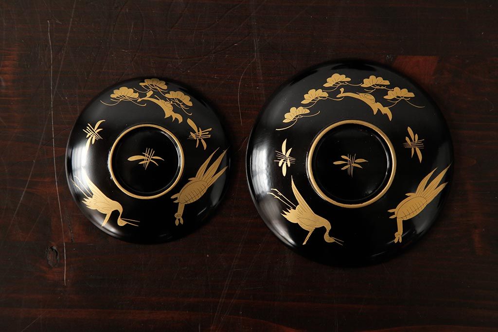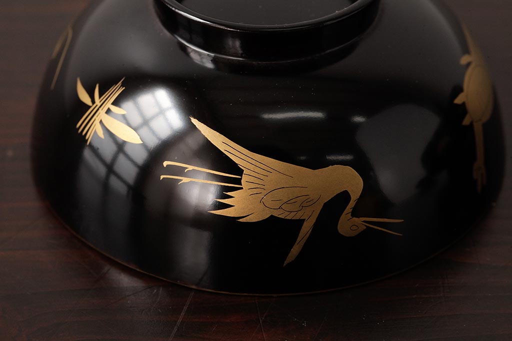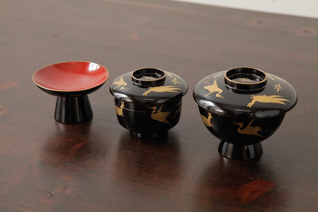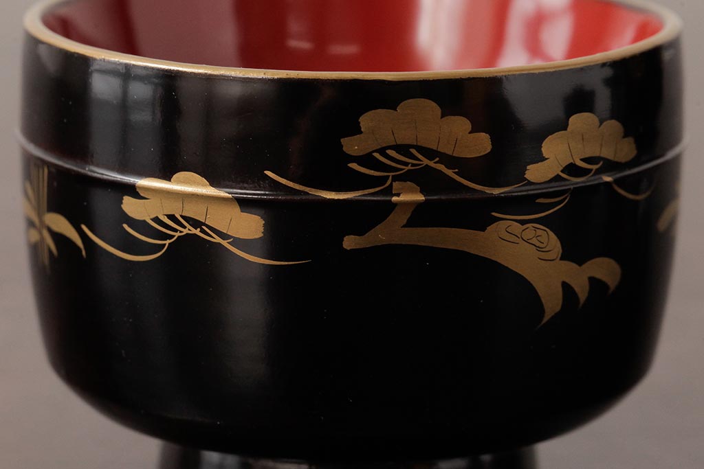 ラフジュ工房> 和食器・茶道具> お椀・茶碗 > 極上 本手家具師 田中屋常蔵 黒内朱 金蒔絵 鶴亀 松竹梅 木製 仏膳セット 漆器(R-039315)