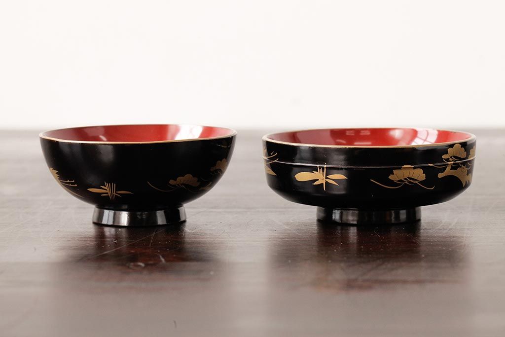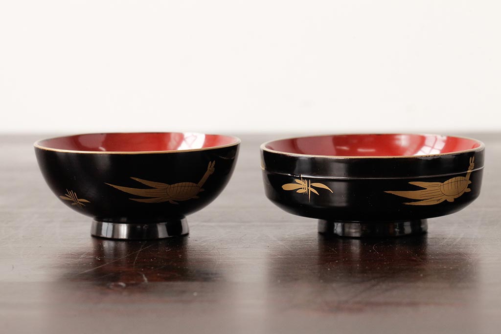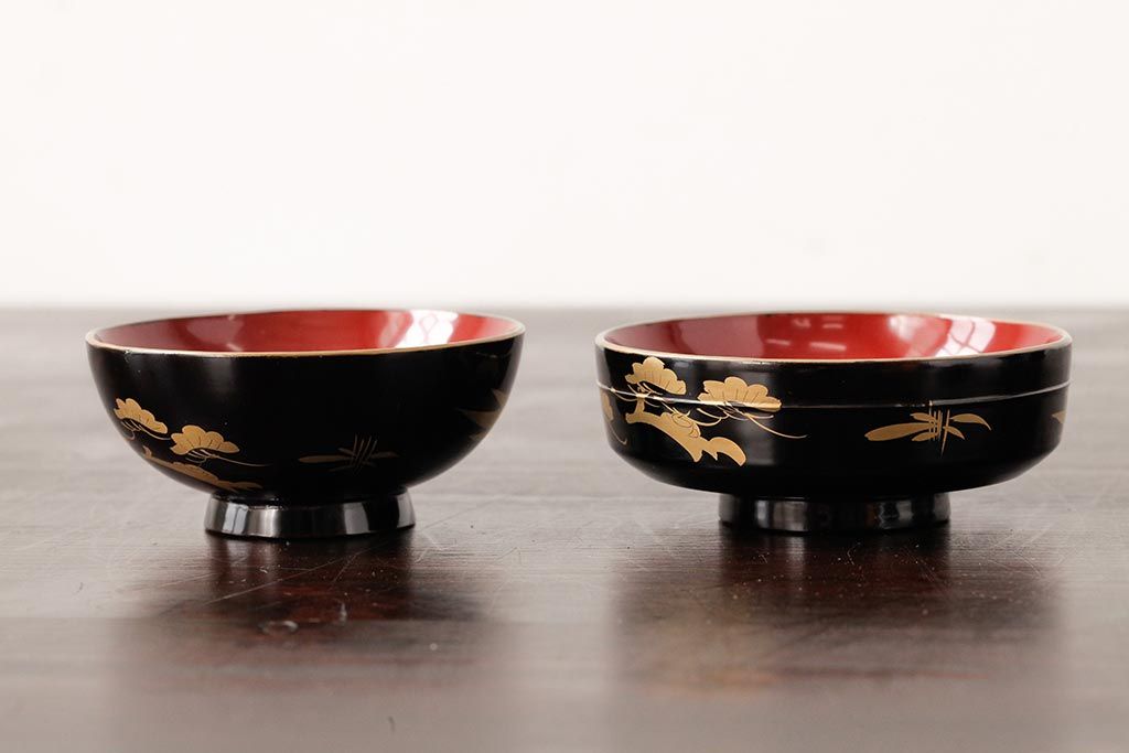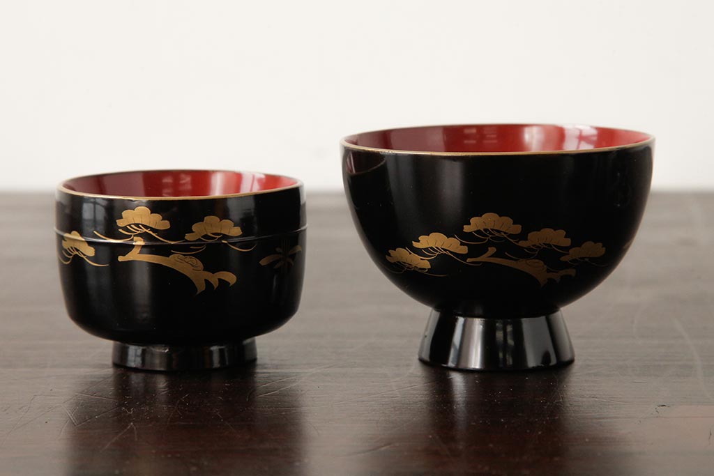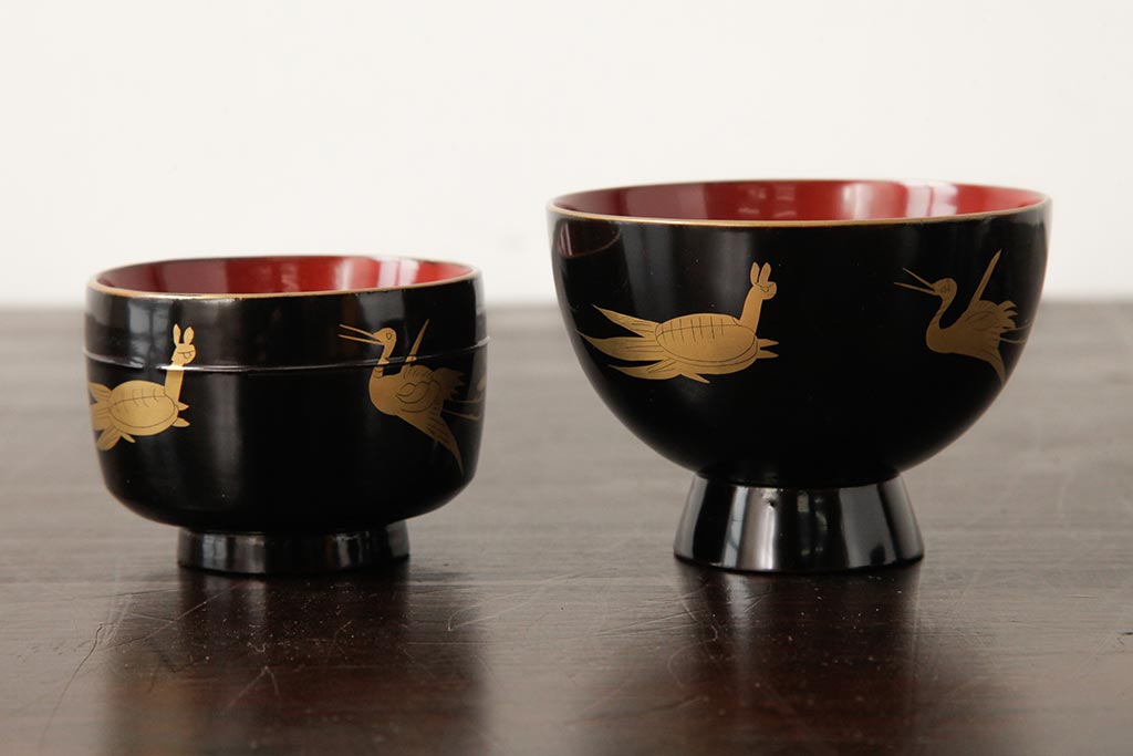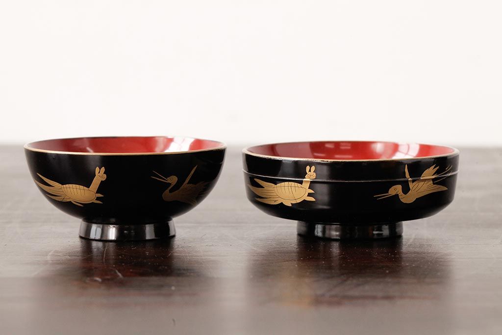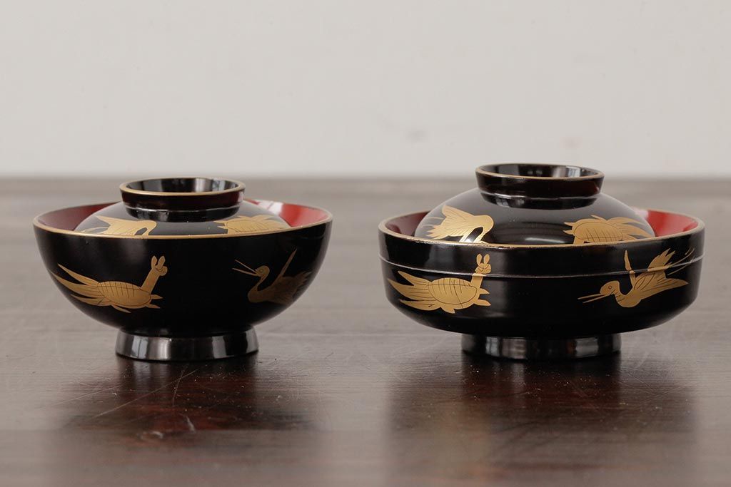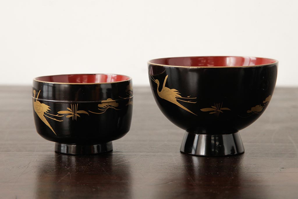 ラフジュ工房> 和食器・茶道具> お椀・茶碗 > 極上 本手家具師 田中屋常蔵 黒内朱 金蒔絵 鶴亀 松竹梅 木製 仏膳セット 漆器(R-039315)