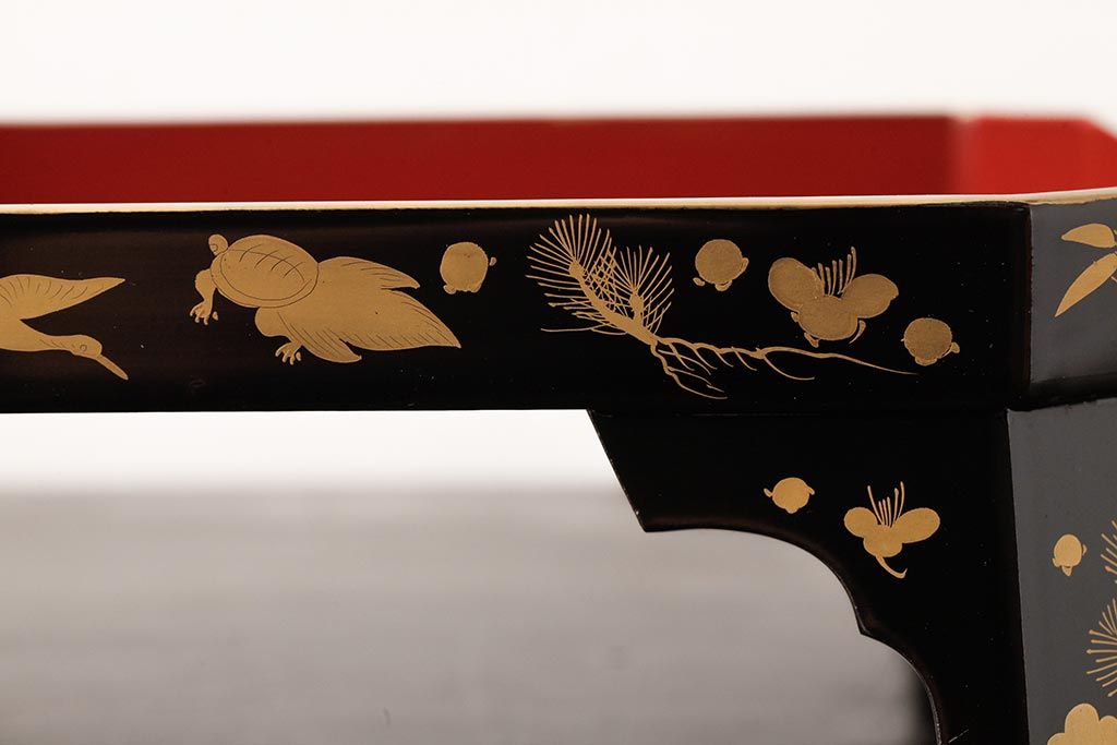 極上 本手家具師 田中屋常蔵 黒内朱 金蒔絵 鶴亀 松竹梅 木製 仏膳セット 漆器(R-039315)