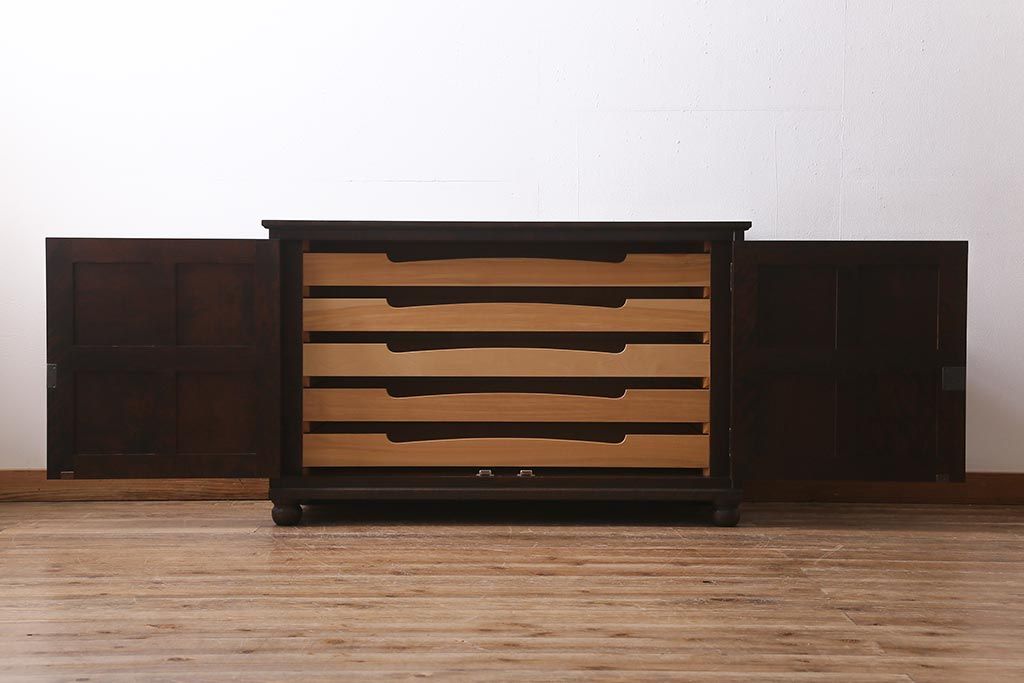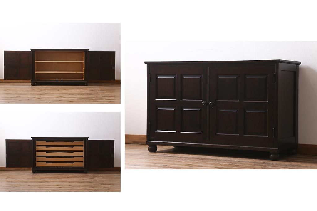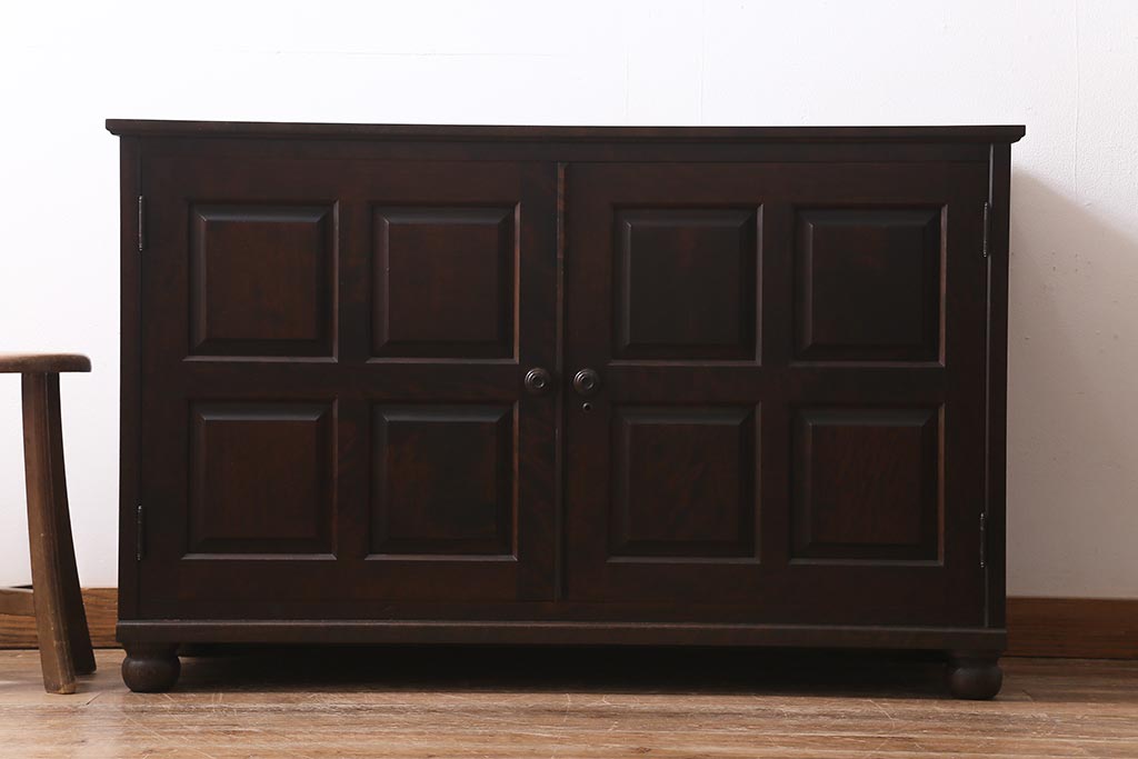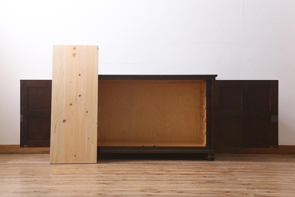 中古 北海道民芸家具 リメイク シックな印象のローボード(収納棚、リビングボード、テレビ台、テレビボード)(R-039289)