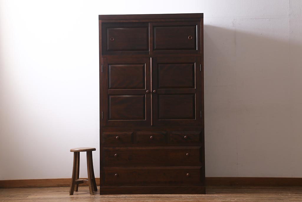 中古 松本民芸家具 着物も洋服も収納できるD型和タンス(箪笥、チェスト)(定価約54万円)(R-039303)