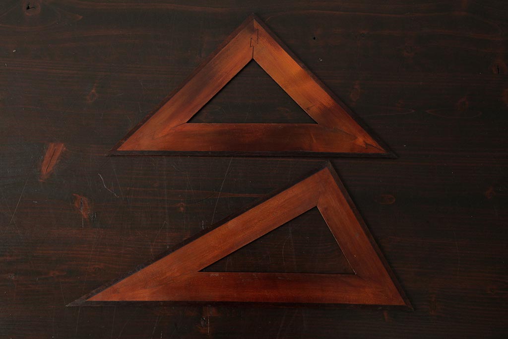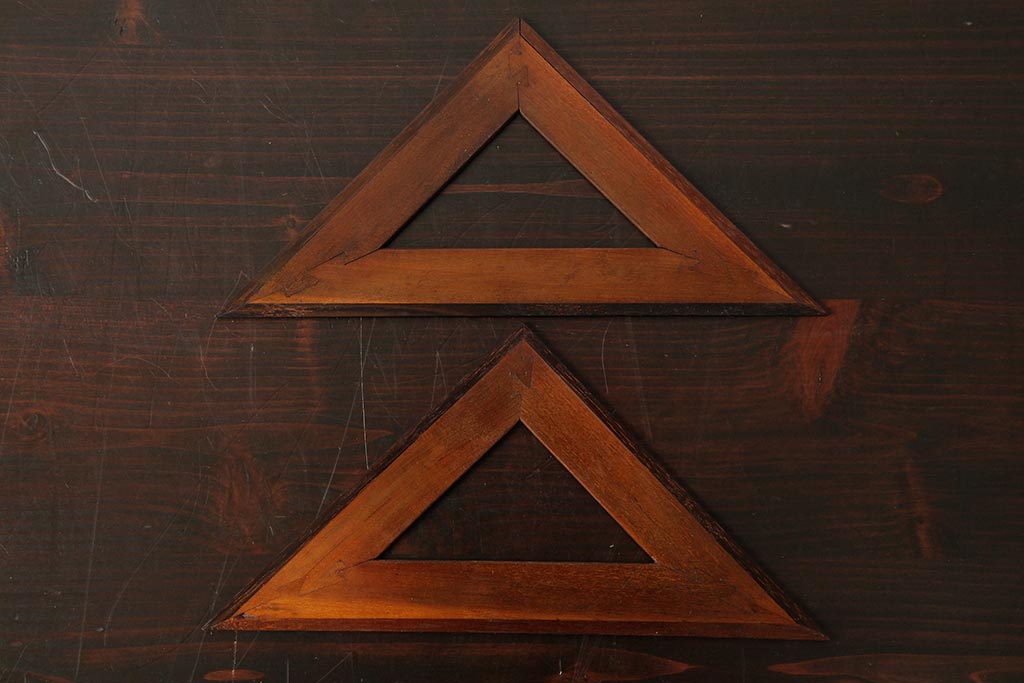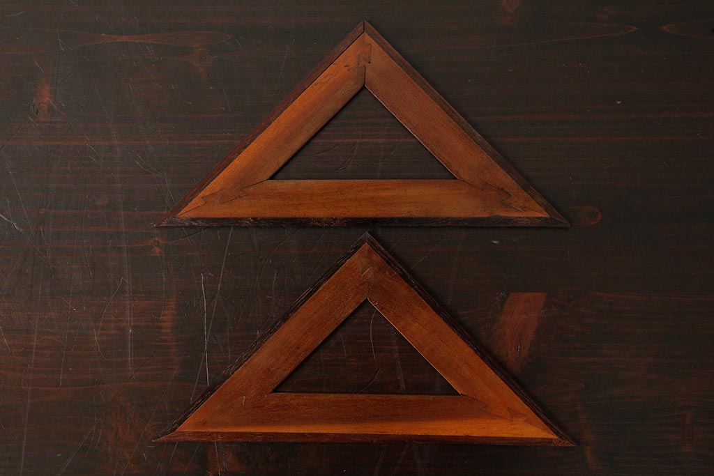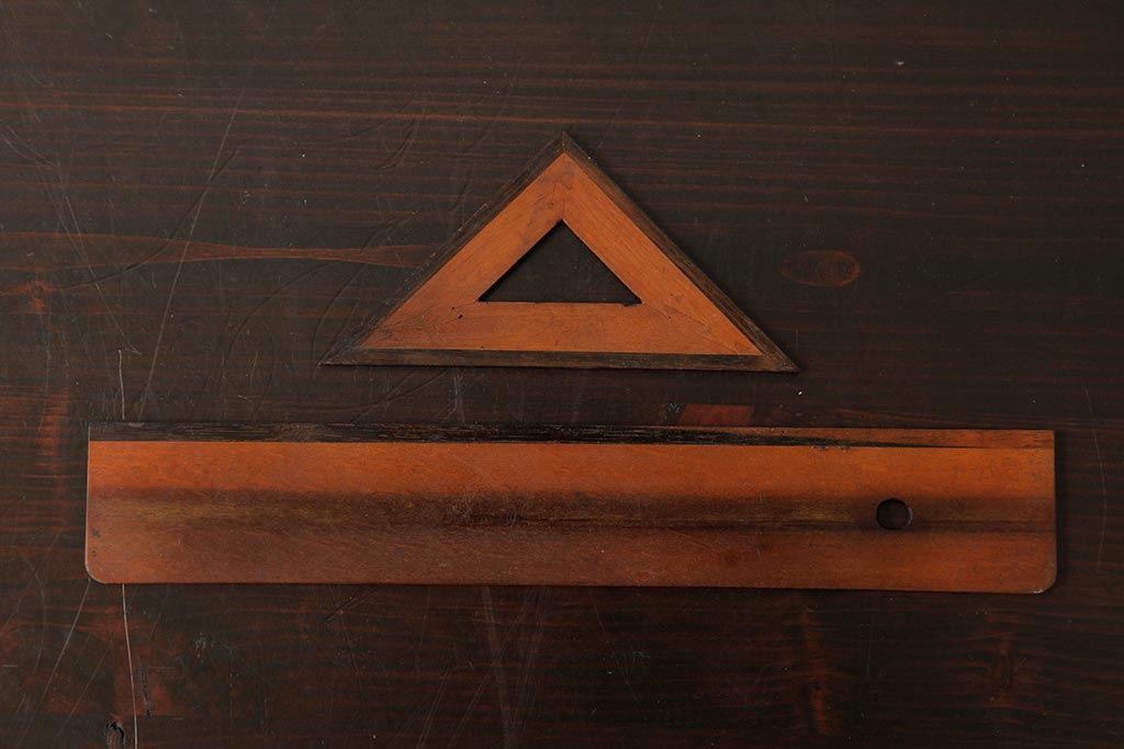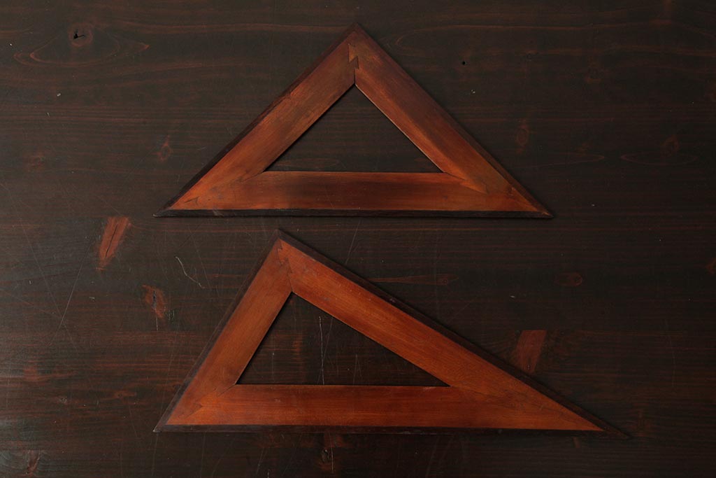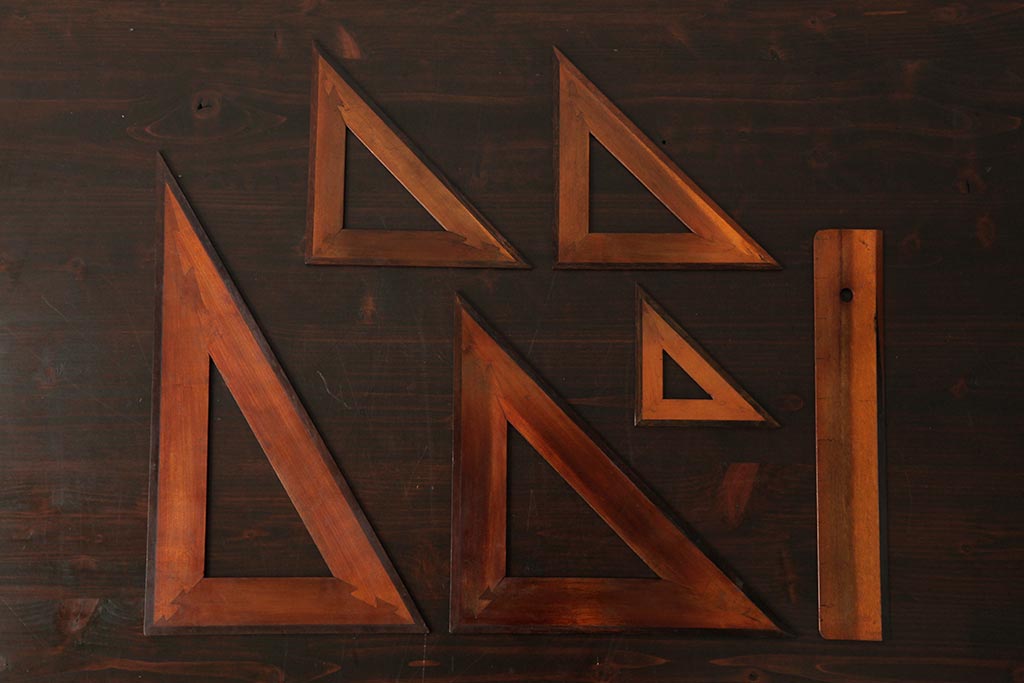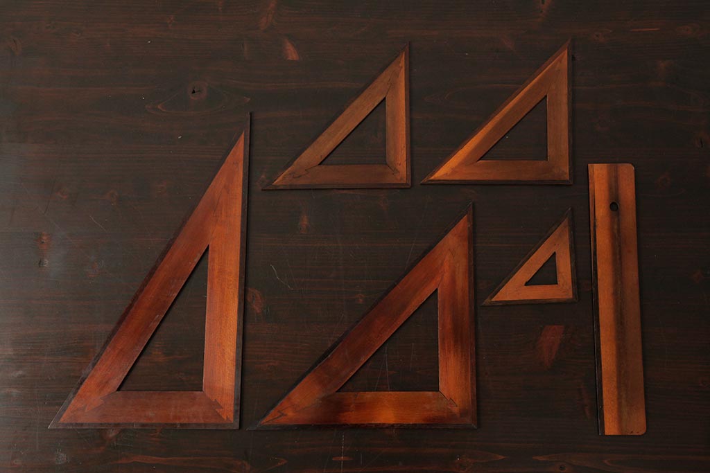 雑貨> オブジェ > アンティーク雑貨 昭和レトロ レア 木の風合いが楽しめる大きなサイズの三角定規6点セット(ディスプレイ雑貨)(R-039313)