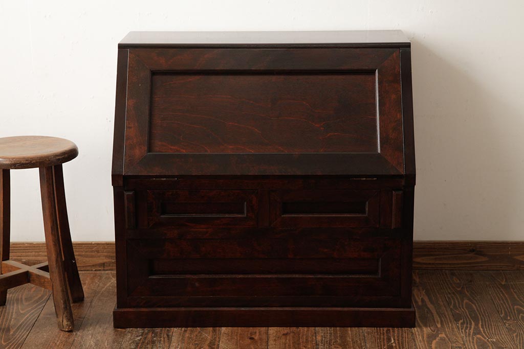 ビンテージ家具 松本民芸家具 シックな空間作りにおすすめの高山式座ライティングビューロー(簿記机、デスク)(定価約24万5千円)(R-039389)です。