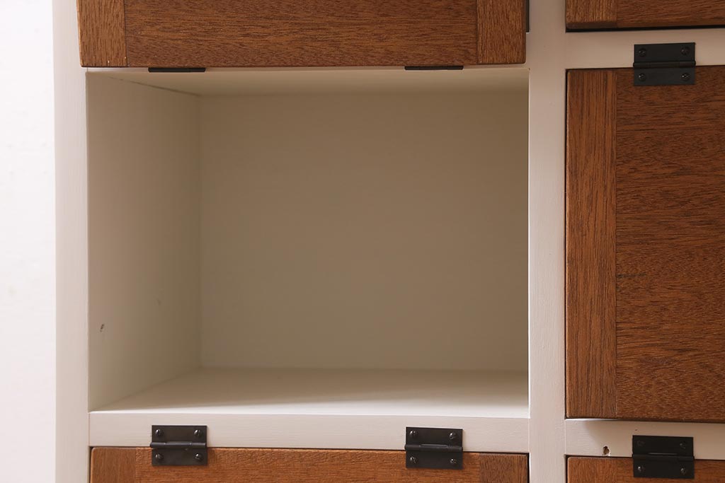 ワードローブ・ロッカー > ラフジュ工房オリジナル 3×3マス 古材リメイク ペイント ヒノキ無垢材・ラワン古材 可愛らしいカラーのパタパタ扉付きマス目棚(収納棚、ロッカー、下駄箱)(R-039408)
