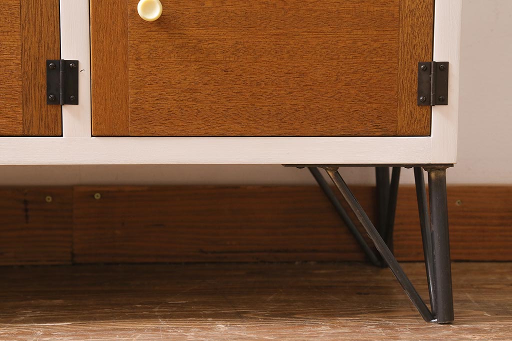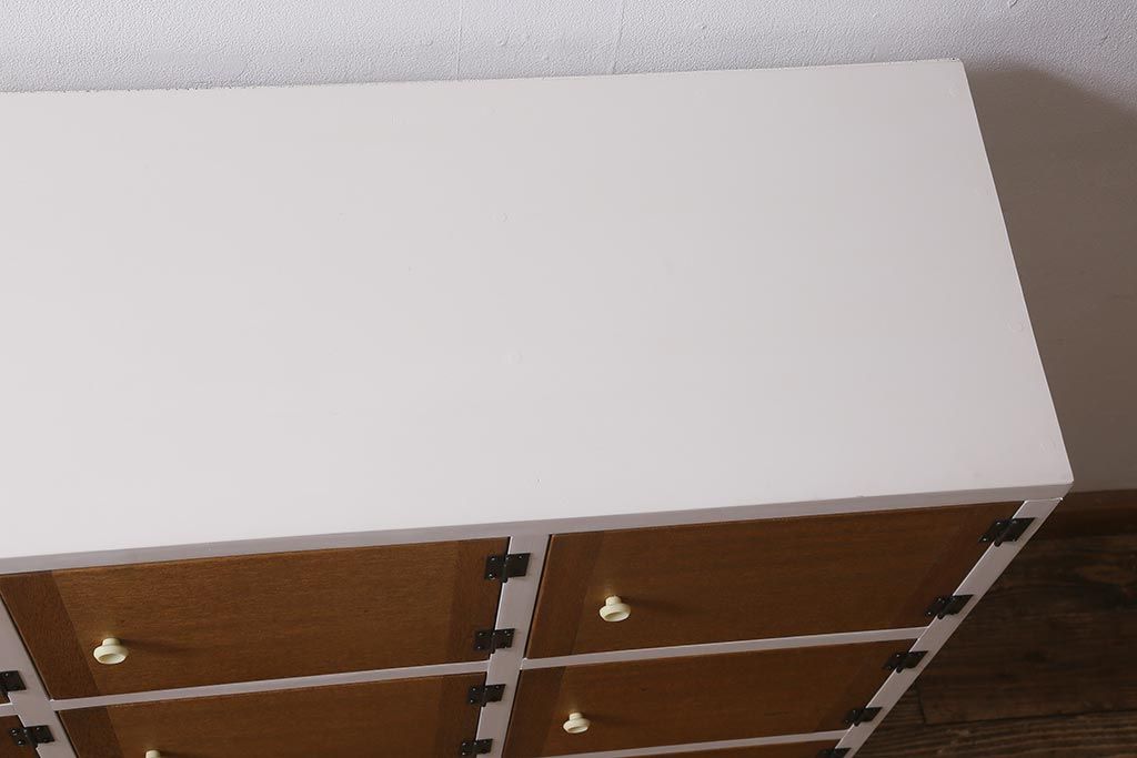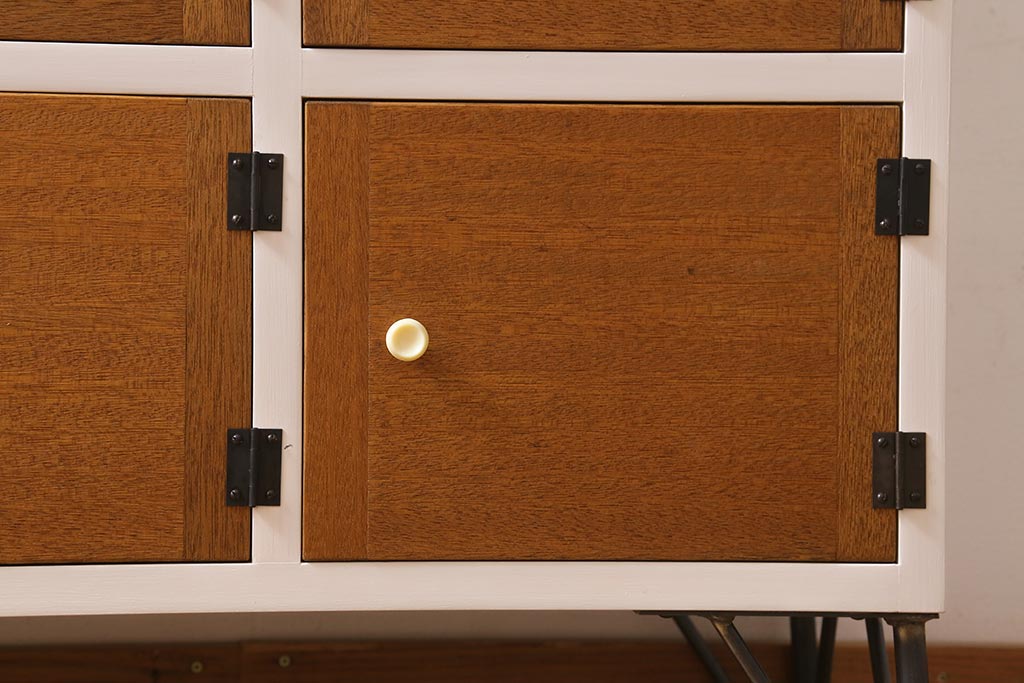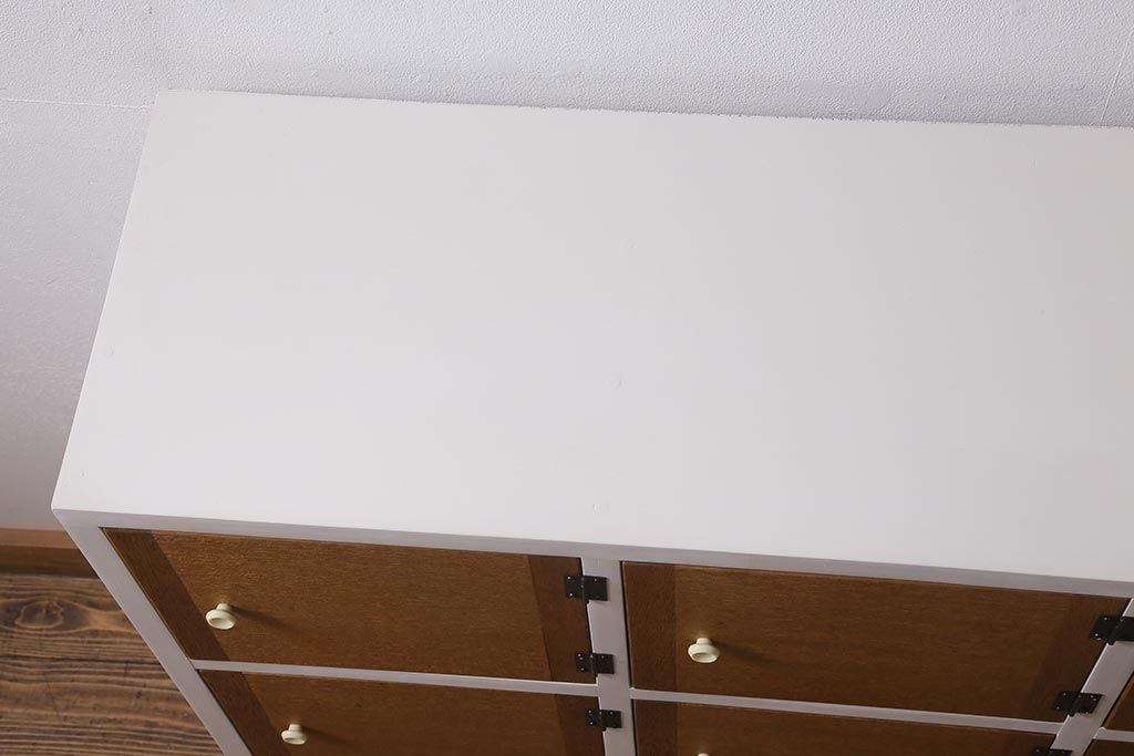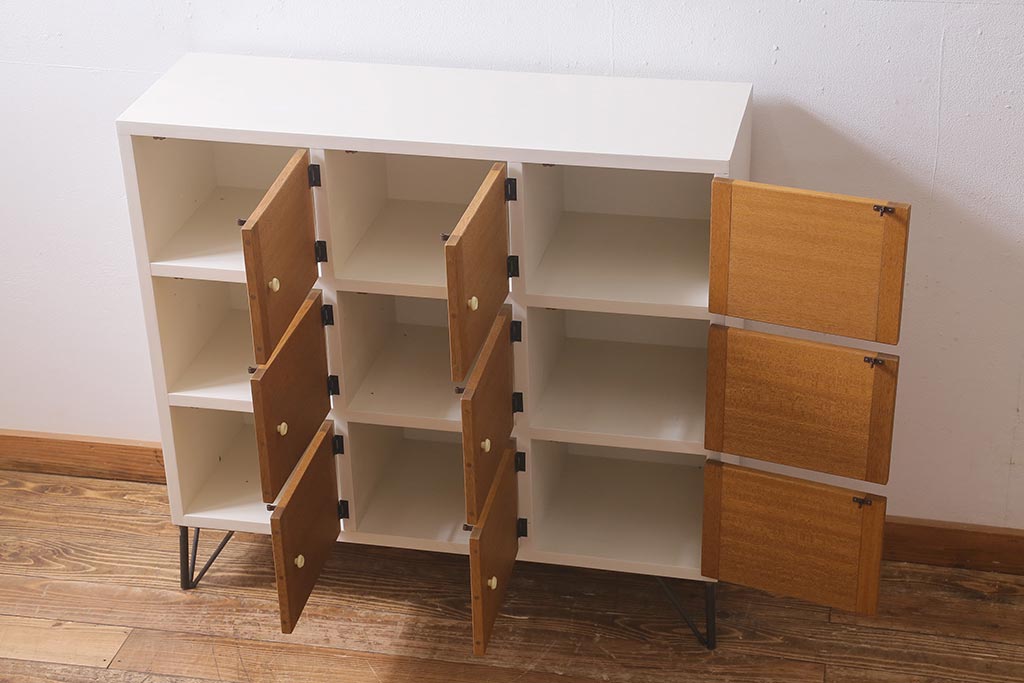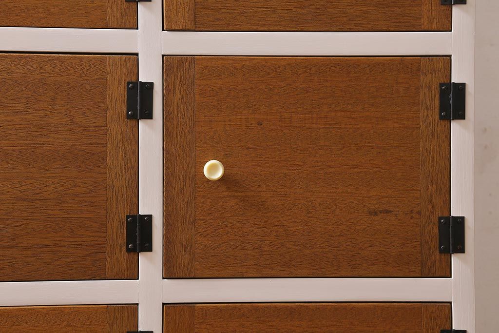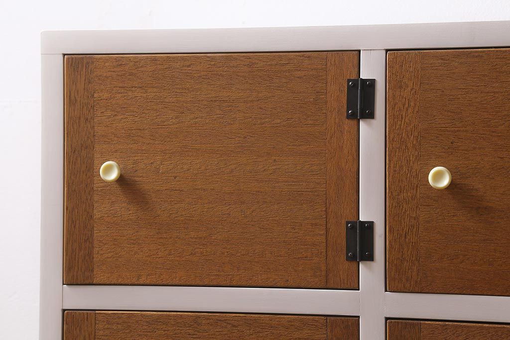 ワードローブ・ロッカー > ラフジュ工房オリジナル 3×3マス 古材リメイク ヒノキ無垢材・ラワン古材 メンズライクにも似合う鉄脚付きのペイントマス目棚・右開き(収納棚、ロッカー、下駄箱)(R-039407)