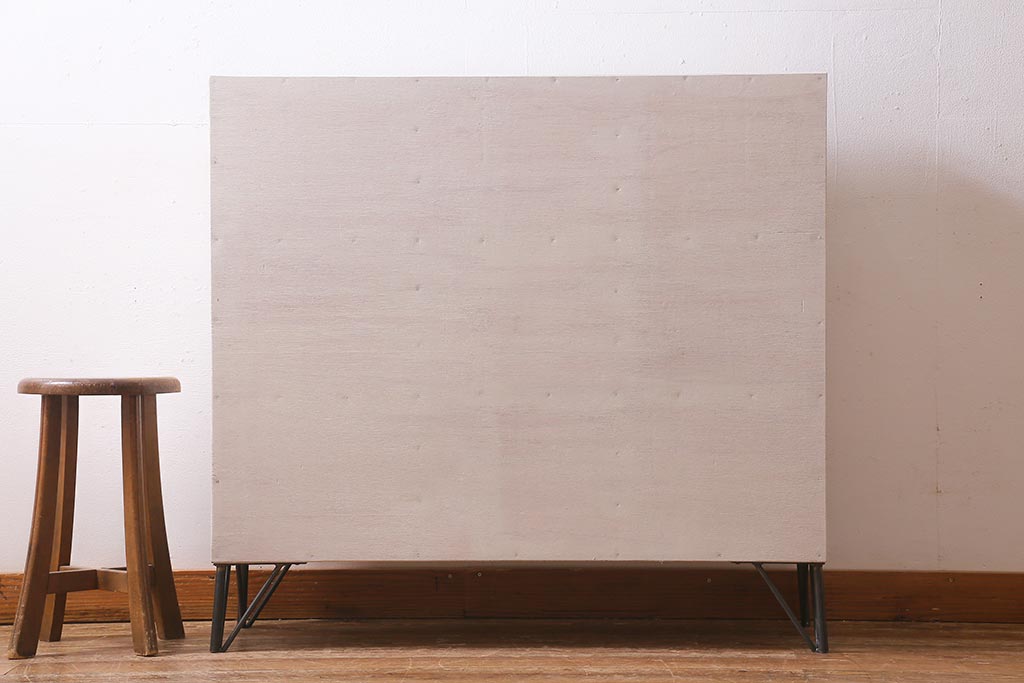 ラフジュ工房オリジナル 3×3マス 古材リメイク ヒノキ無垢材・ラワン古材 メンズライクにも似合う鉄脚付きのペイントマス目棚・右開き(収納棚、ロッカー、下駄箱)(R-039407)