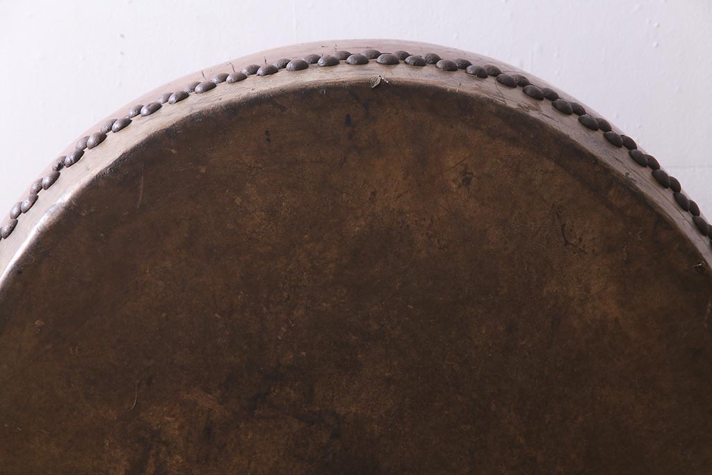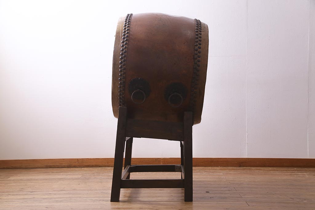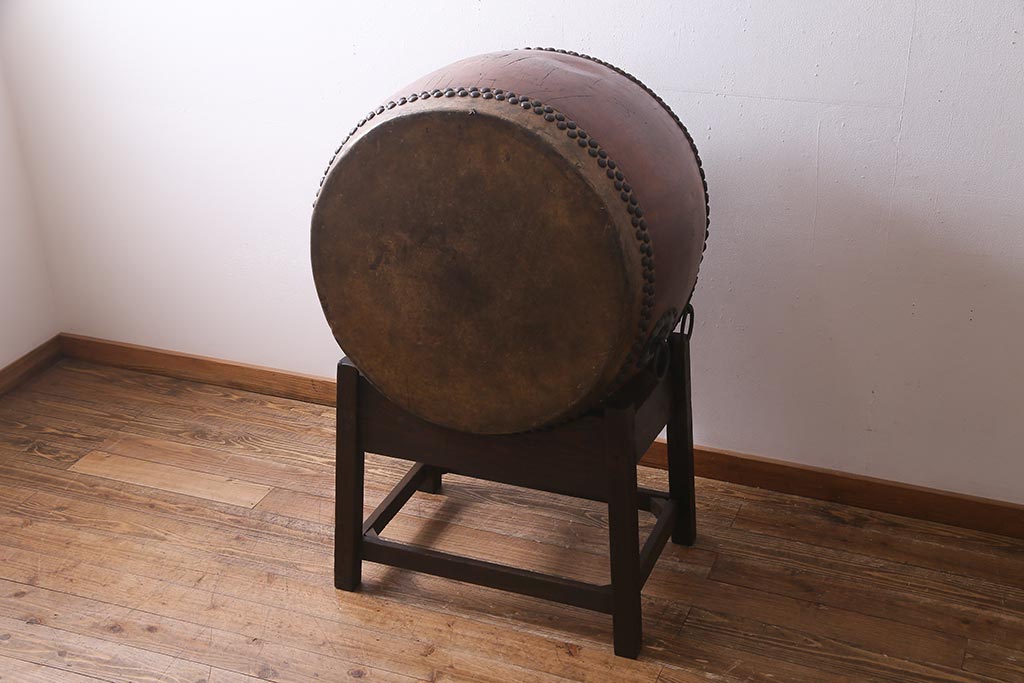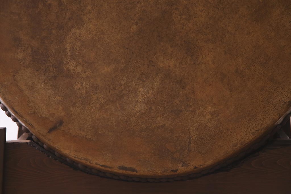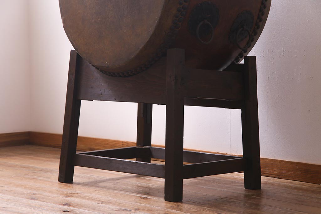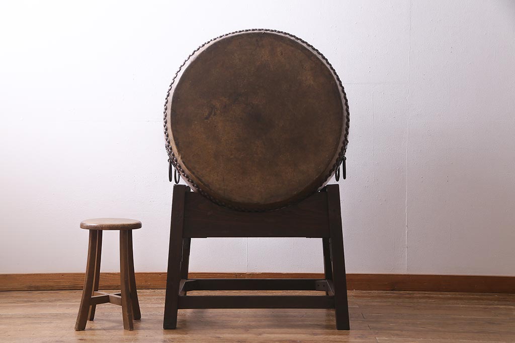 和楽器 2尺4寸 欅(ケヤキ) 古い刳り貫き太鼓・太鼓台付き(くり貫き太鼓、和太鼓)(R-038269)