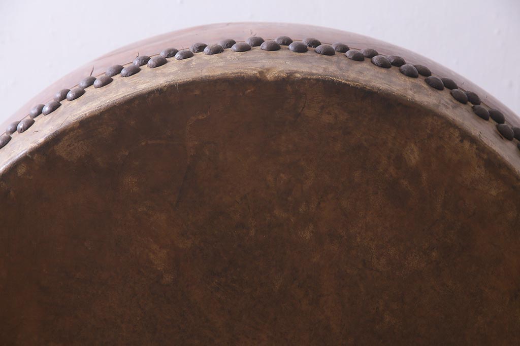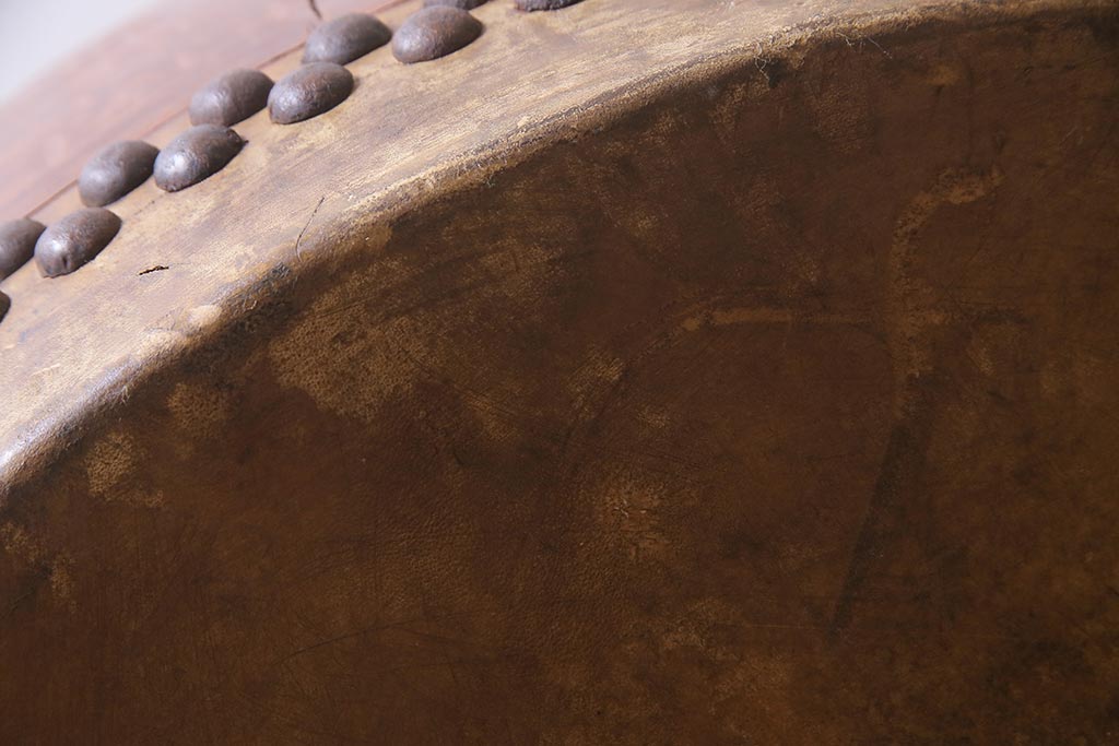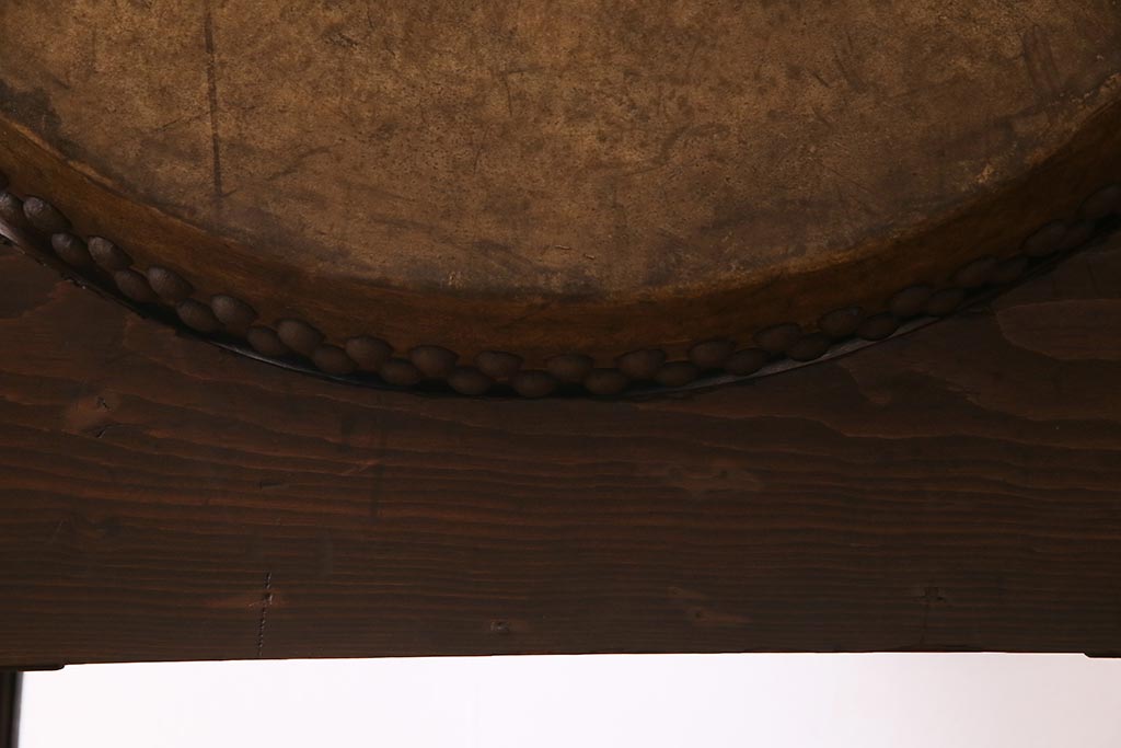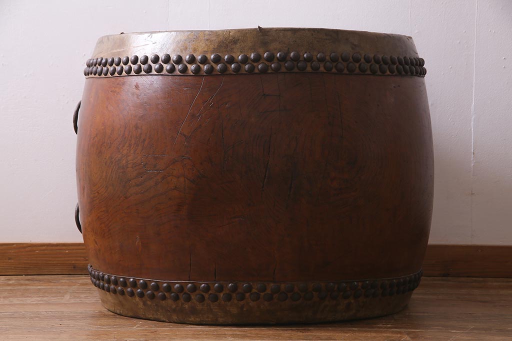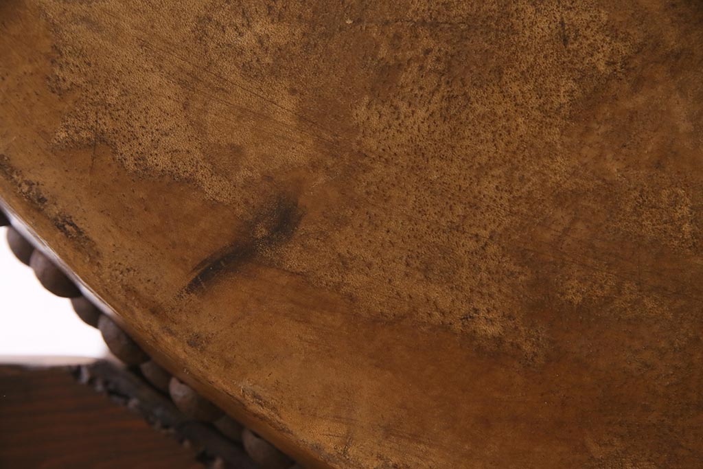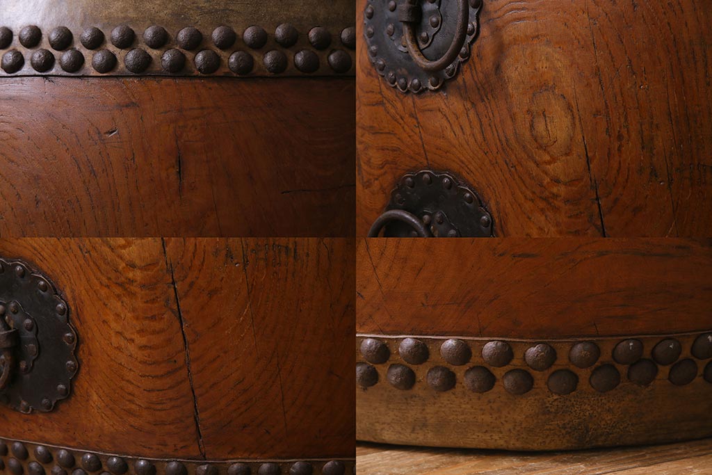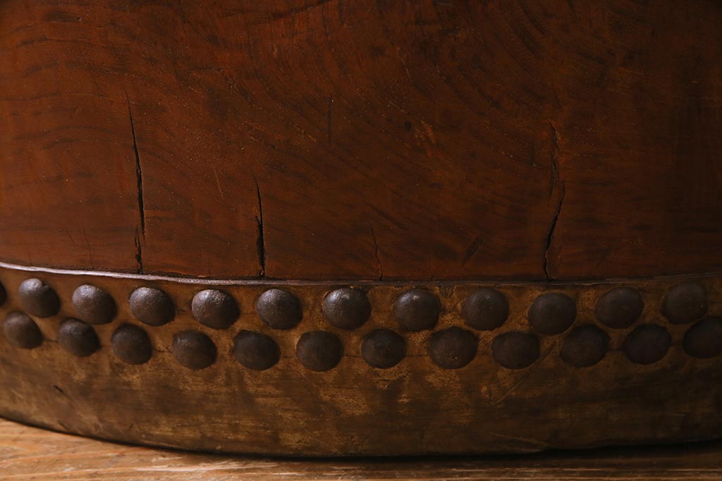 骨董・美術品> 和楽器 > 和楽器 2尺4寸 欅(ケヤキ) 古い刳り貫き太鼓・太鼓台付き(くり貫き太鼓、和太鼓)(R-038269)