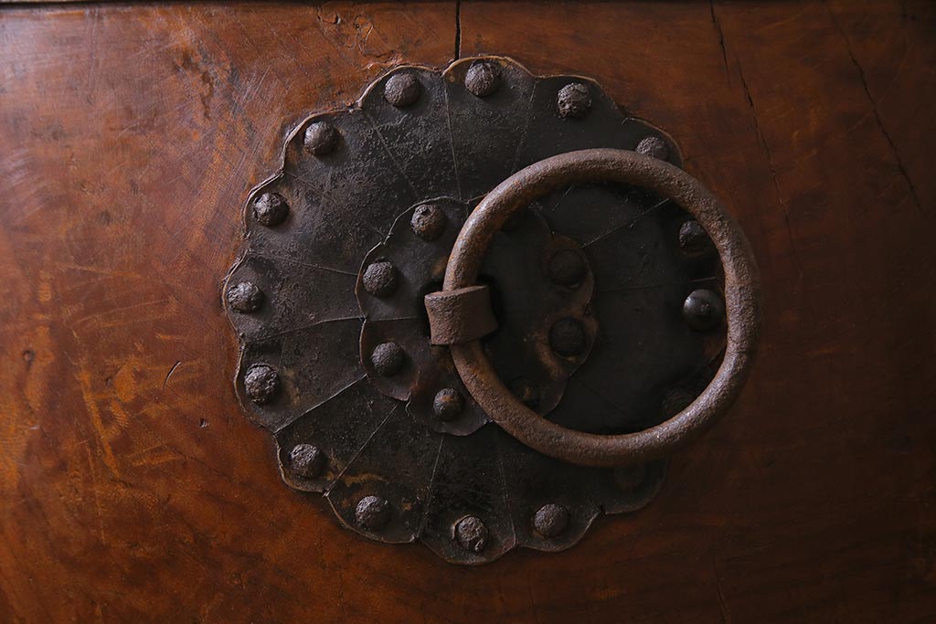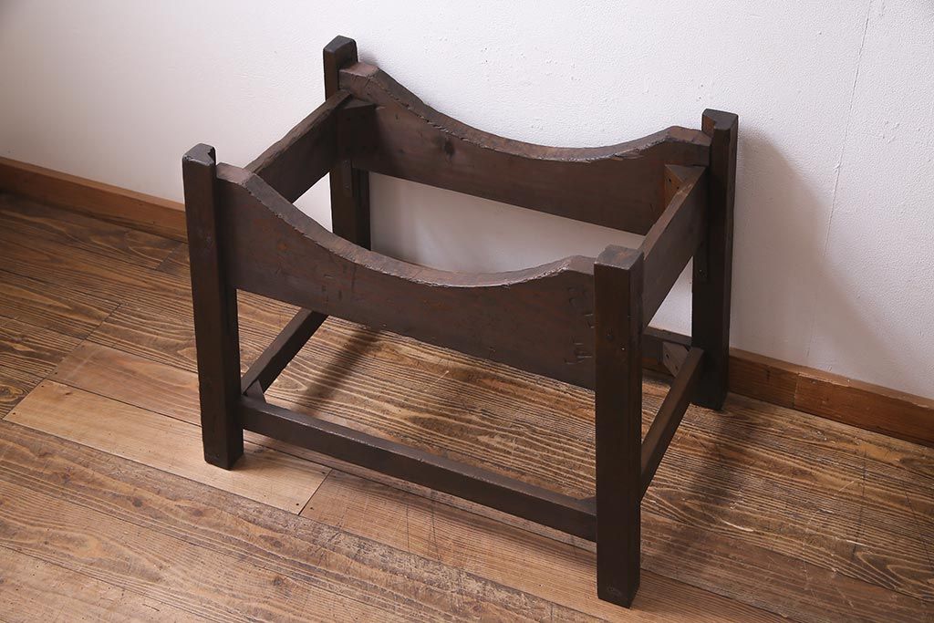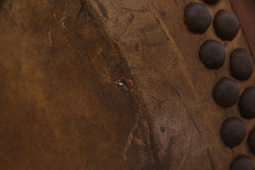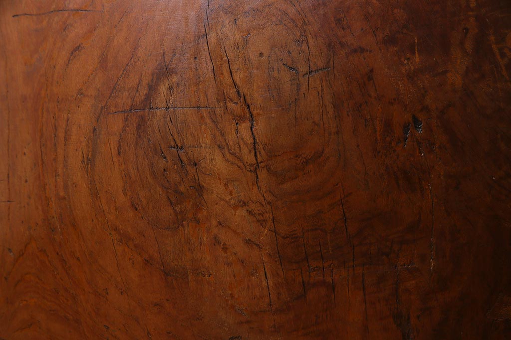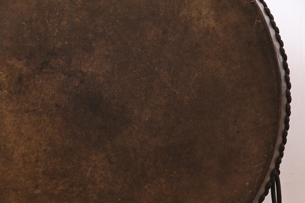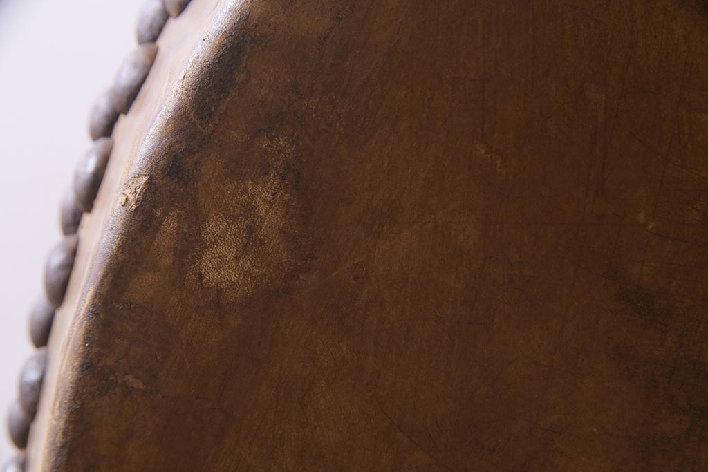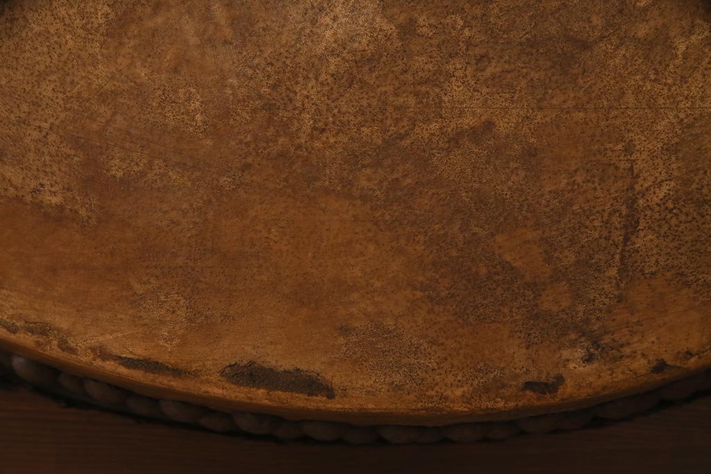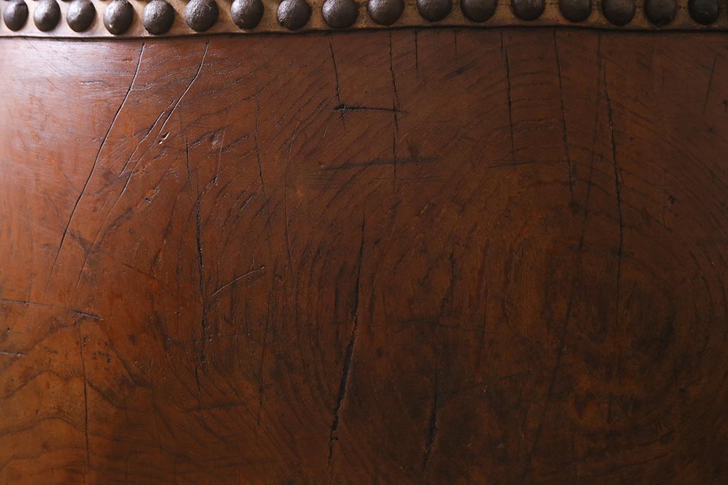 骨董・美術品> 和楽器 > 和楽器 2尺4寸 欅(ケヤキ) 古い刳り貫き太鼓・太鼓台付き(くり貫き太鼓、和太鼓)(R-038269)