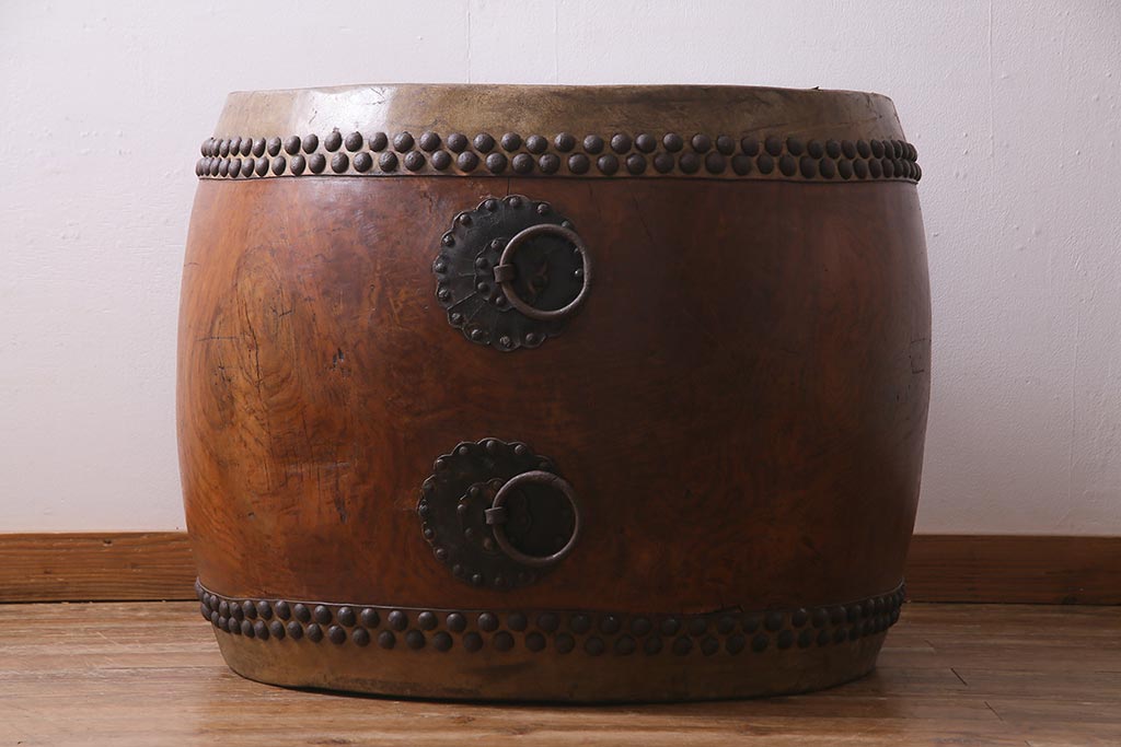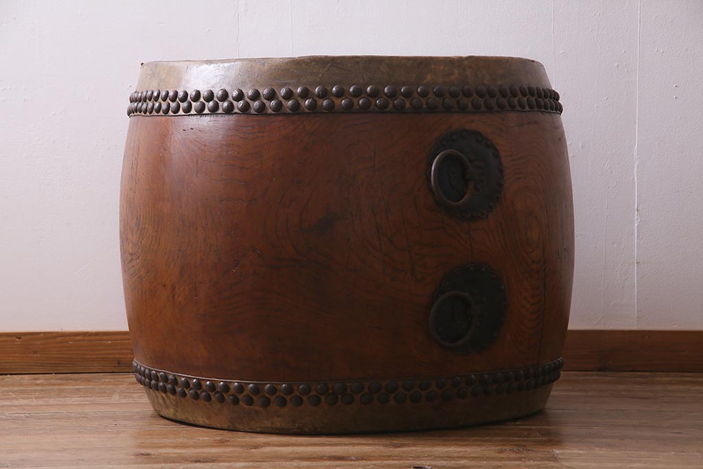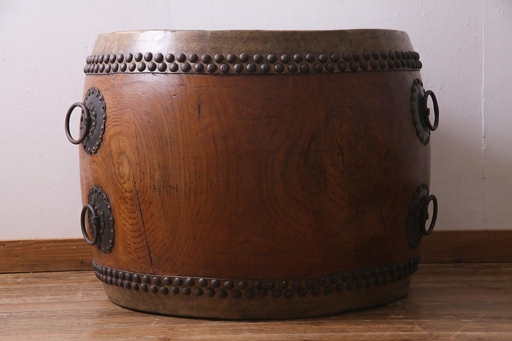 骨董・美術品 > 和楽器 2尺4寸 欅(ケヤキ) 古い刳り貫き太鼓・太鼓台付き(くり貫き太鼓、和太鼓)(R-038269)
