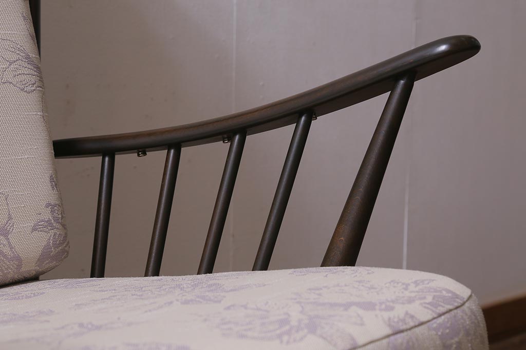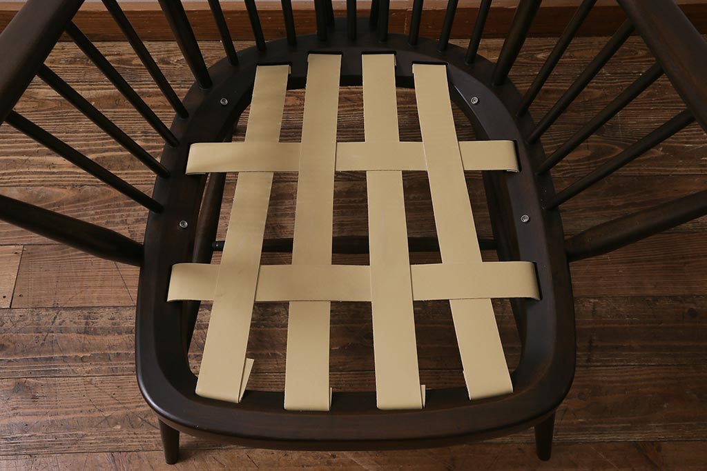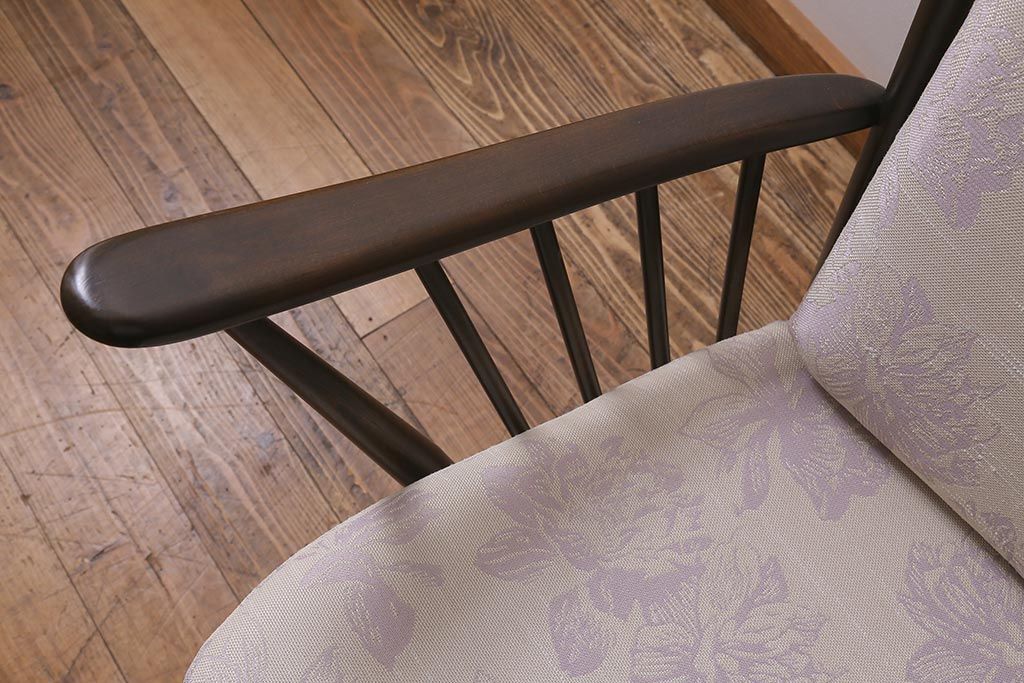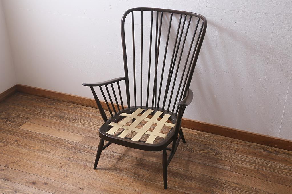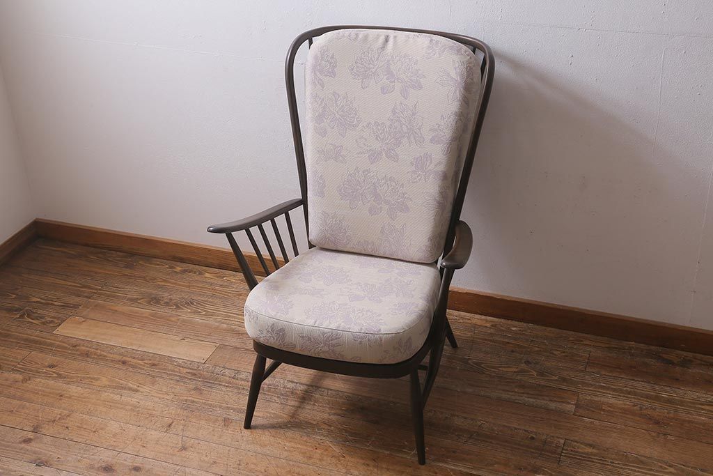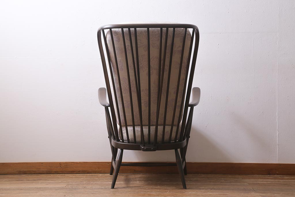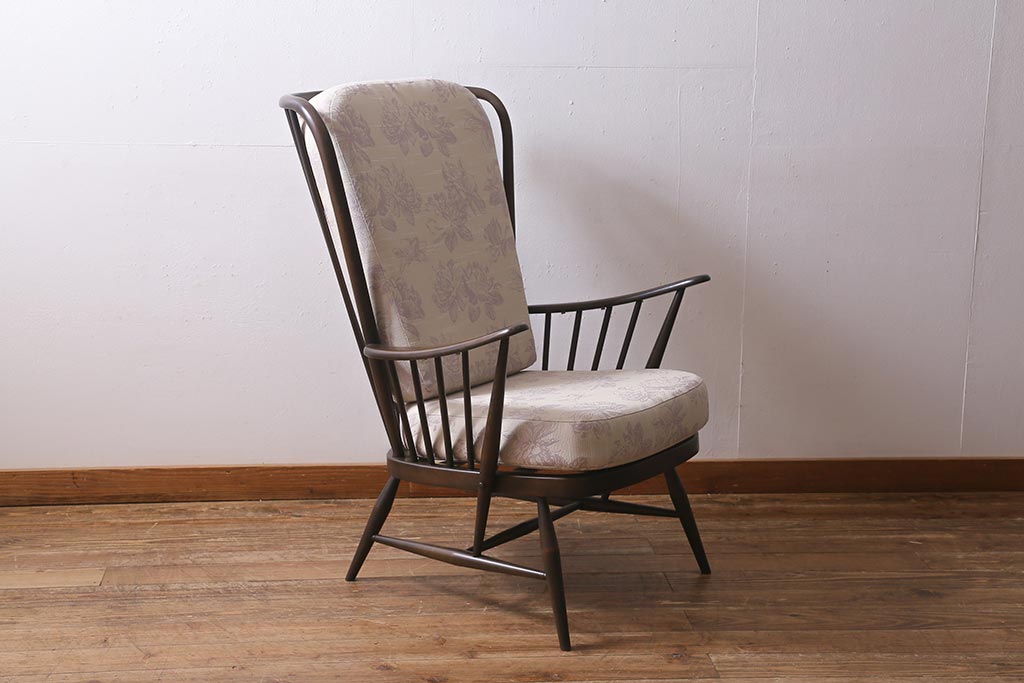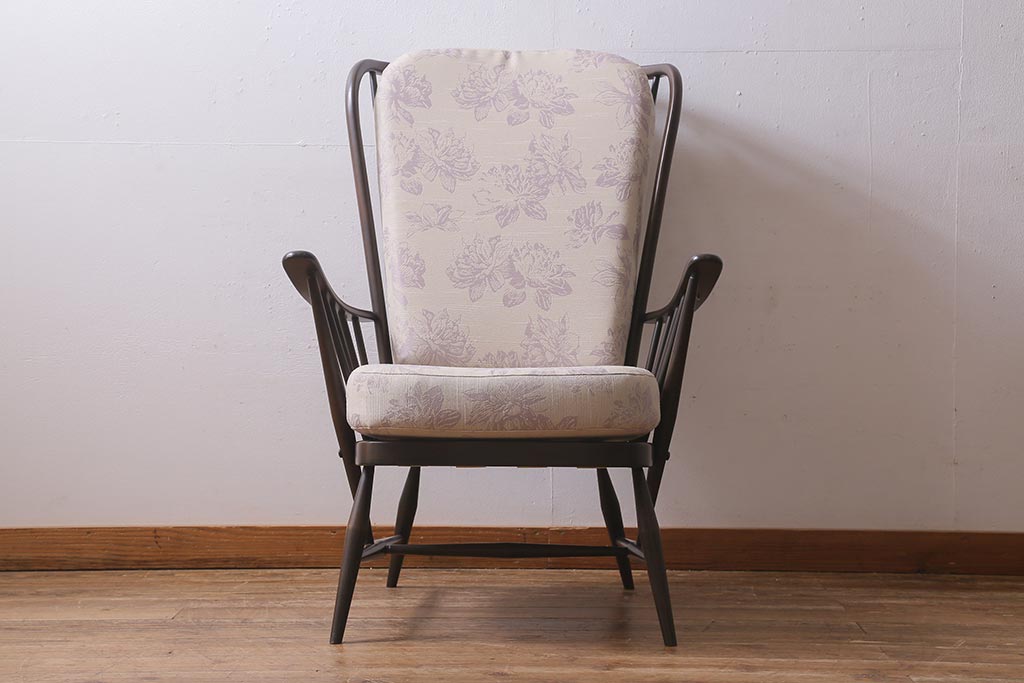 ヴィンテージ家具 ERCOL(アーコール) エバーグリーン エレガントな雰囲気漂う1人掛けイージーチェア(ラウンジチェア、アームチェア、椅子、ソファ、ビンテージ)(定価約29万円)(R-039434)