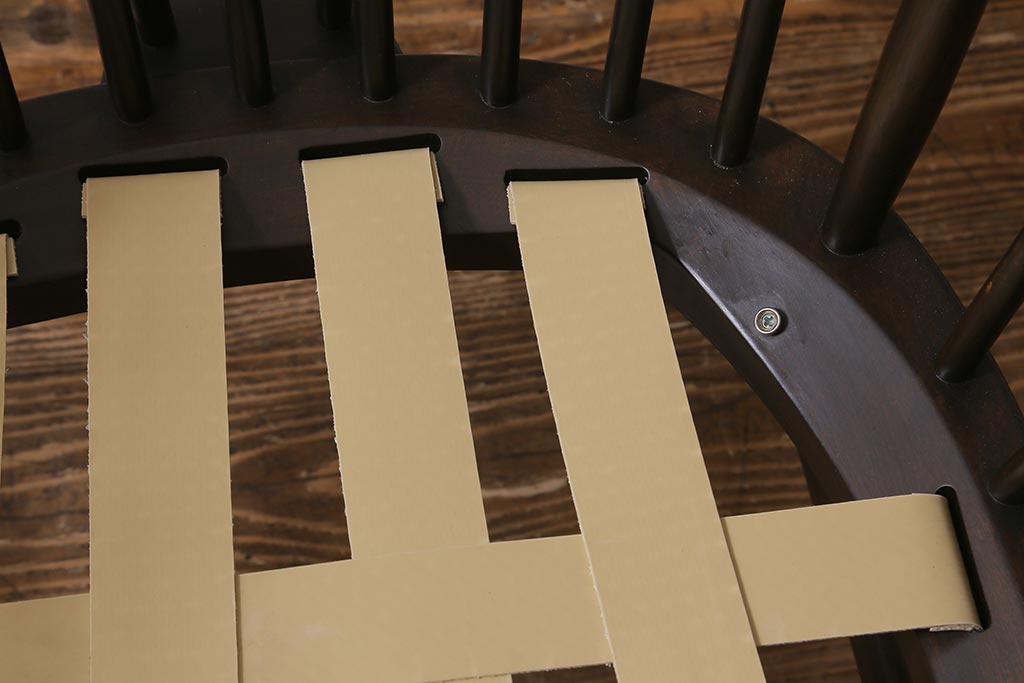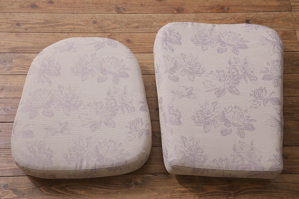 座面生地とクッション(座面内スポンジ)は当店にて張り替えておりますので、しっかりとしております。