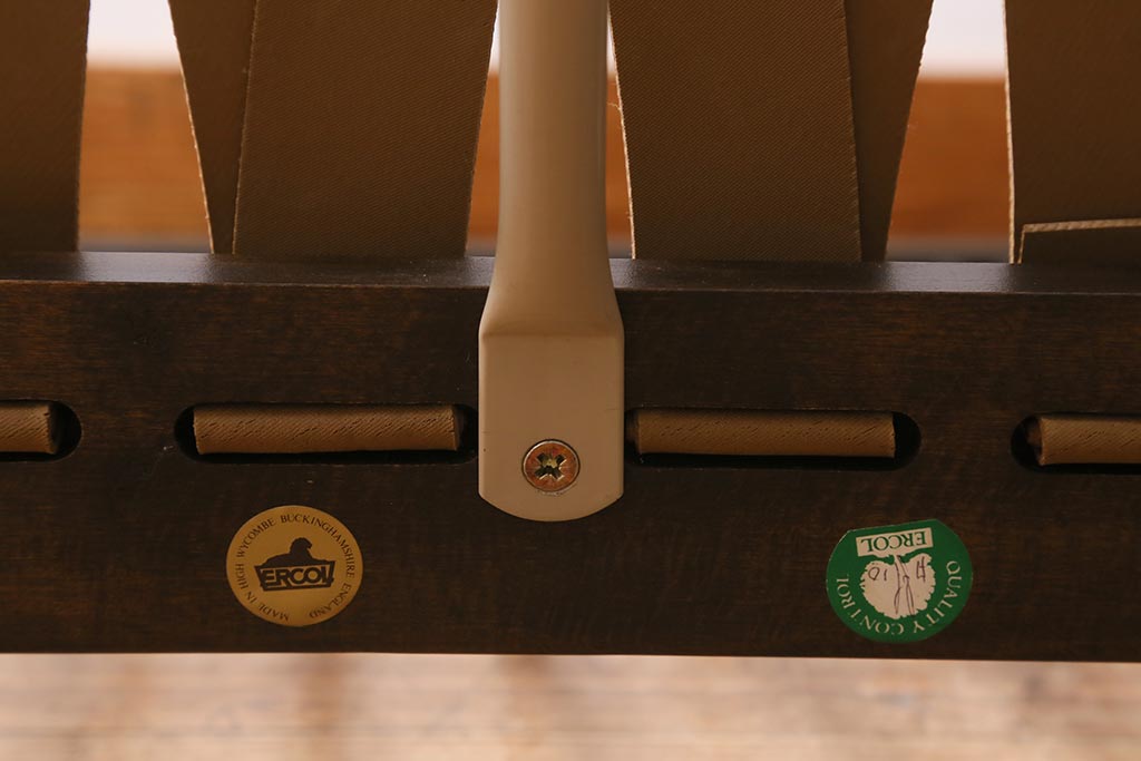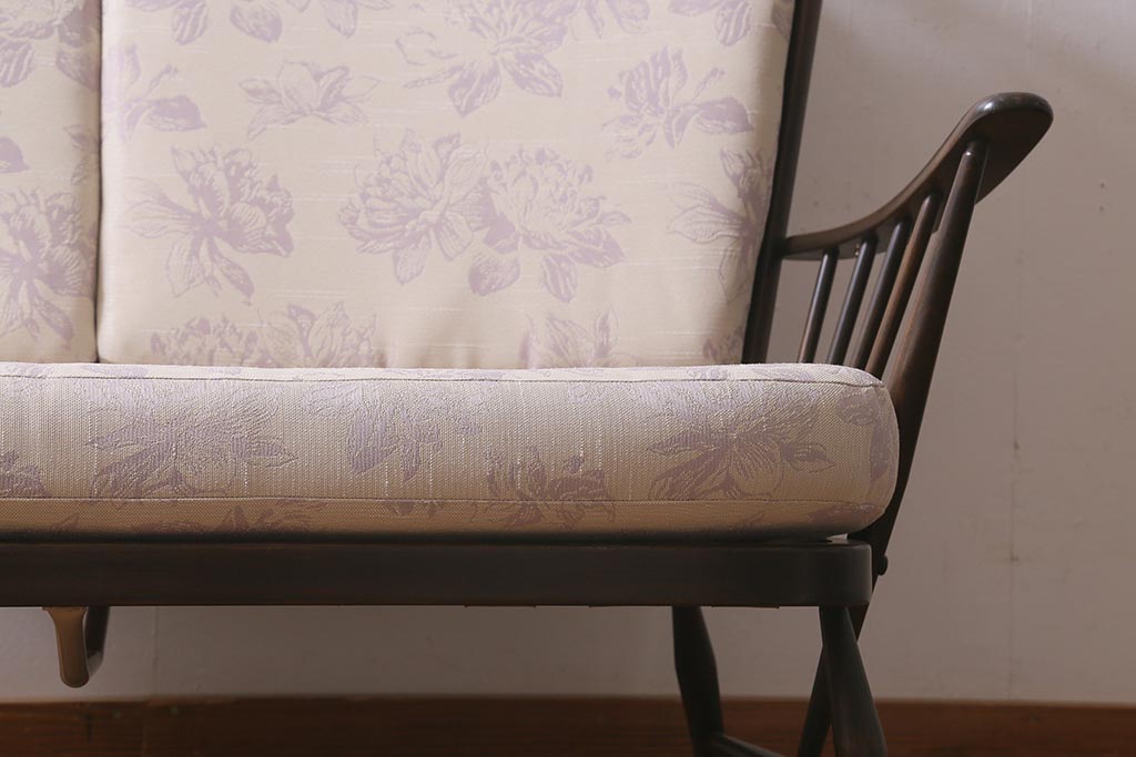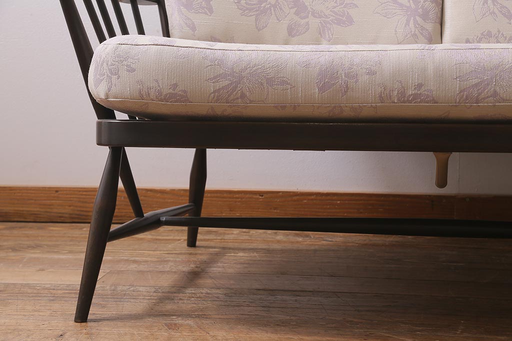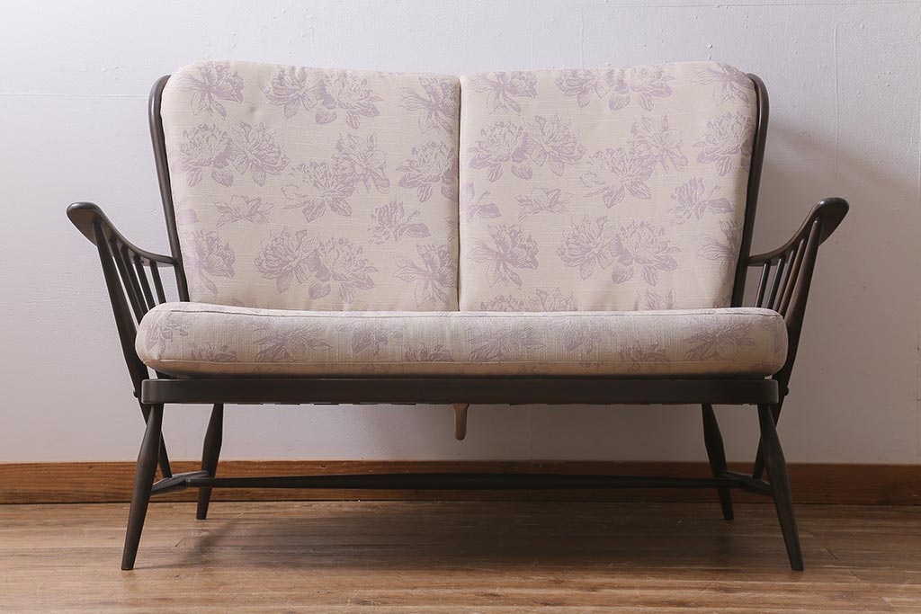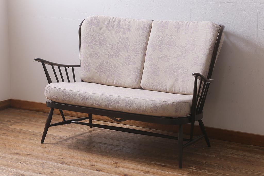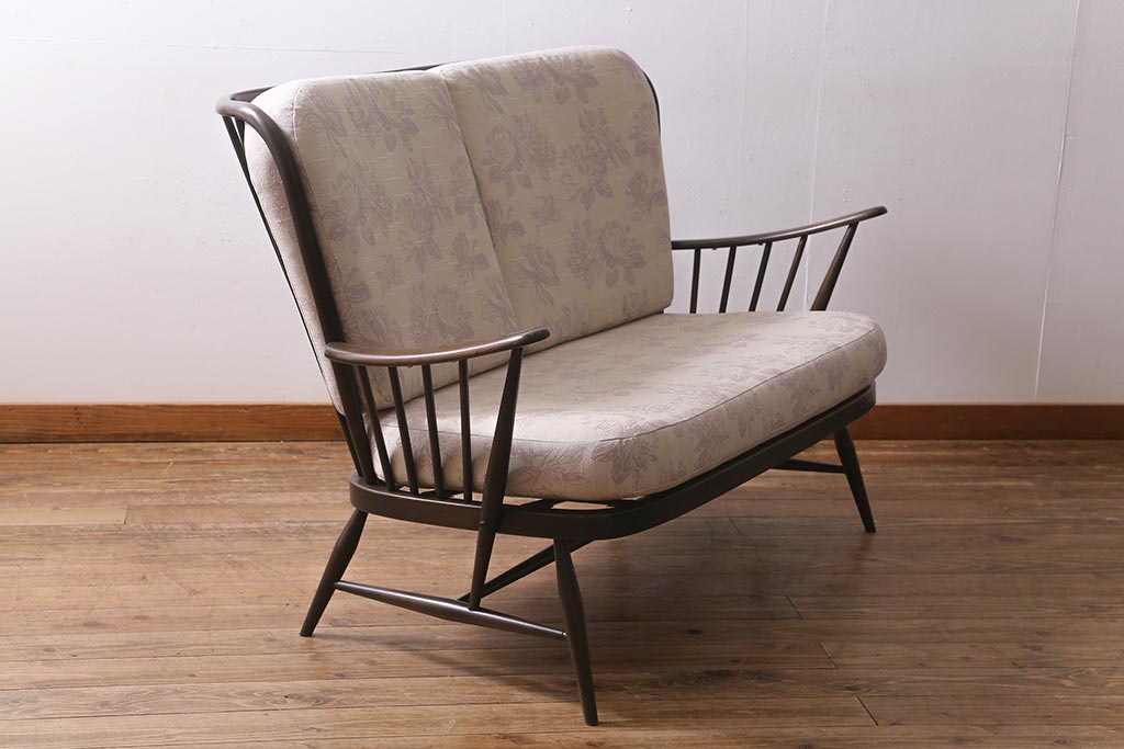 ラフジュ工房> ソファ> 2人掛けソファ > ヴィンテージ家具 ERCOL(アーコール) エバーグリーン 曲げ木のフレームが目を惹く二人掛けソファ(アームソファ、ラブソファ、2人掛け、ビンテージ)(定価約58万円)(R-039439)